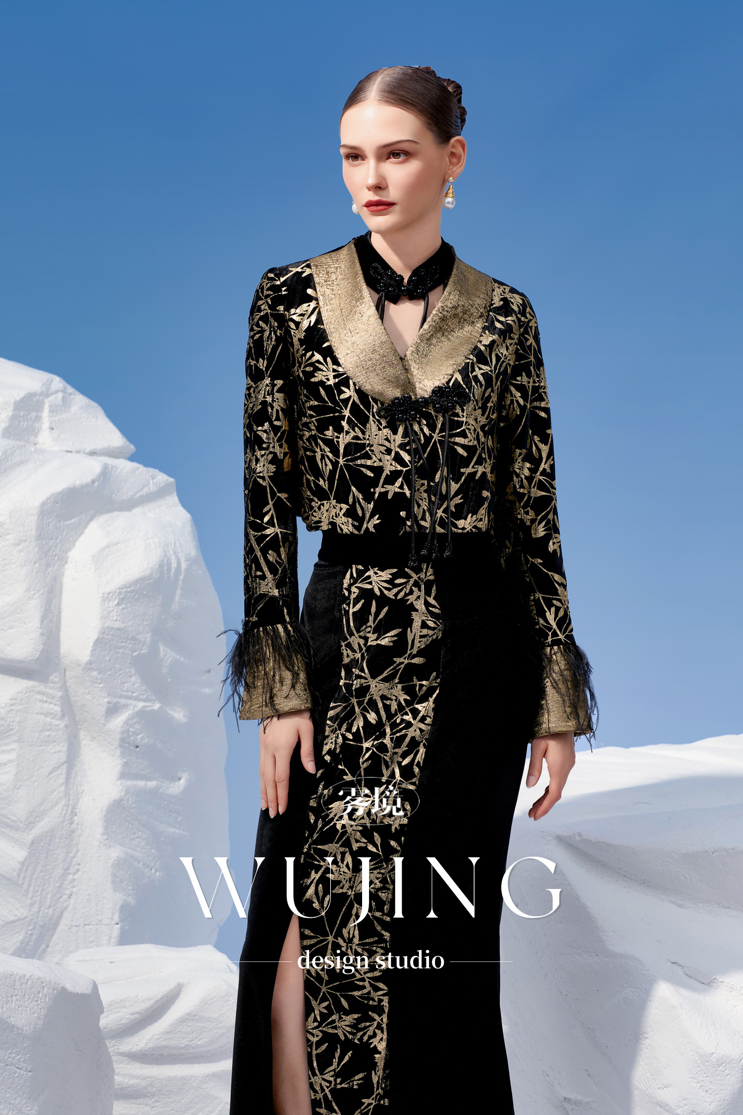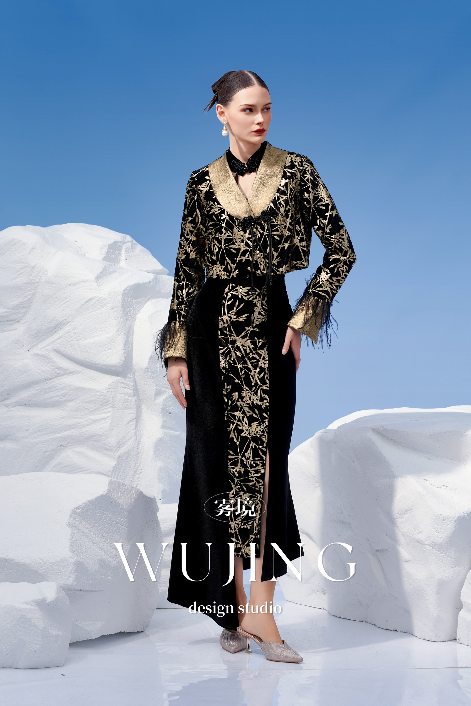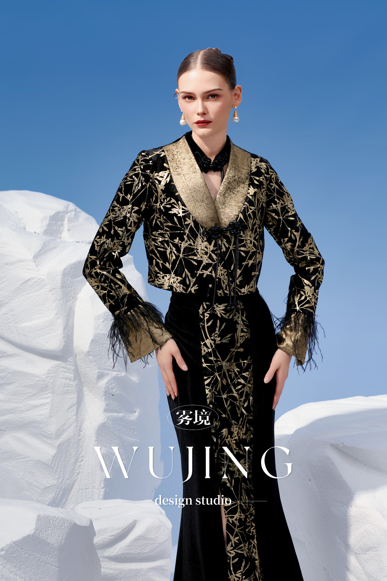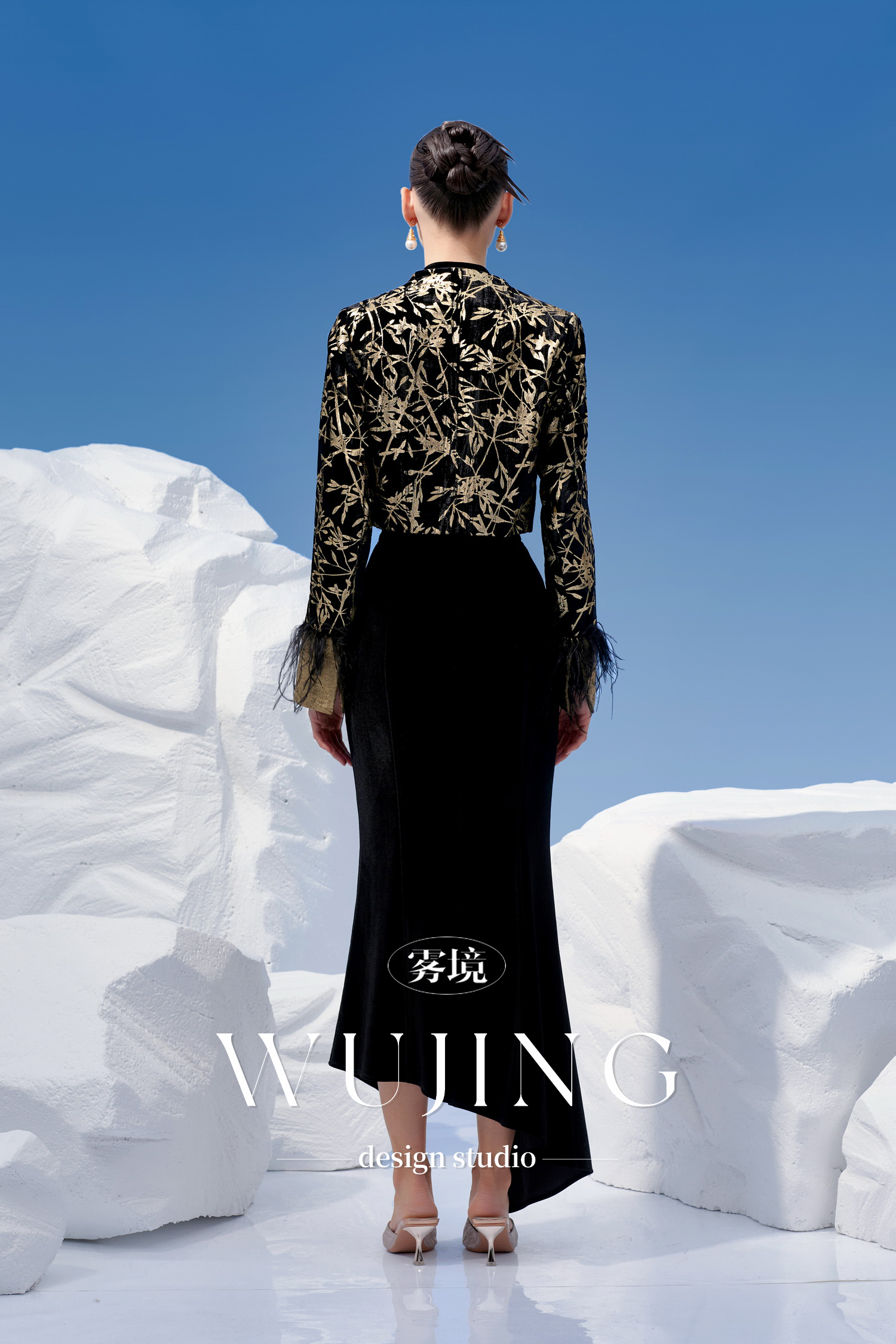 4202088 古潼怀金 特色涂层工艺印花丝绒面料外套 雾境