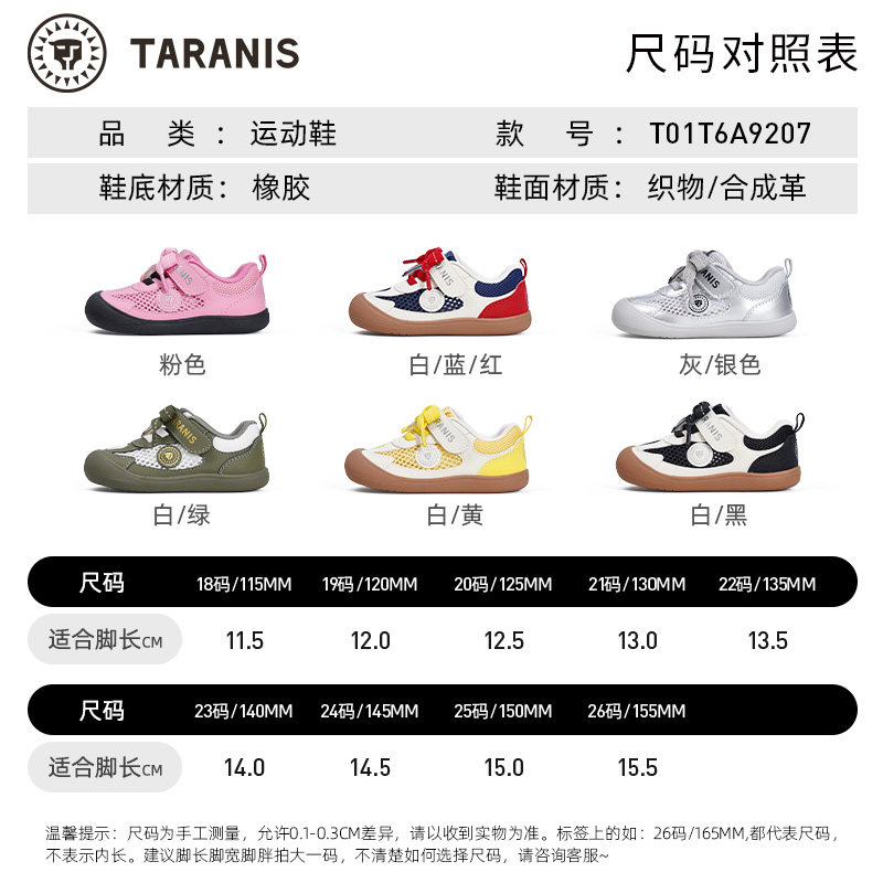 泰兰尼斯童鞋春夏新款透气网面女童学步鞋男童包头防踢运动机能鞋T01T6A9207