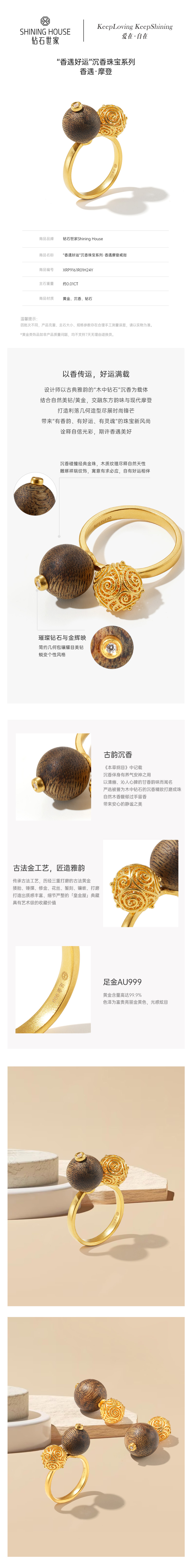 【钜惠价】【沉香黄金】【香遇·摩登系列】钻石世家 足金钻石戒指 古韵沉香与华贵黄金碰撞组合 汇聚非遗之美【黄金产品不支持无理由退换货】预计3-5天发货