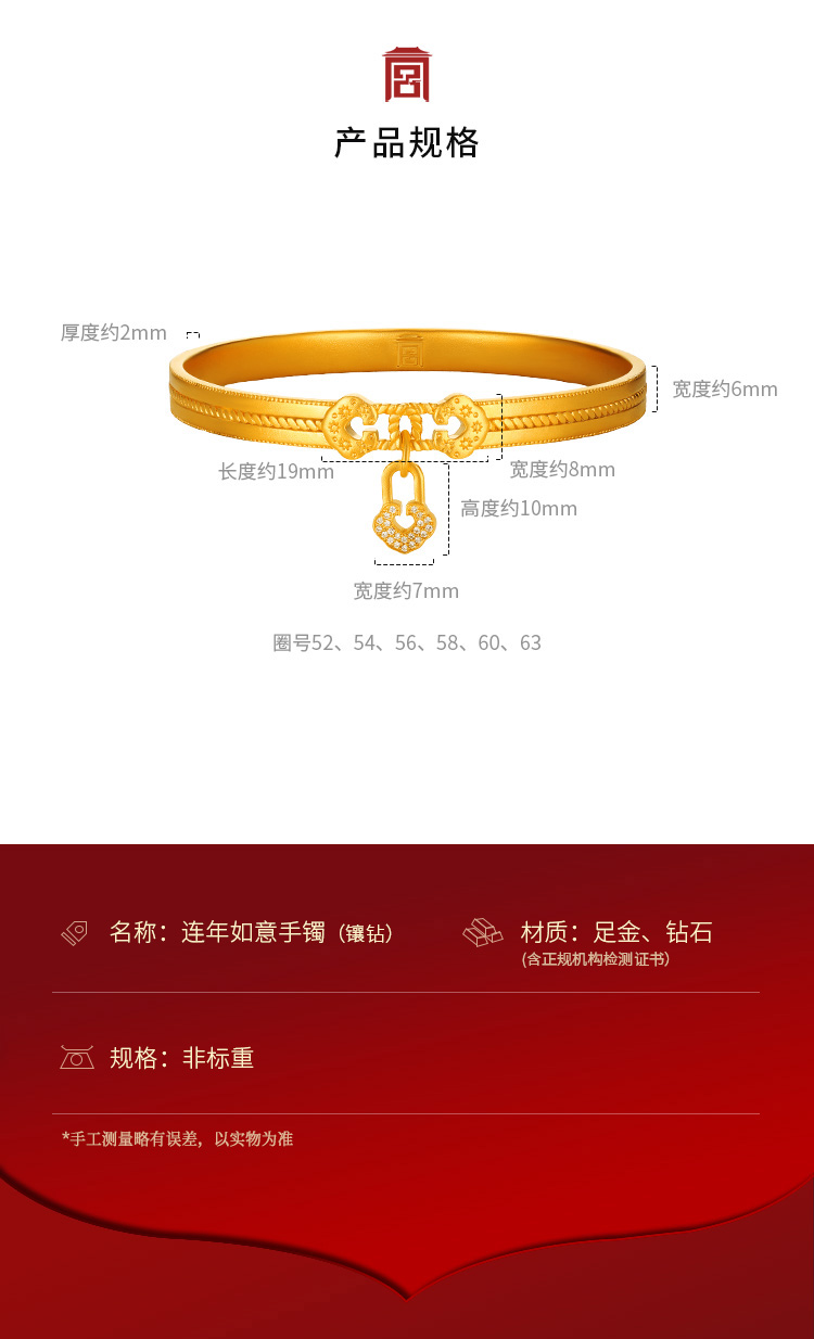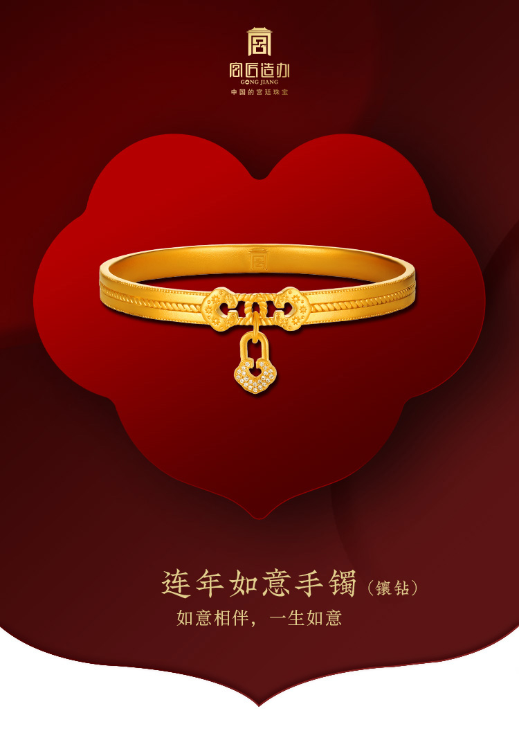 宫匠造办 连年如意手镯 黄金镶钻