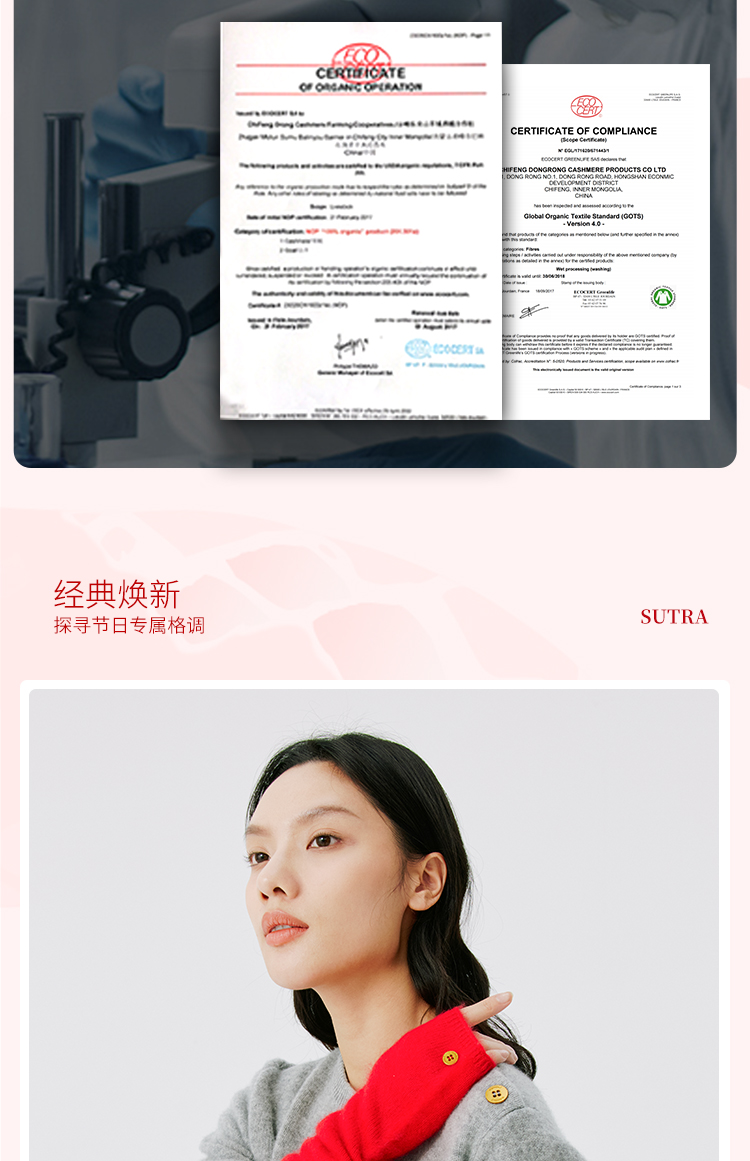 东黎羊绒是赤峰东荣集团自主品牌,自有牧场/羊绒制品全产业链优势,实现了羊绒从“牧场”到“商场”的华丽转变。