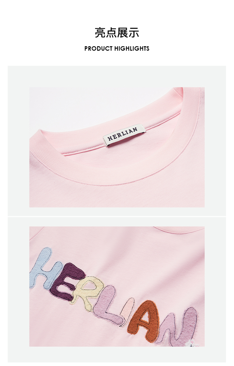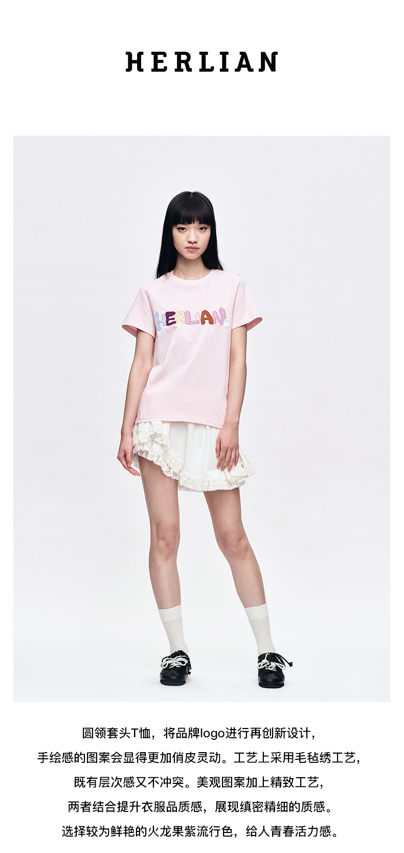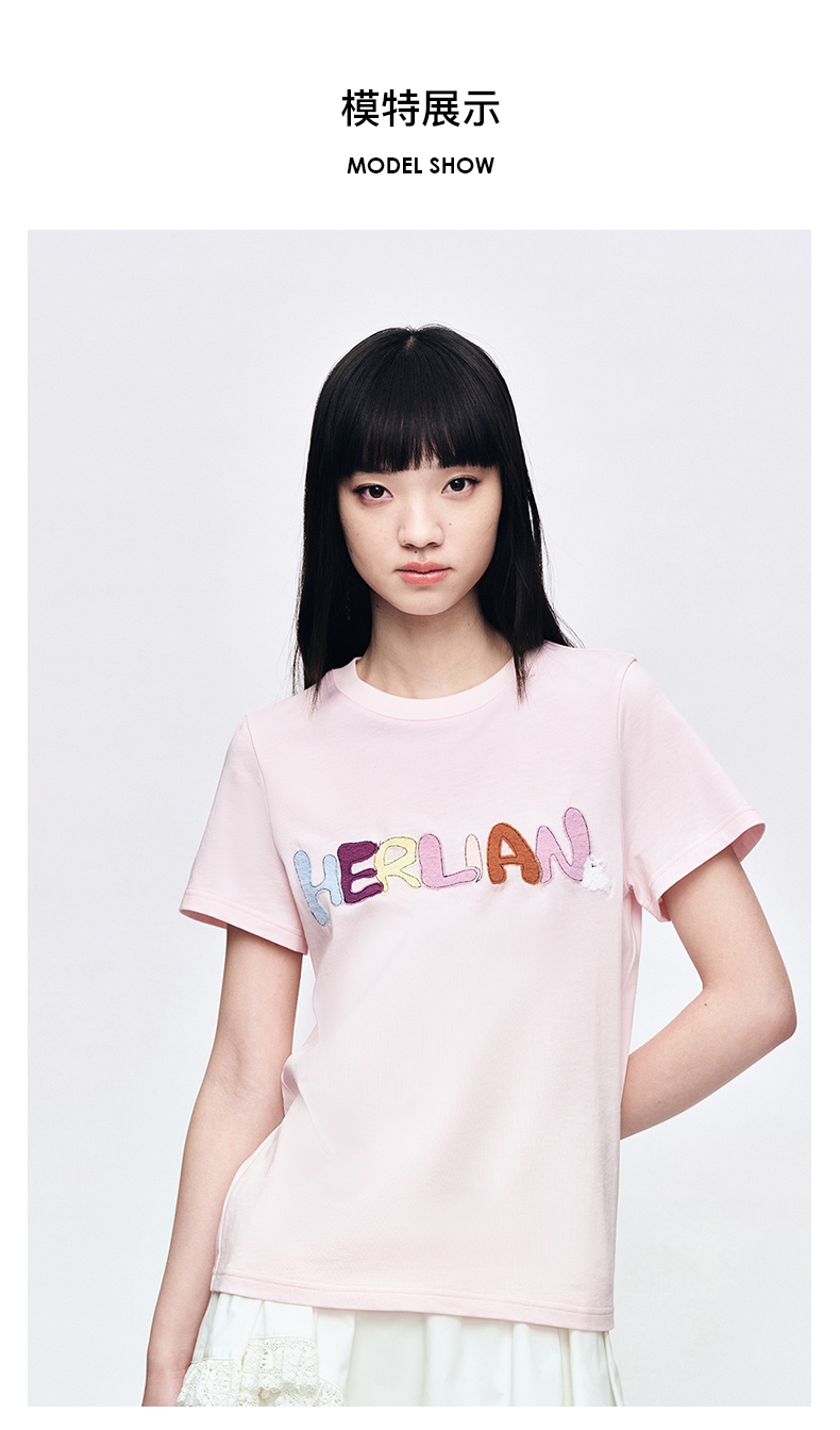 Herlian2025年夏季新品女士短袖彩色字母LOGO印花休闲TEE