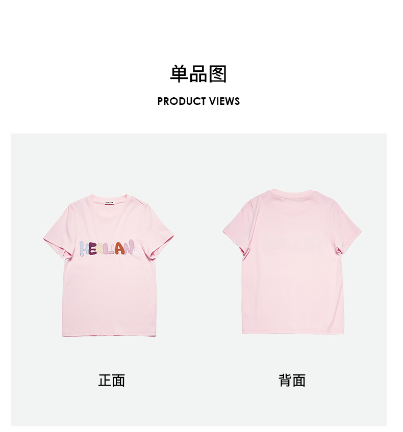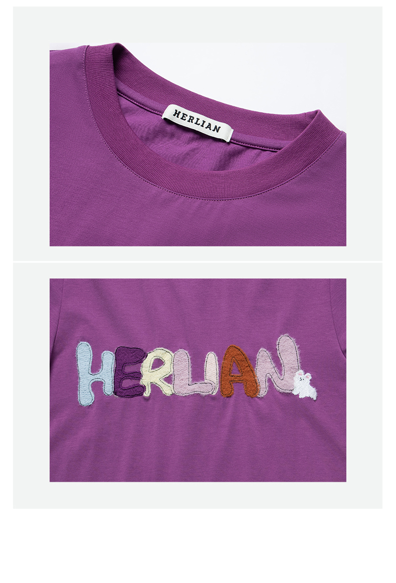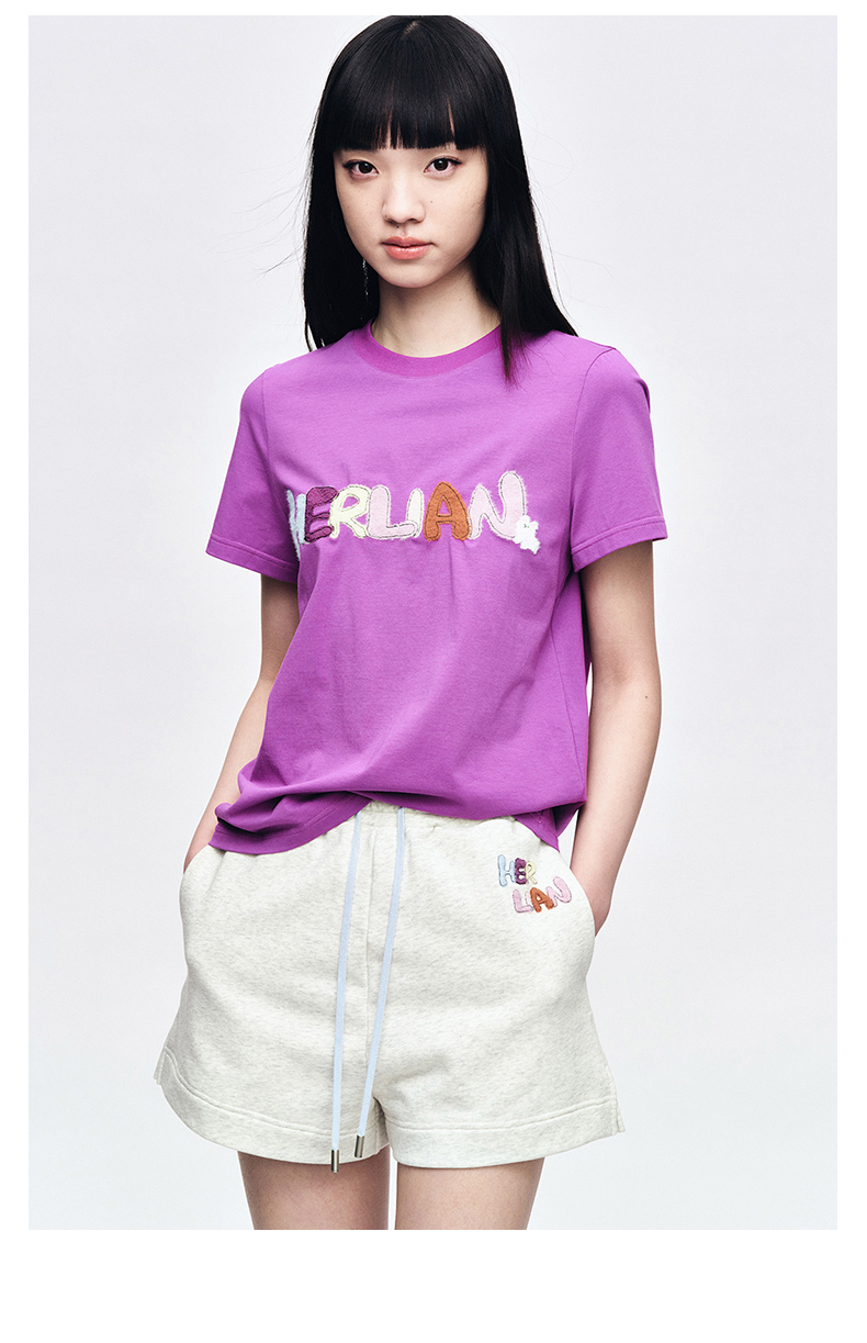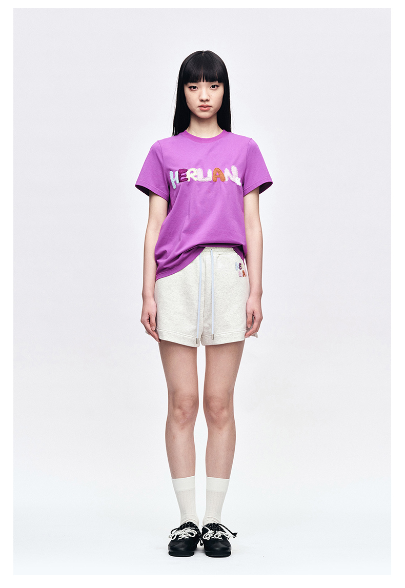 Herlian2025年夏季新品女士短袖彩色字母LOGO印花休闲TEE