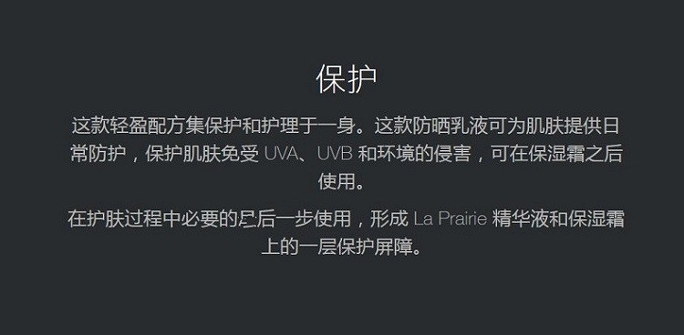 【热卖】【La Prairie/莱珀妮 瑞士轻盈防晒乳液50ML