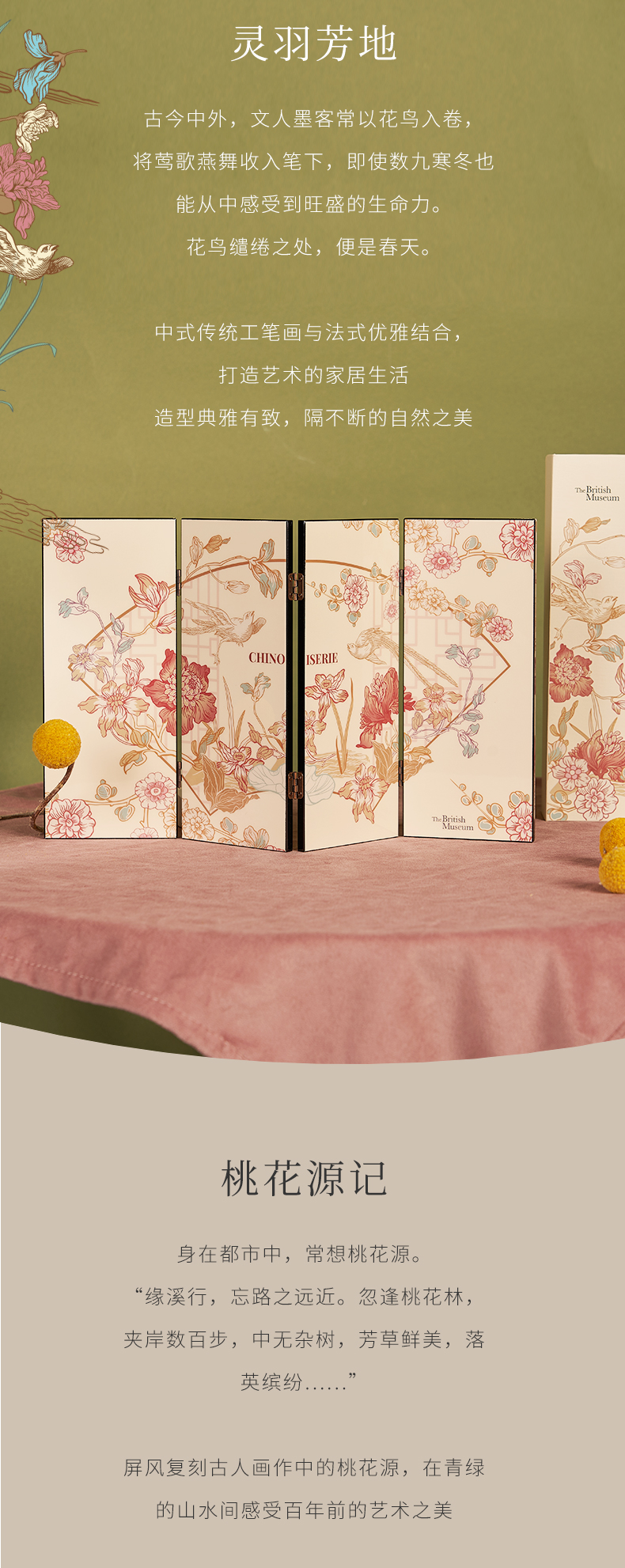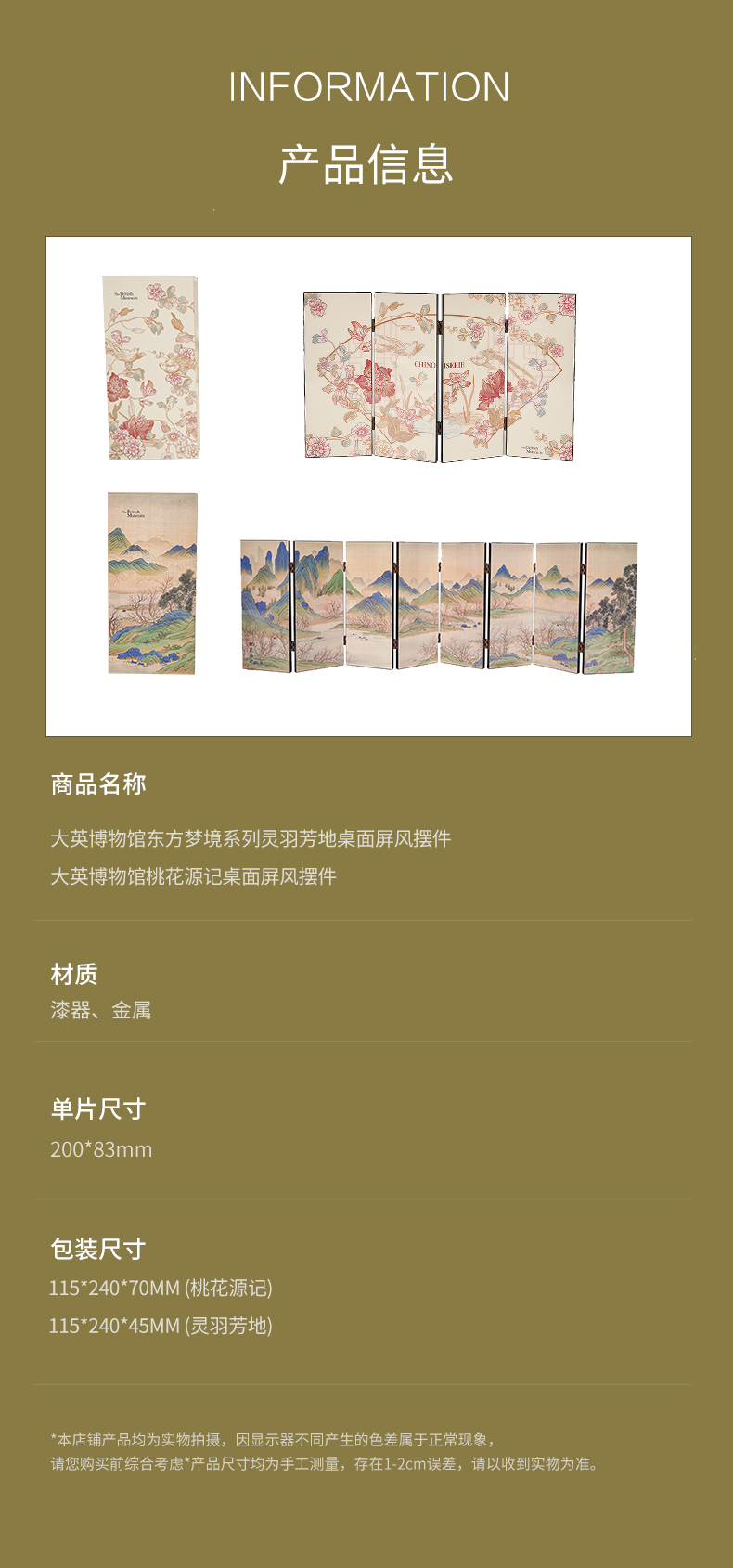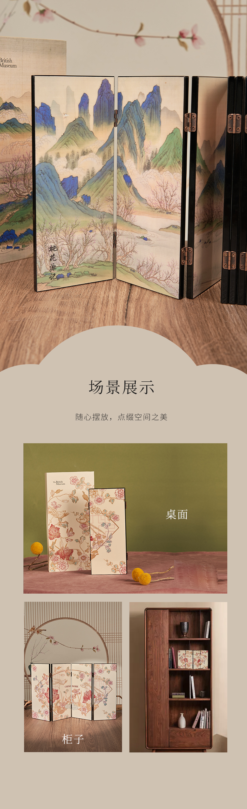 大英博物馆 东方梦境系列 灵羽芳地 桃花源记 漆器桌面屏风 家居摆件