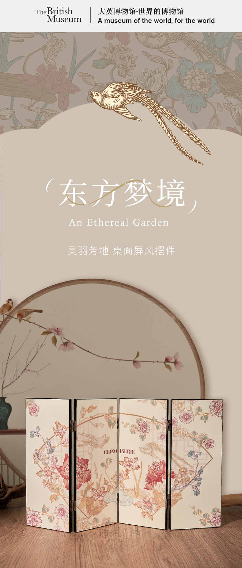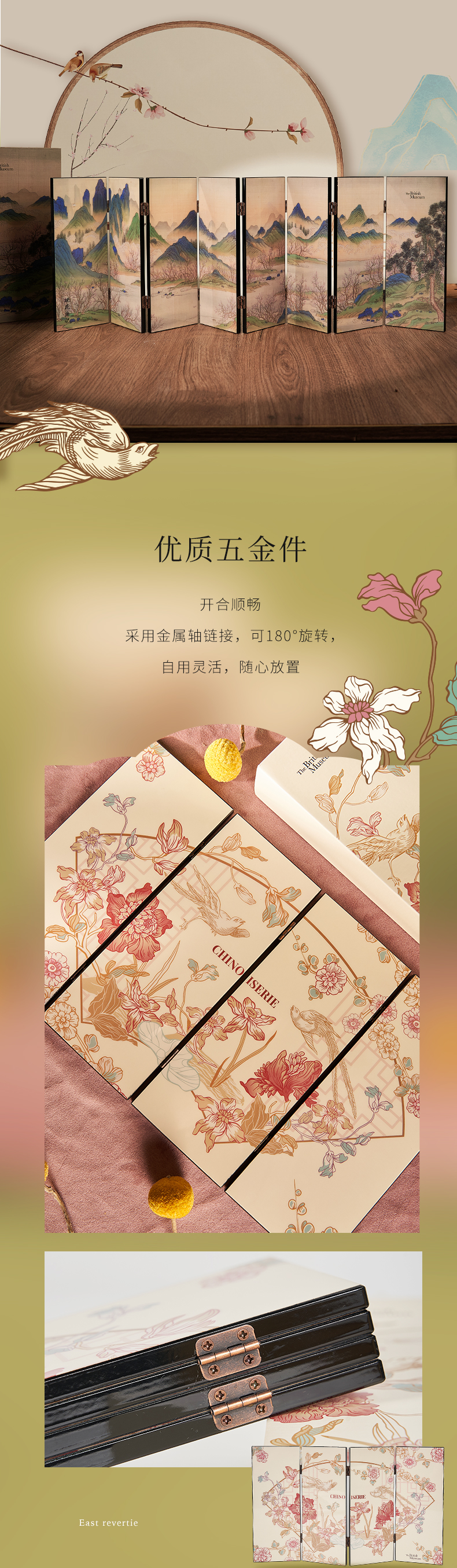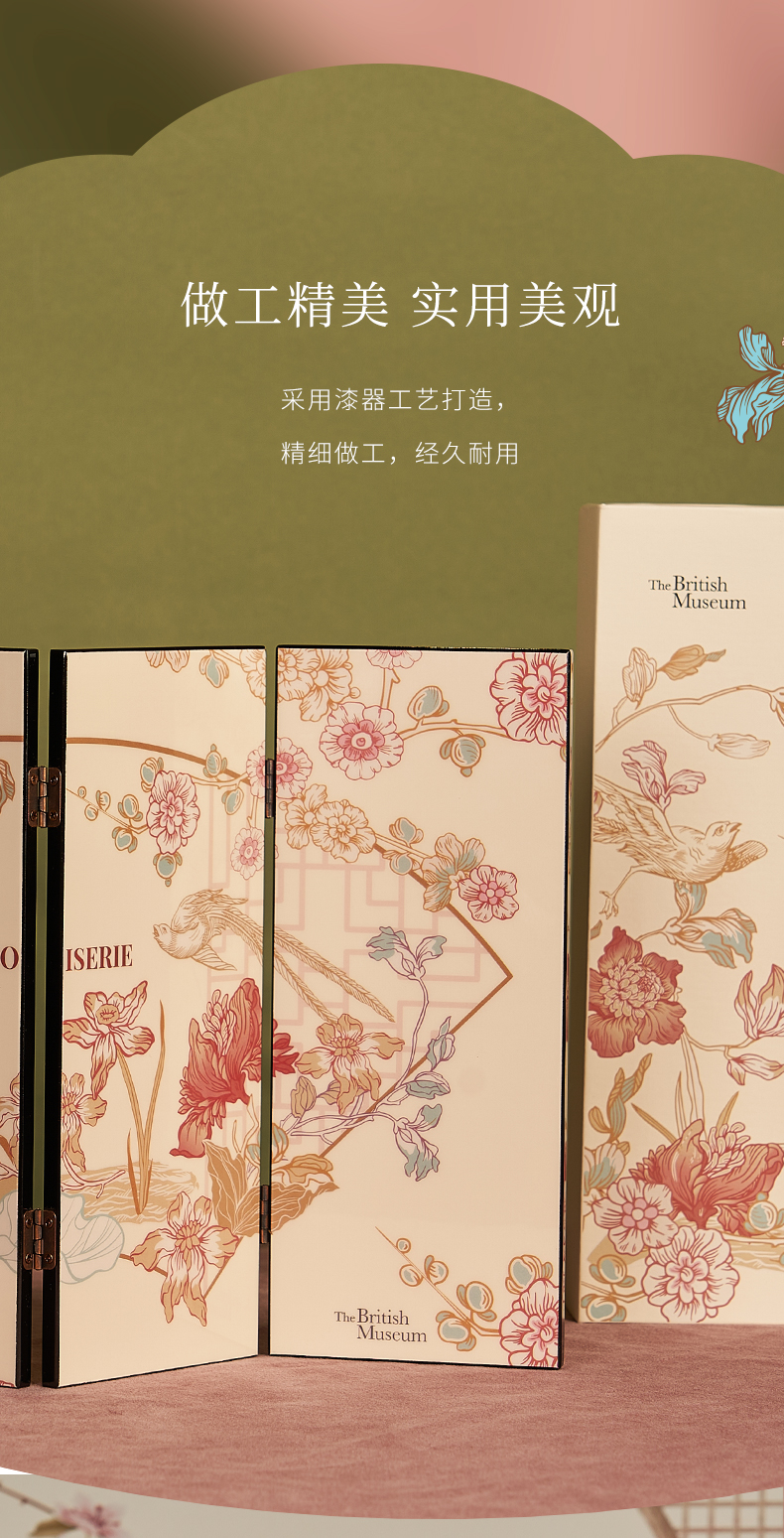 大英博物馆 东方梦境系列 灵羽芳地 桃花源记 漆器桌面屏风 家居摆件