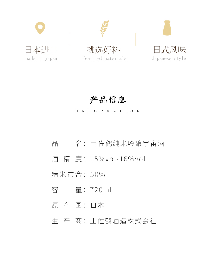 日本土佐鹤纯米清酒720ml 宇宙酵母 香醇浓郁 细腻顺滑 012590