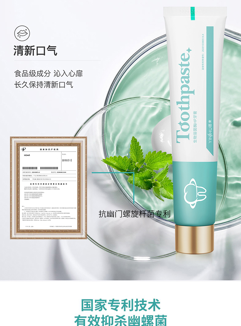 【专利产品】茵束生物溶菌酶HP牙膏 深度清洁 清新口气 草本萃取 全家防护 清新口气【粤国牙膏网备字2023403304】