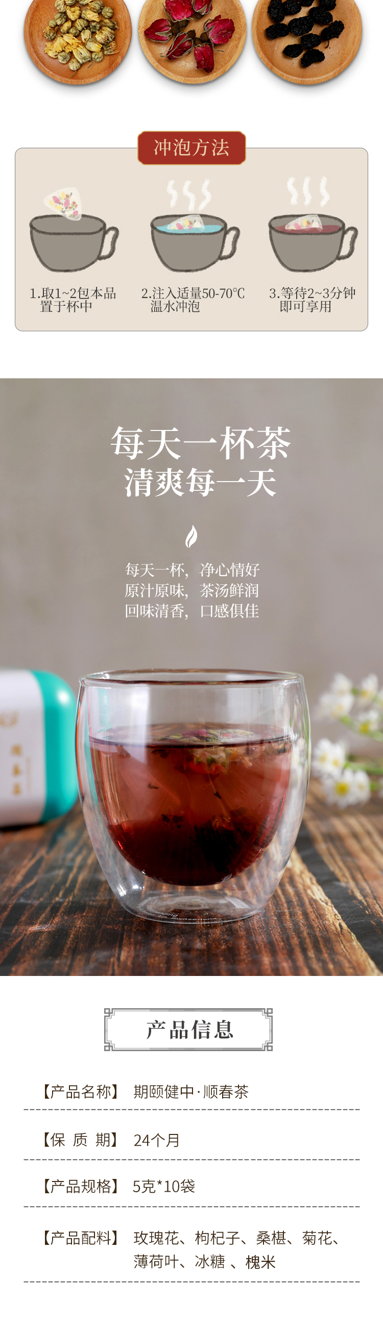顺春而饮 顺时而养 顺春茶 5g*10袋/罐(产品都是一样的,颜色随机发货,买多送的赠品是简装)
