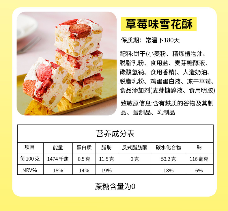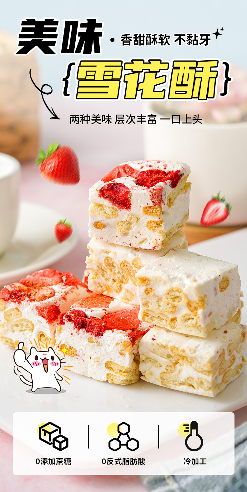 【美味雪花酥】原味草莓味雪花酥约150g/袋休闲零食下午茶年货解馋便携,口感微甜,香酥不腻。ry