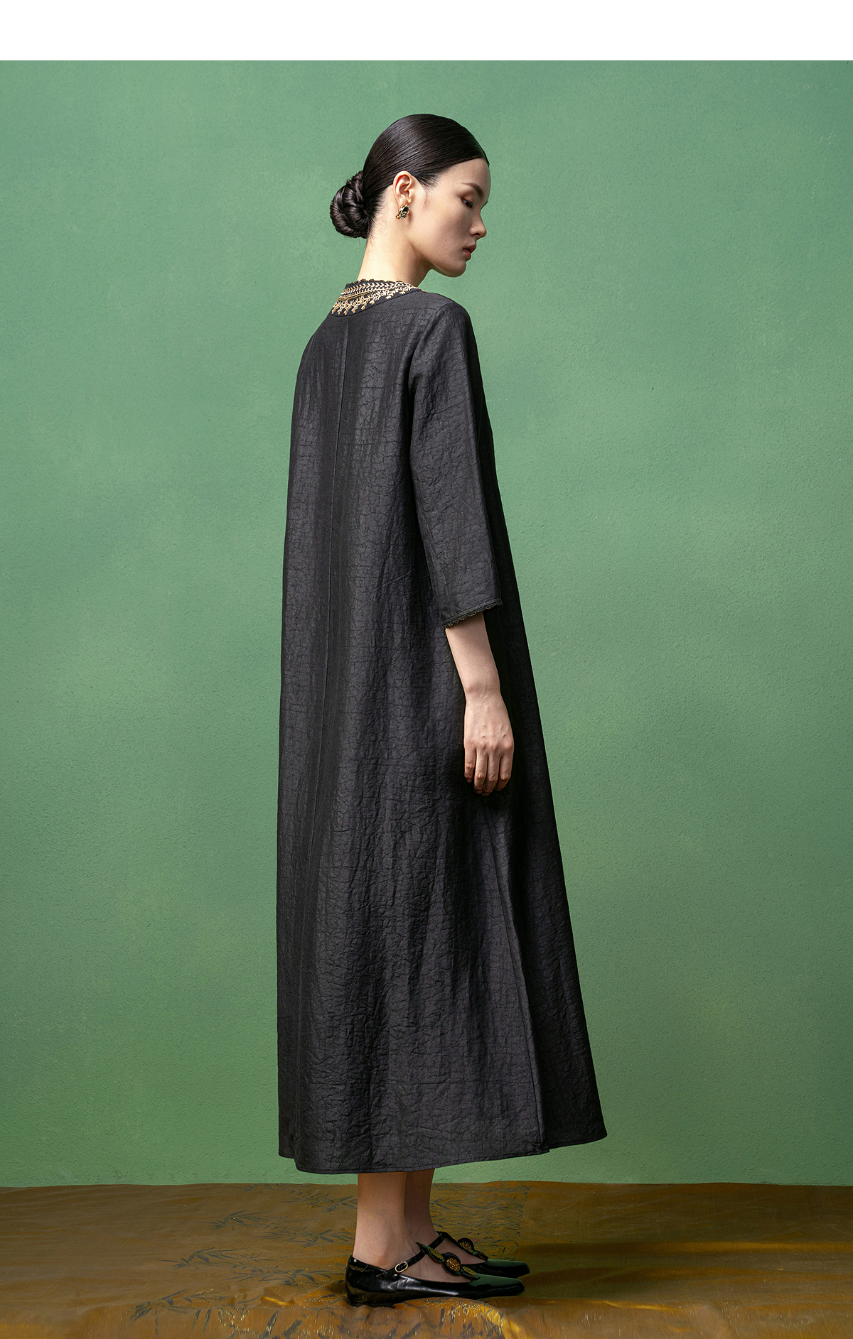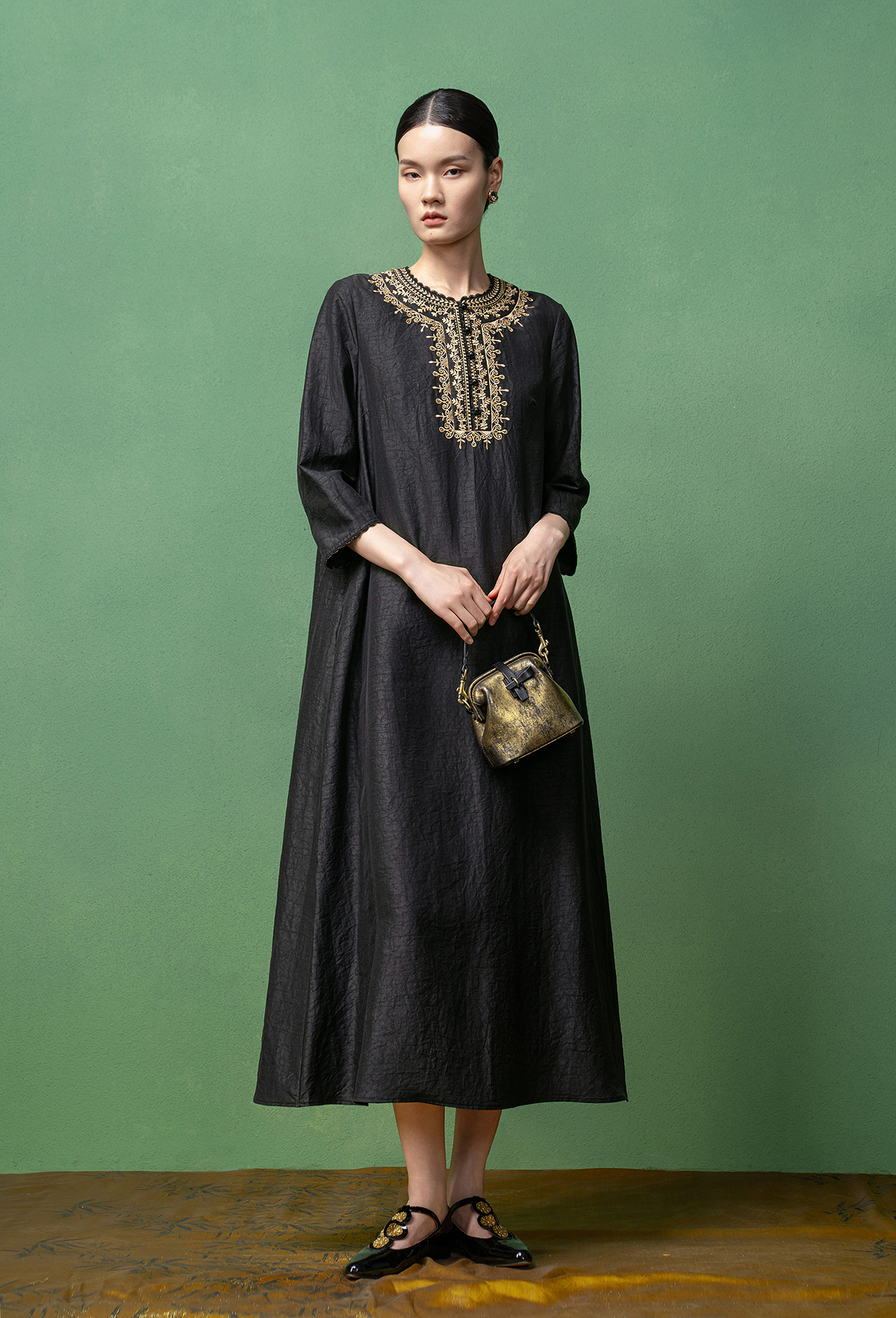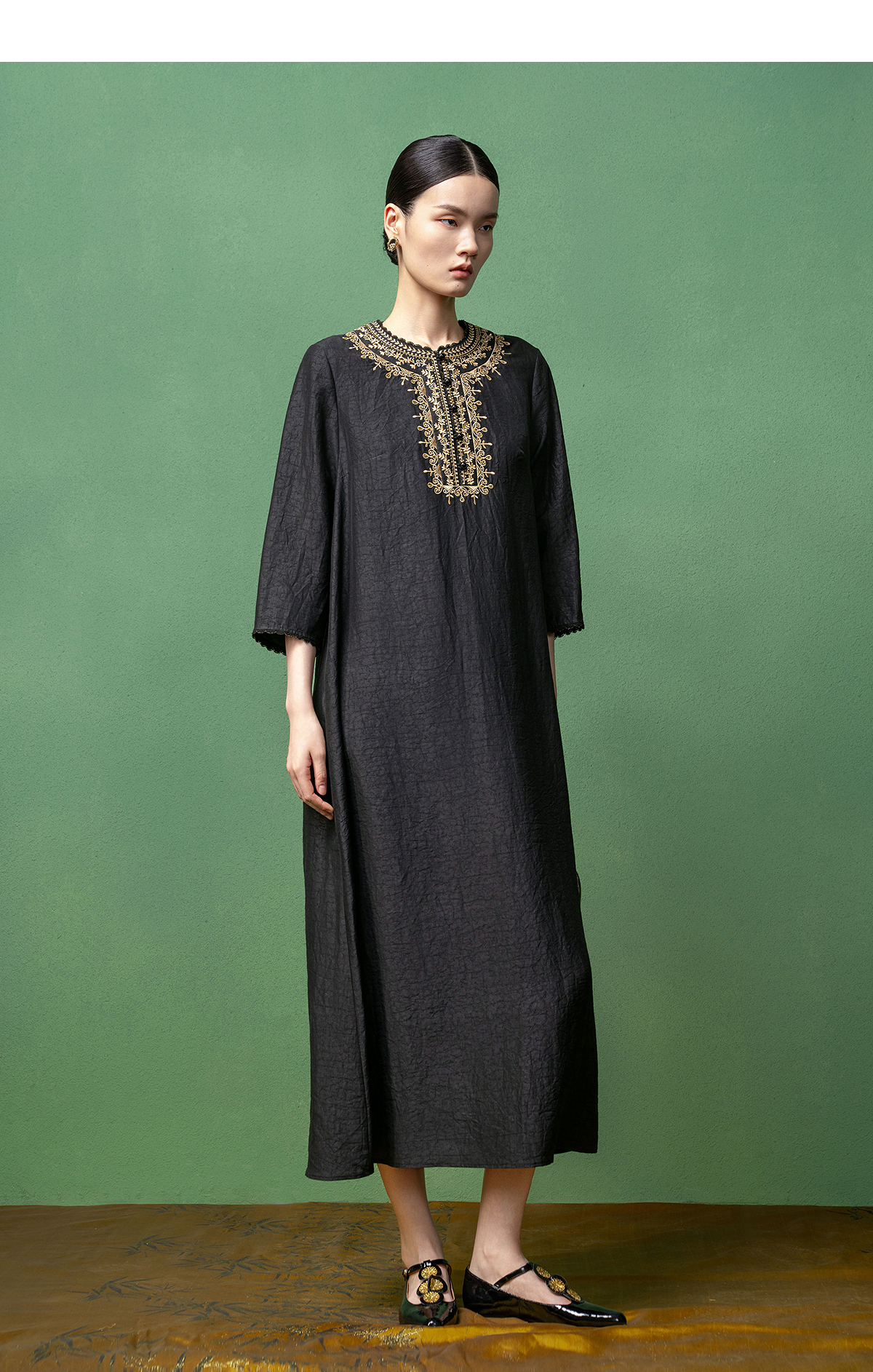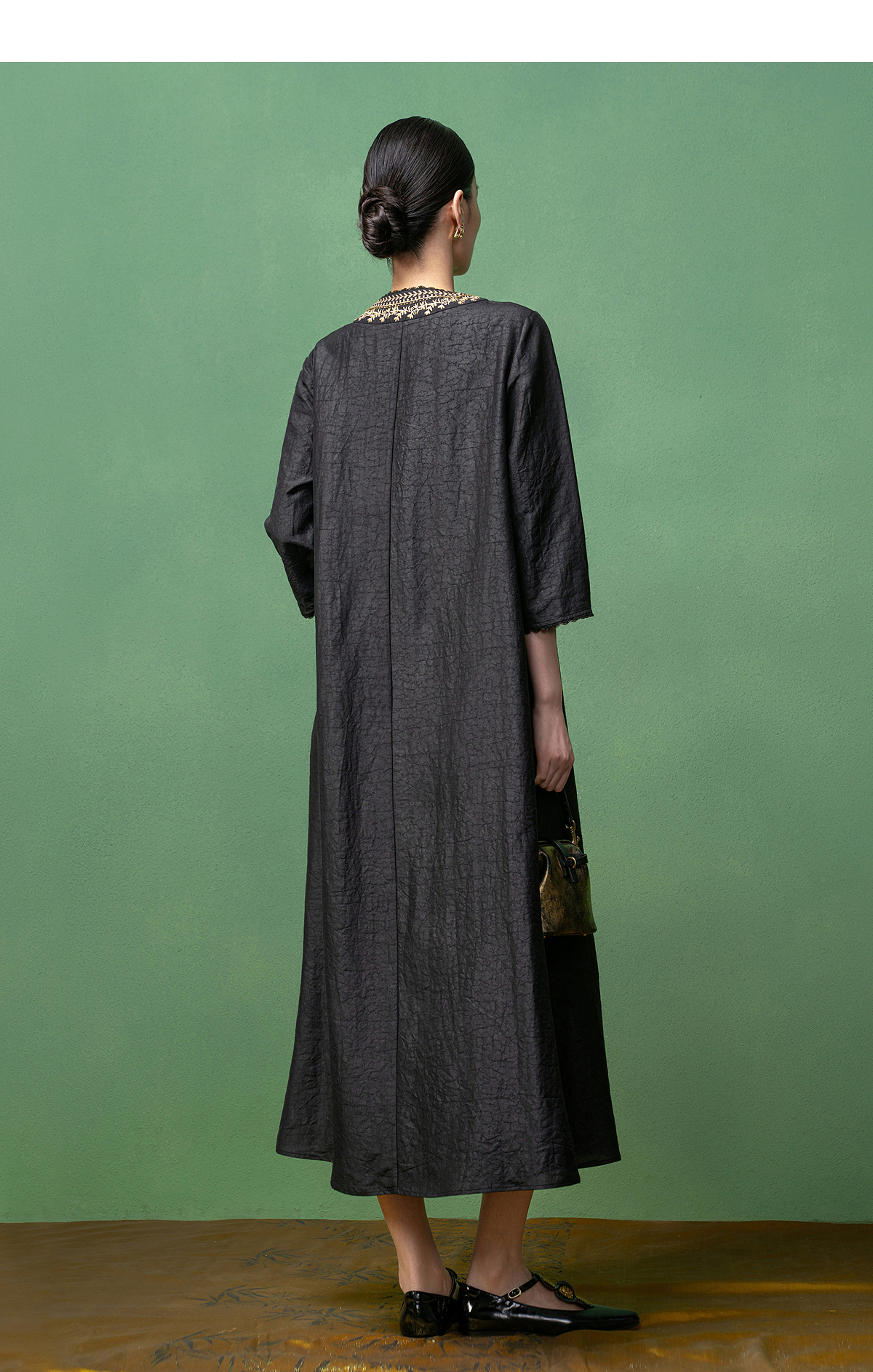 【林栖设计小店】【非遗香云纱】生活在左桑蚕丝连衣裙绣花钉珠2025秋季新款长裙女1953318