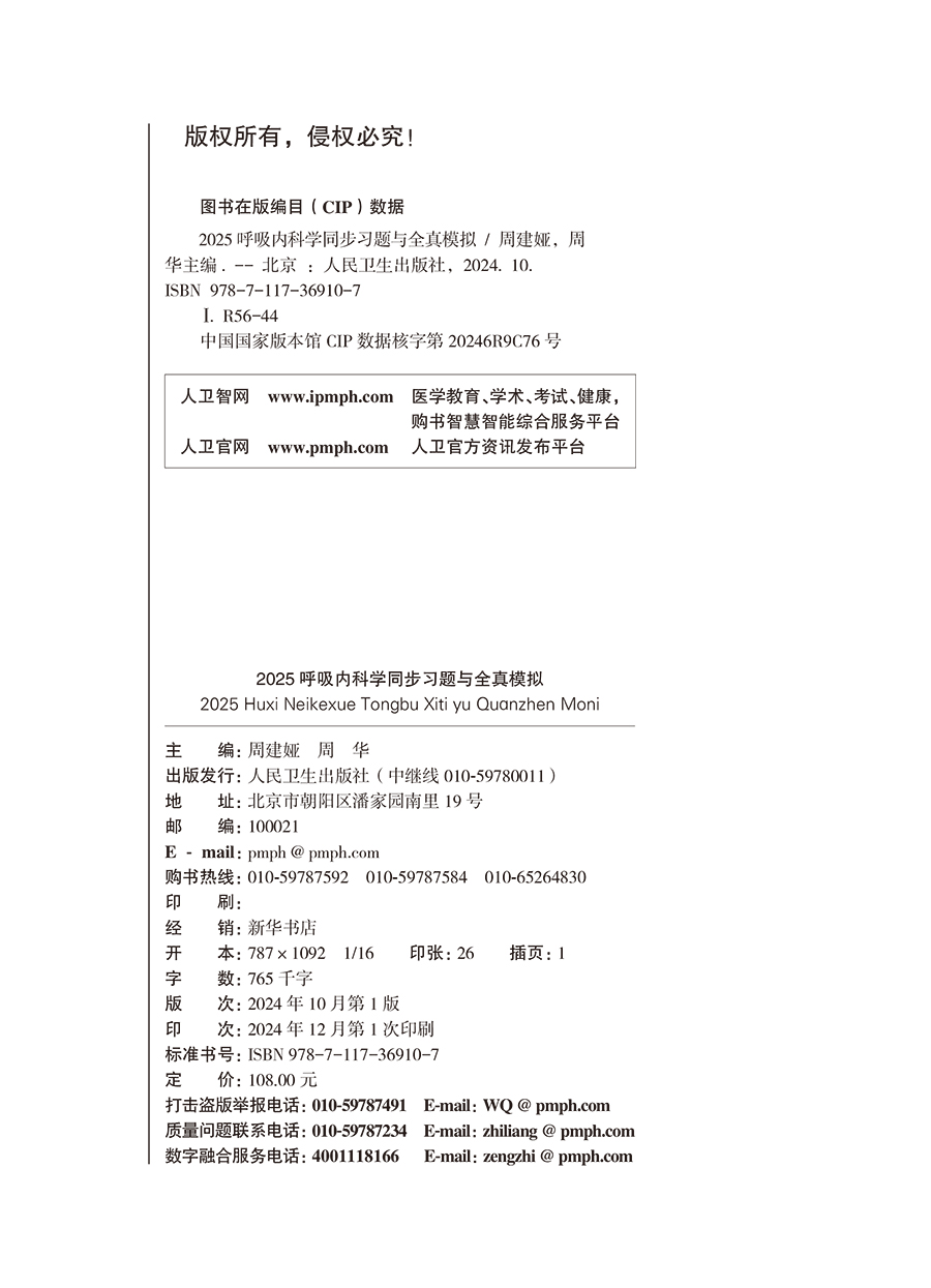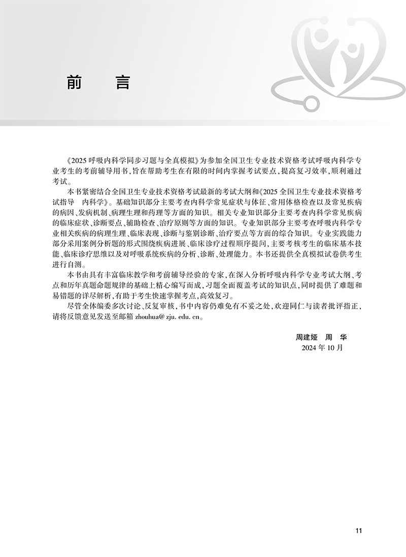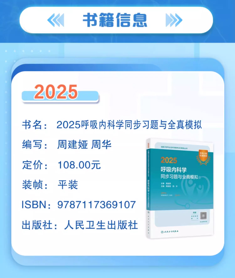 2025呼吸内科学同步习题与全真模拟 周建娅 周华编 全国卫生专业技术资格考试习题集丛书适用专业呼吸内科学(中级)9787117369107
