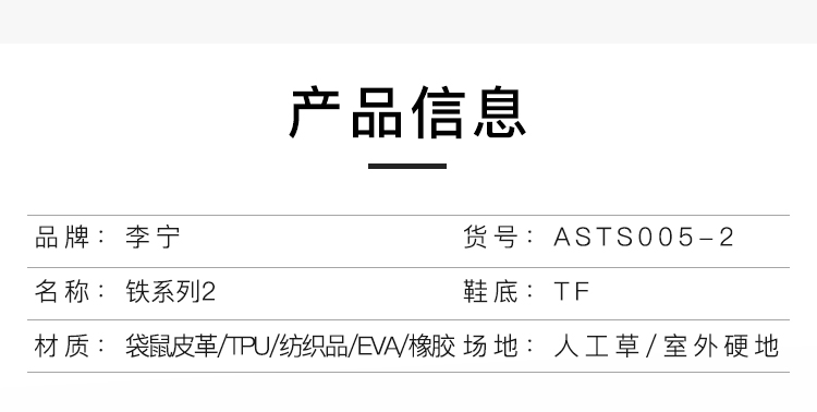 Lining/李宁铁2足球TF碎钉比赛训练足球鞋成人男ASTS005-2