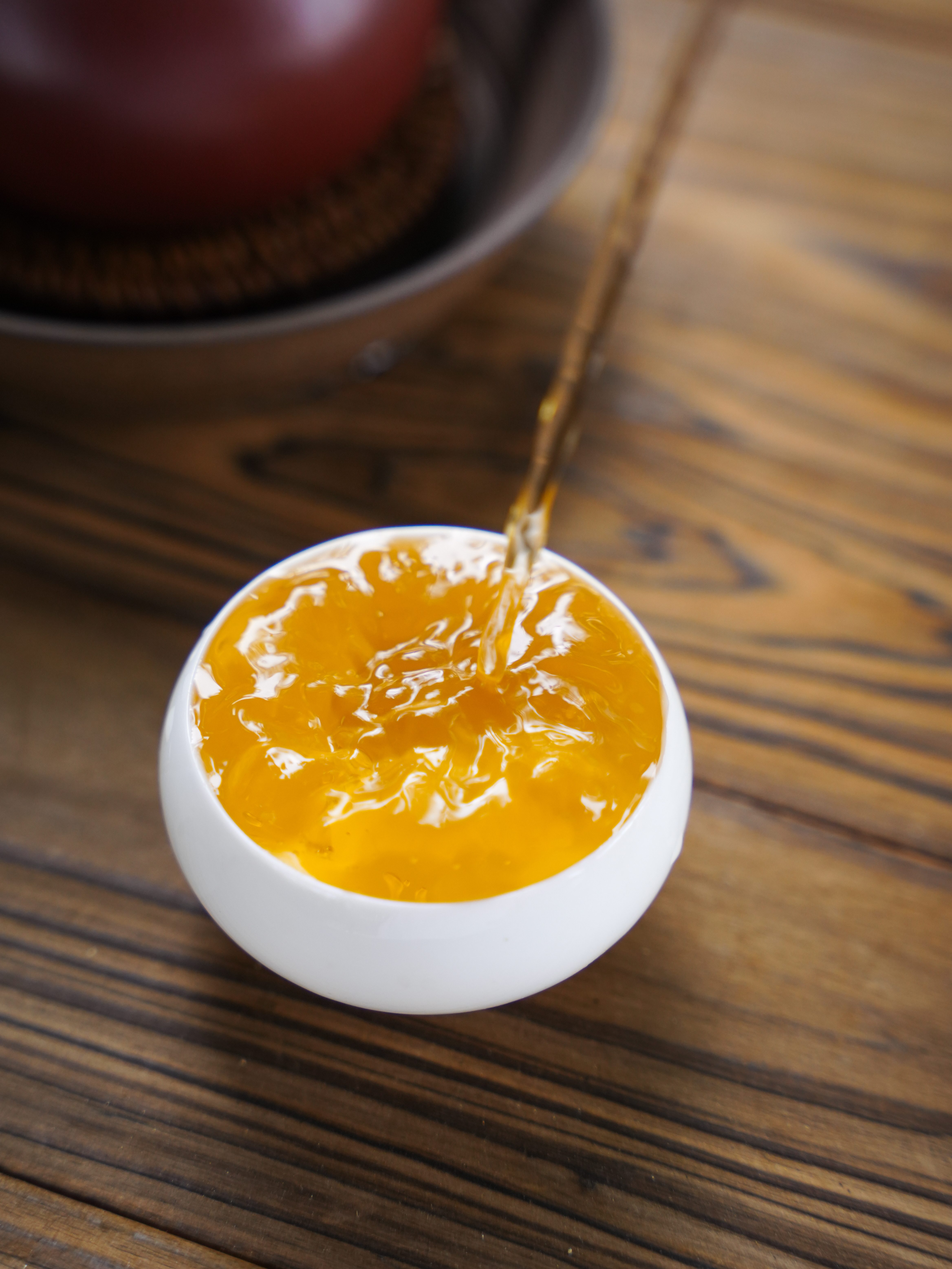 冲泡:第一遍洗茶时,注水要细一点、慢一点,倒出后打开壶盖散散味;前几泡可即时出汤,8泡之后适当闷泡;可泡15-20泡