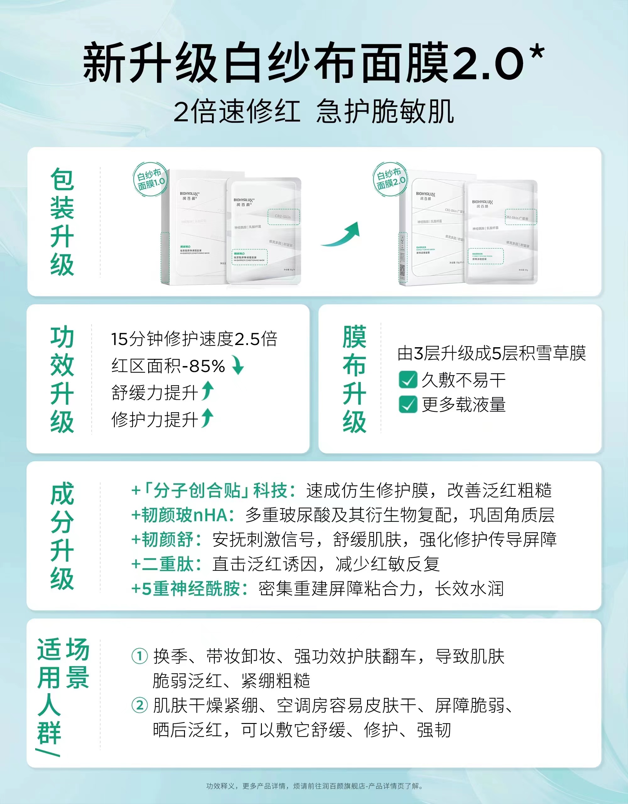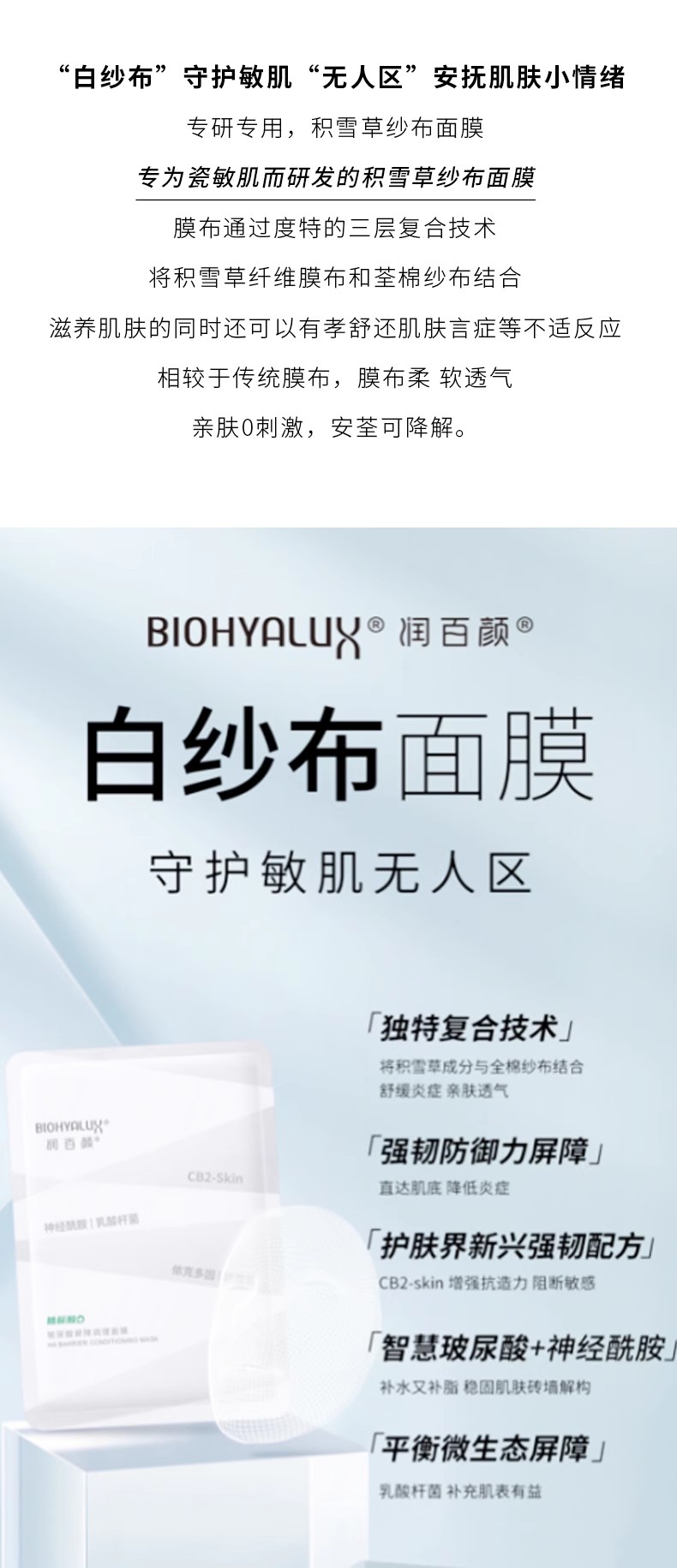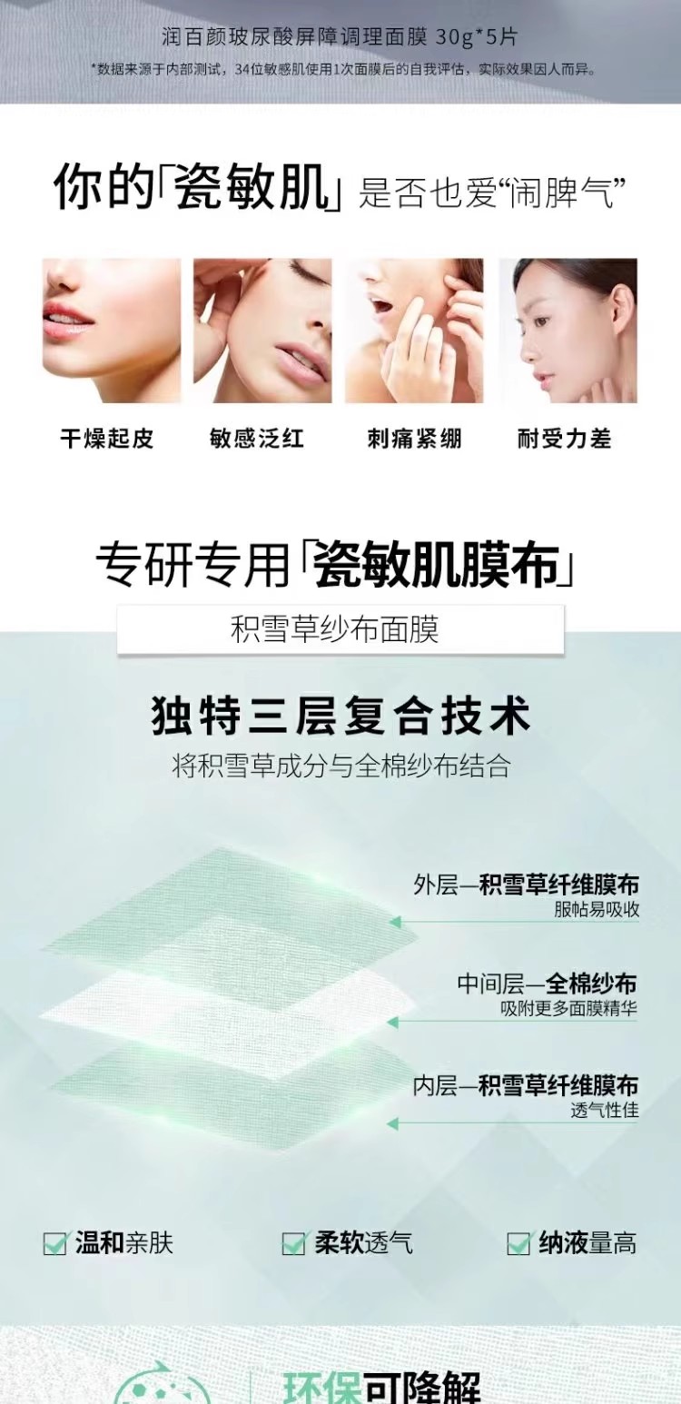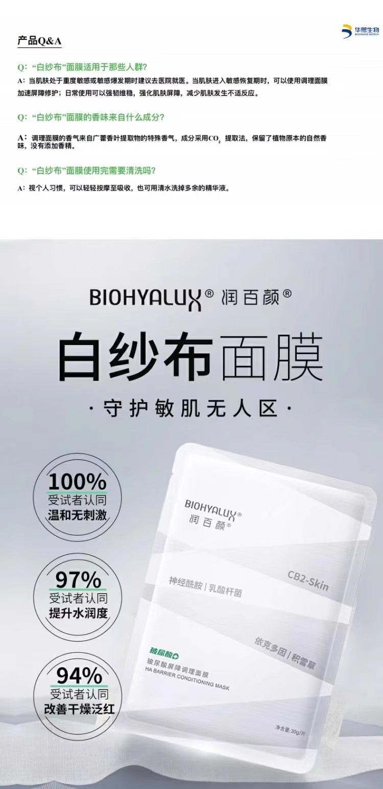 5盒到手199元!升级版2.0!润百颜白纱布面膜!四重屏障神经酰胺益生菌CB2-skin补水修护保湿舒缓褪红 日期27年之后