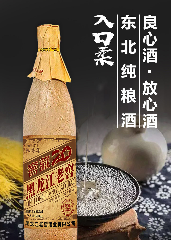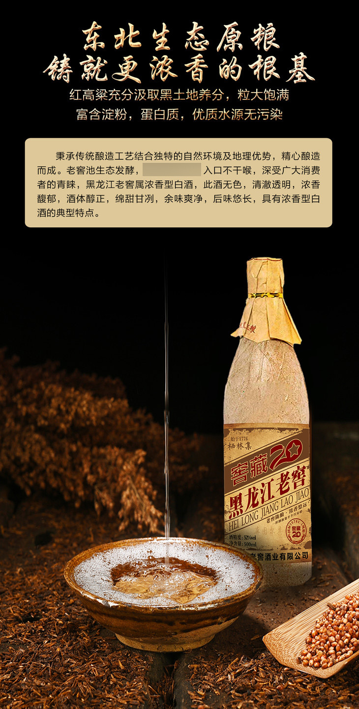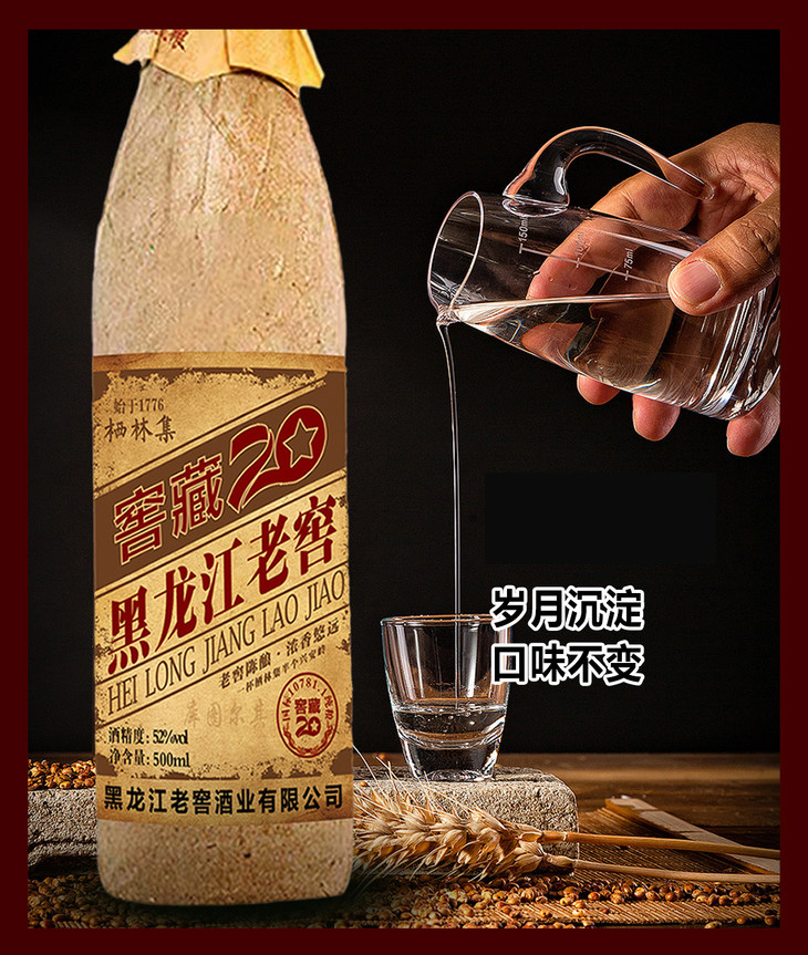 疯抢中!!【正宗纯粮酒】黑龙江老窖 窖藏20年 浓香型白酒52度 500ml*6瓶