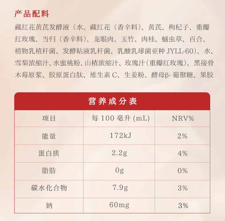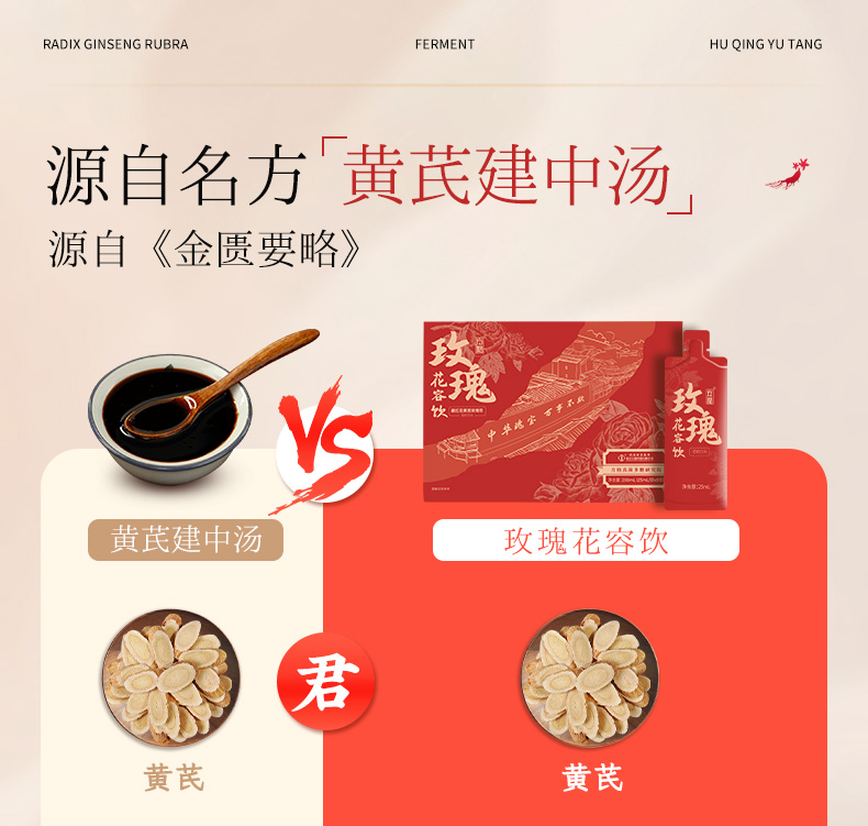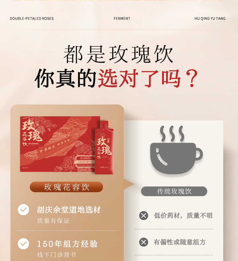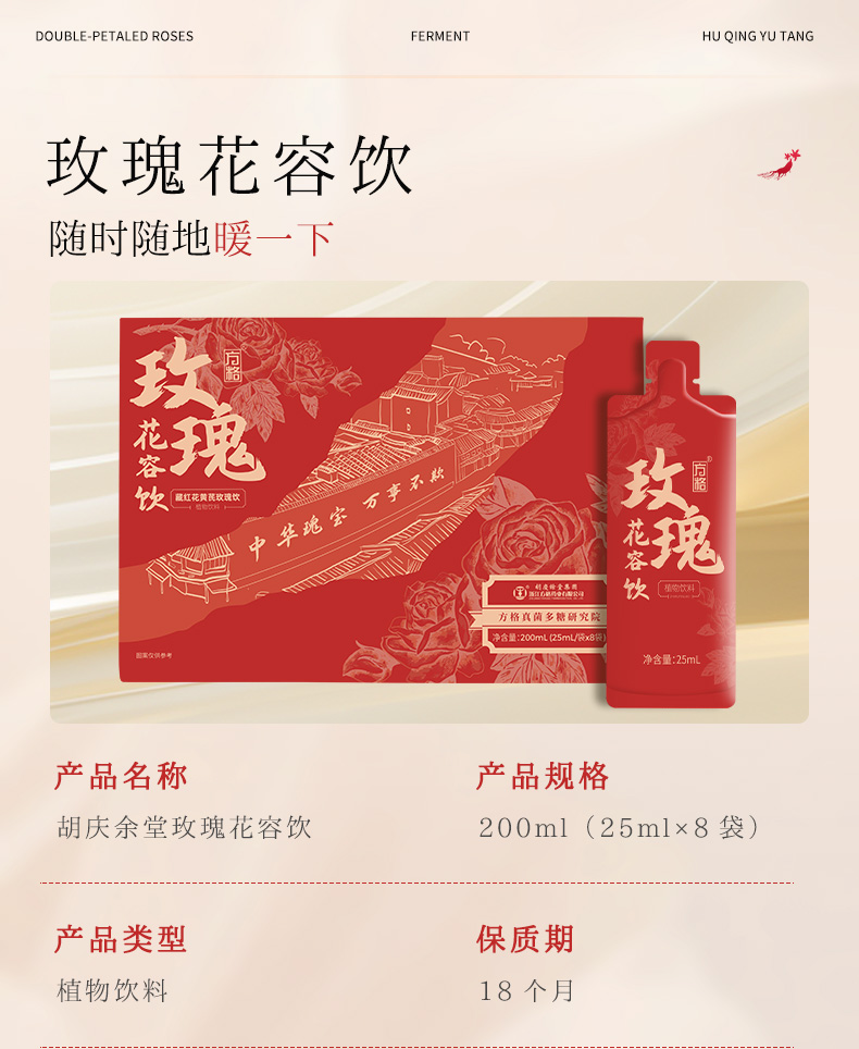 ¹近效清 胡庆余堂【气血双补】玫瑰花容饮 藏红花 蛹虫草 黄芪 枸杞 当归等 5大专利 发酵吸收口感更好 25ml*8袋 保质期到26年6月 CF01-CR-TQTX
