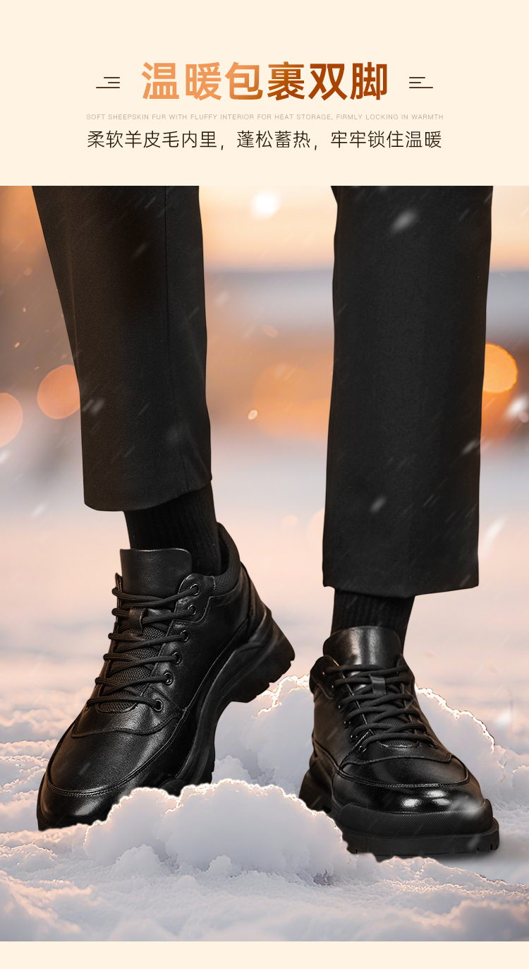 【实付满399送保温杯】【新式羊皮毛抗寒棉鞋】烈焰守护者系列加绒保暖棉鞋防风中帮牛皮皮鞋XM504