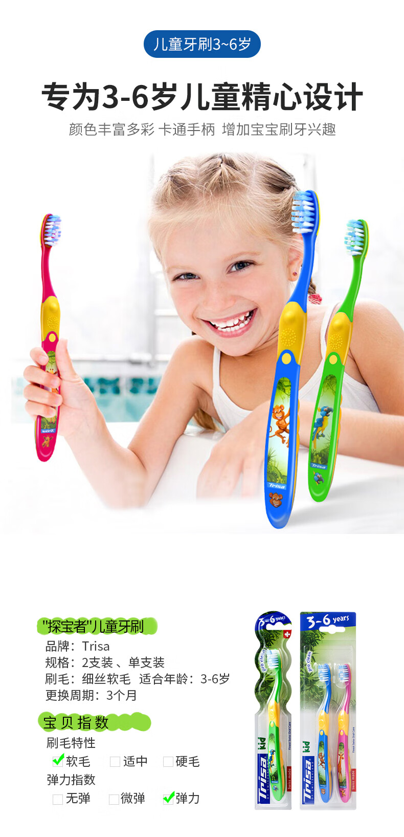 瑞士Trisa儿童成长优护牙刷(3-6岁)两支装