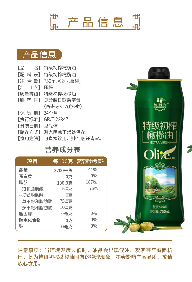 加利利特级初榨橄榄油礼盒(罐装)750ml x 2