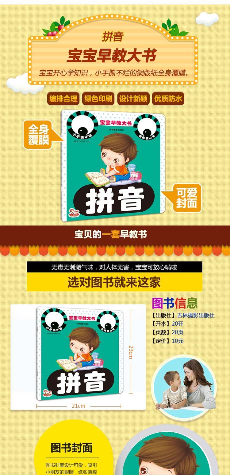 0-3-6岁幼儿宝宝早教大书 拼音 看图学拼音启蒙大书 学前拼音教材 撕不破拼音书儿童学前幼小衔接