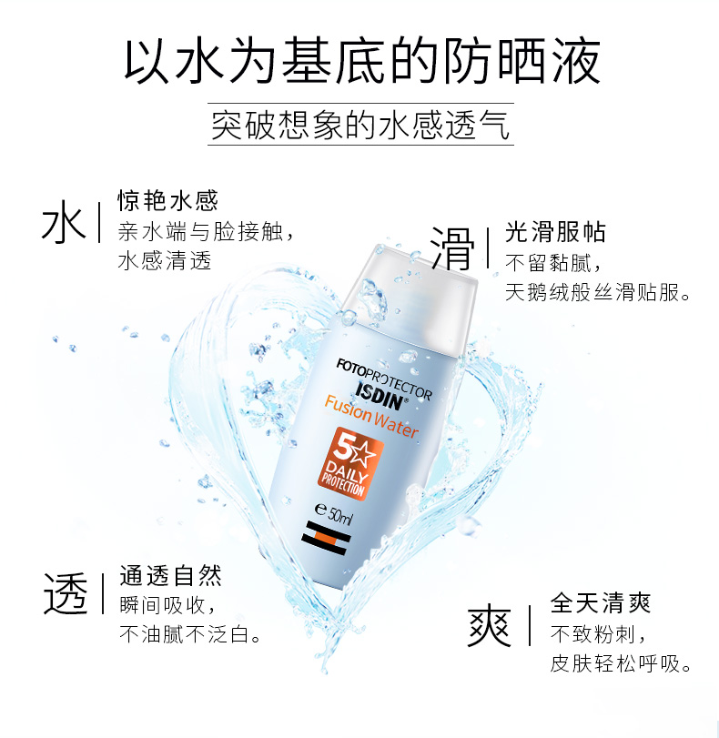 【完税进口】西班牙怡思丁ISDIN 多维光护沁融水感防晒液 SPF50+ 50ml(新老包装随机发)