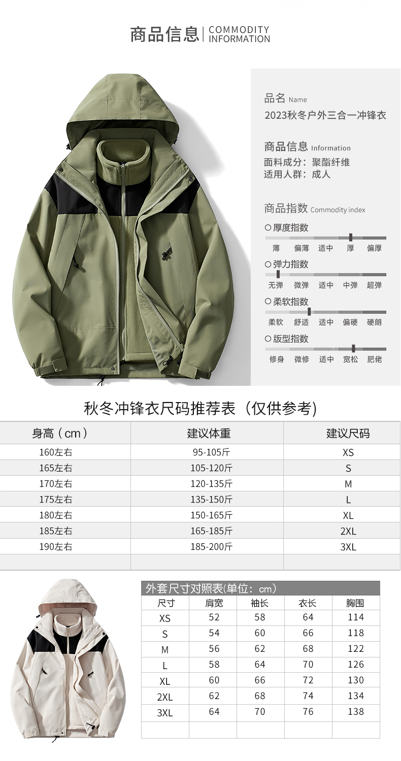 品牌直发 【JEEP SPIRIT 吉普秋冬户外冲锋衣三合一可拆卸内胆两件套情侣 23658SHY款】男女同款 两件套 一衣多穿户外可拆内胆