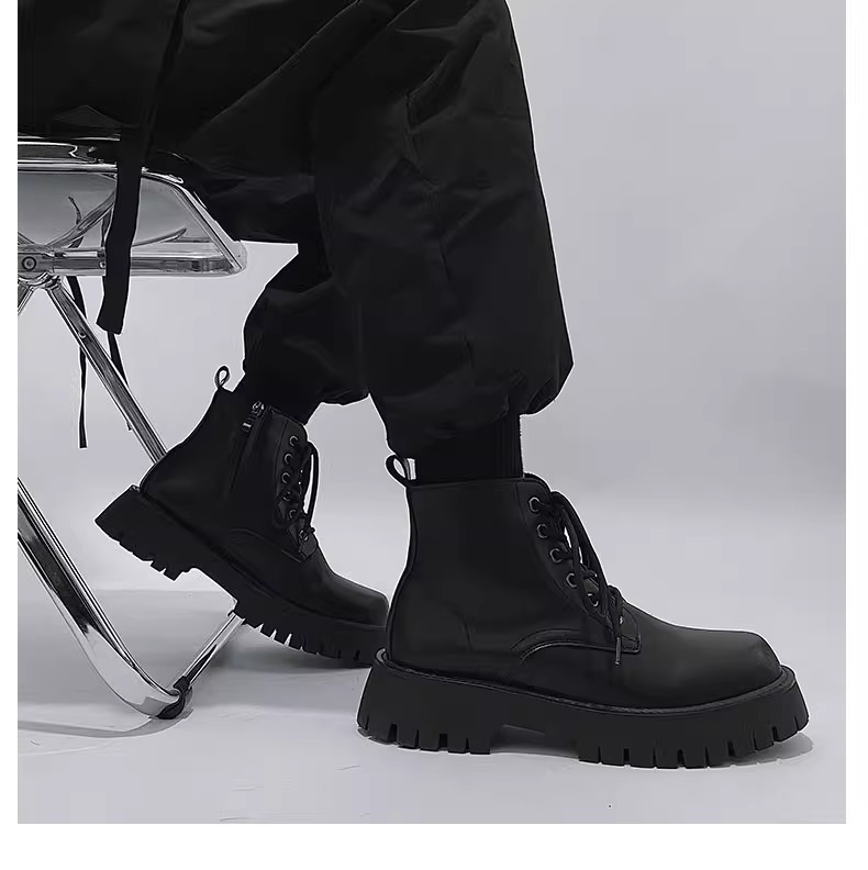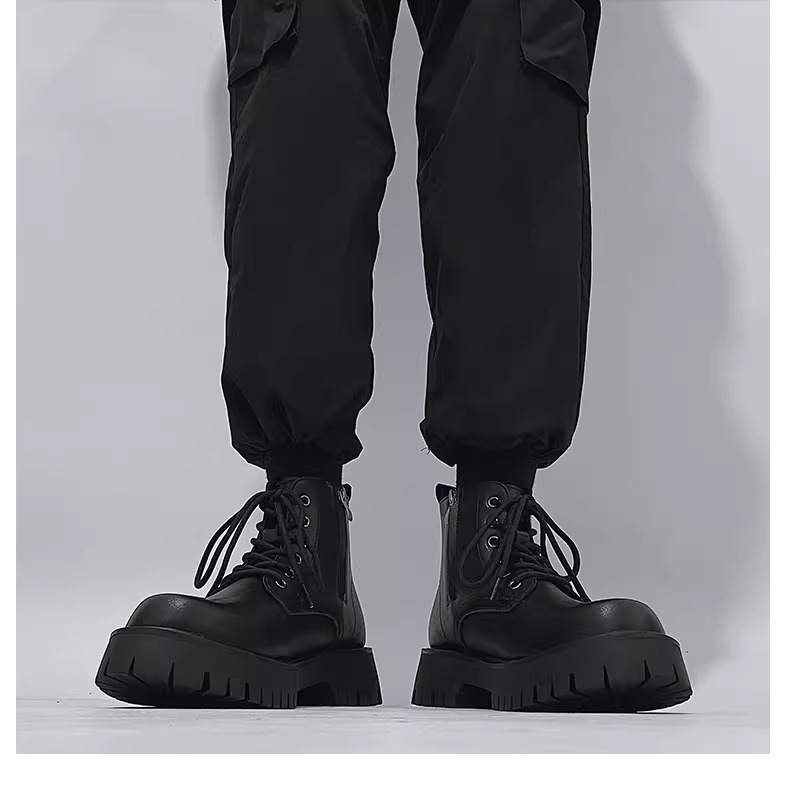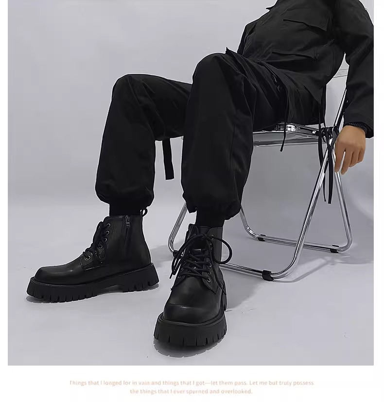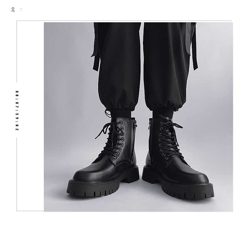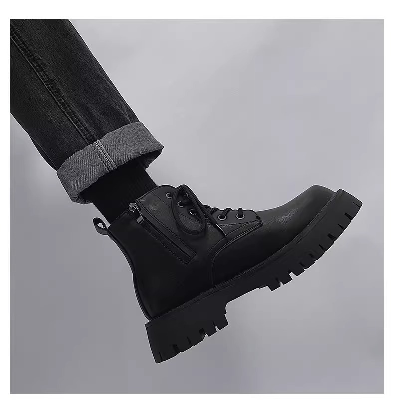 男高帮英伦风休闲黑色工装机车靴增高中帮骑士靴侧拉链马丁靴