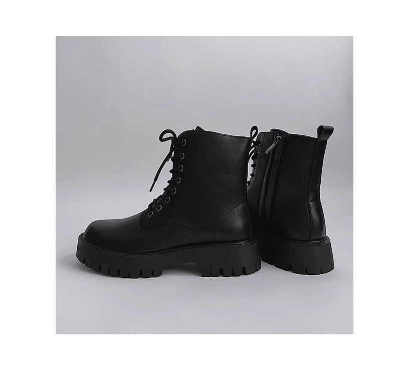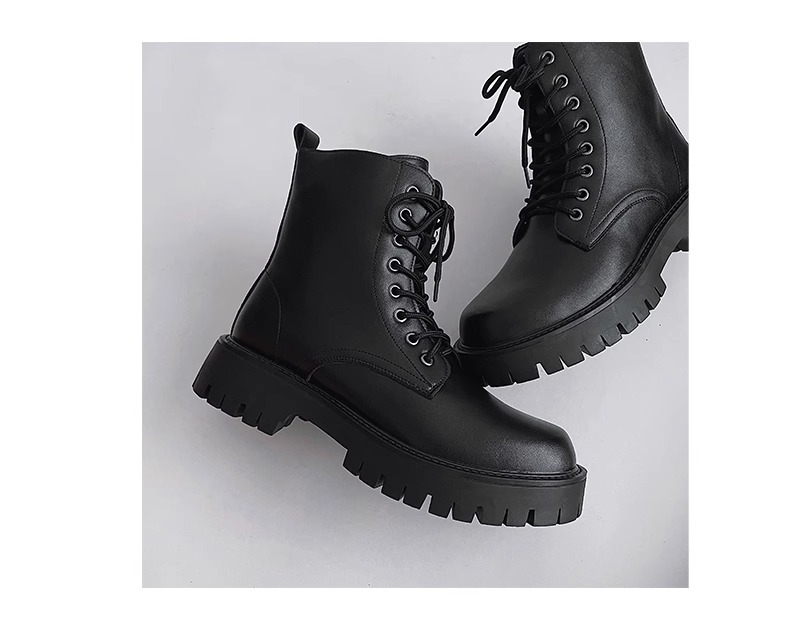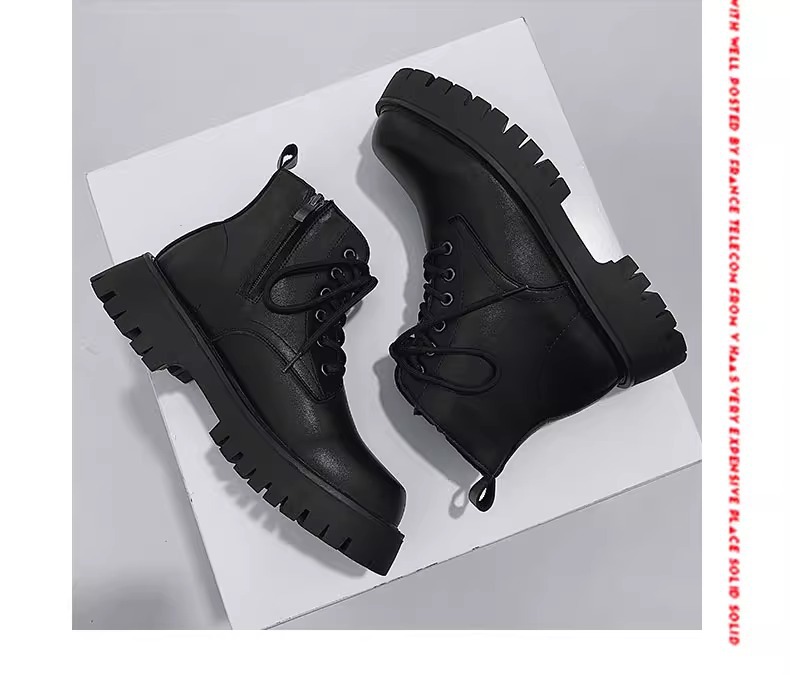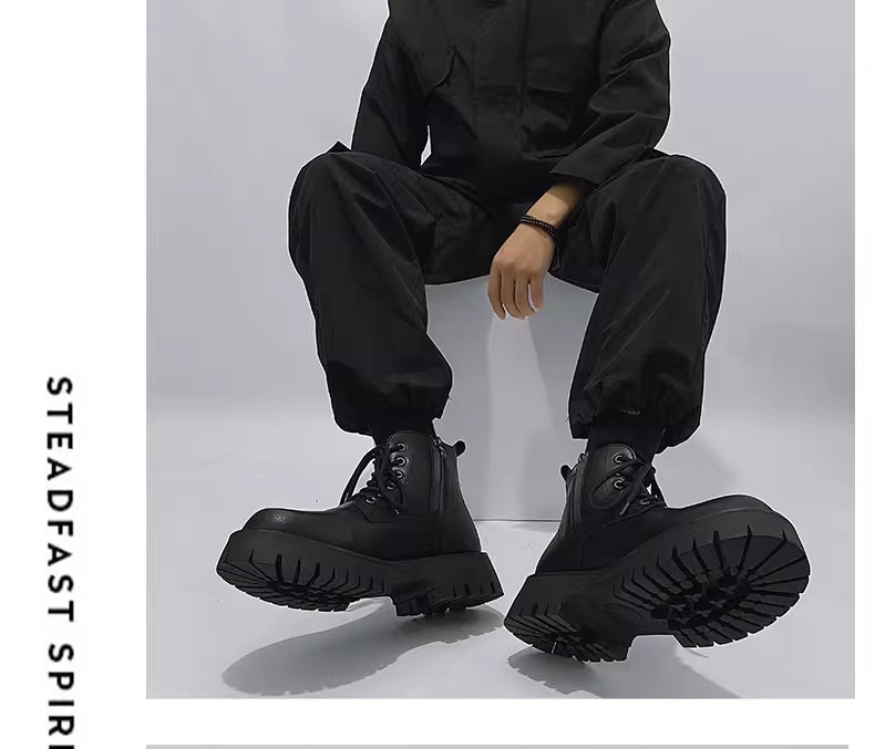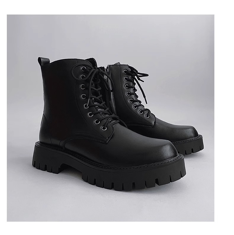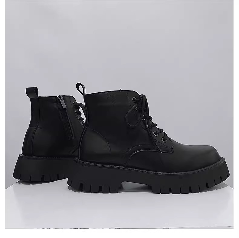 男高帮英伦风休闲黑色工装机车靴增高中帮骑士靴侧拉链马丁靴