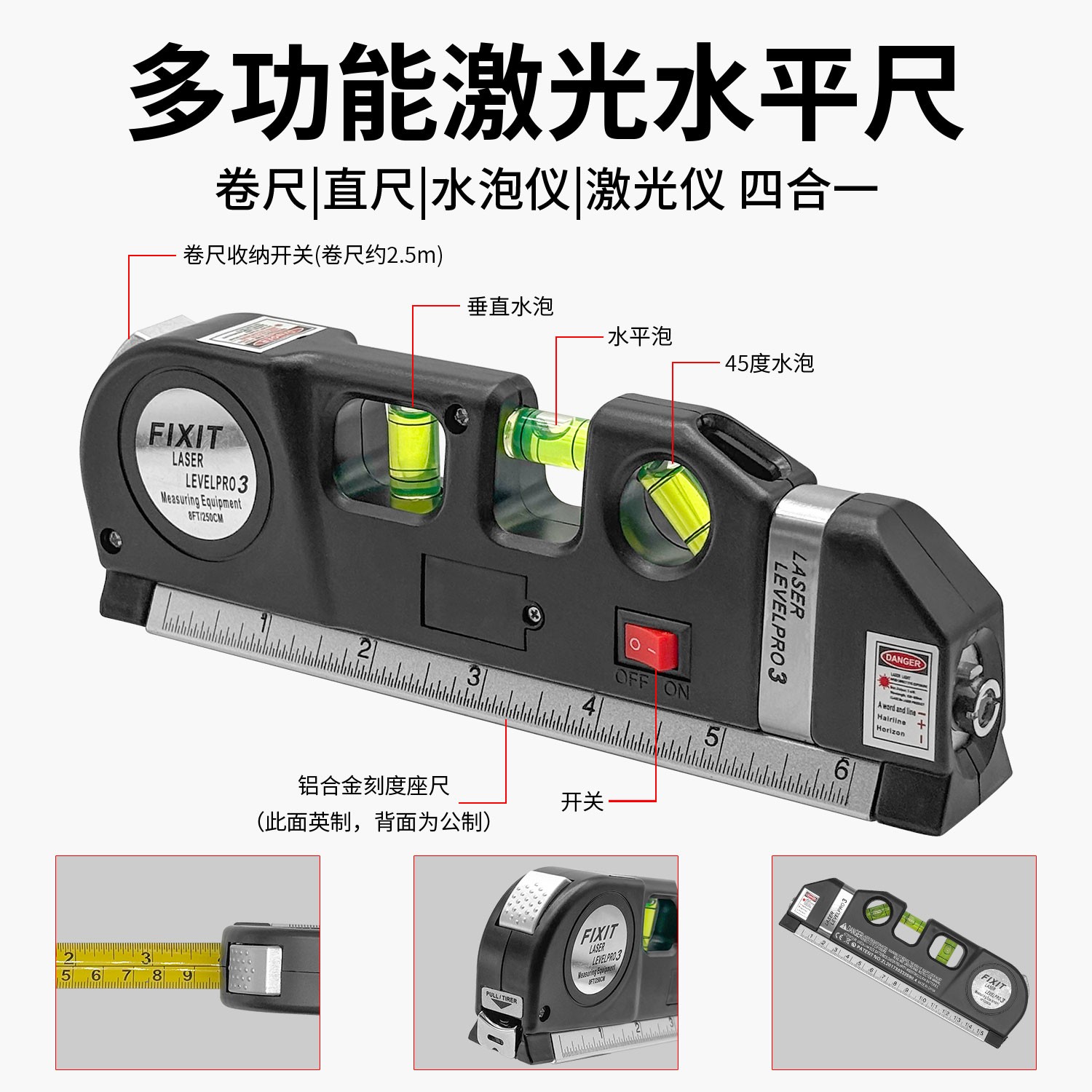 【货号05894】多功能水平尺高精度投线仪激光红外线水平仪测距仪器卷尺