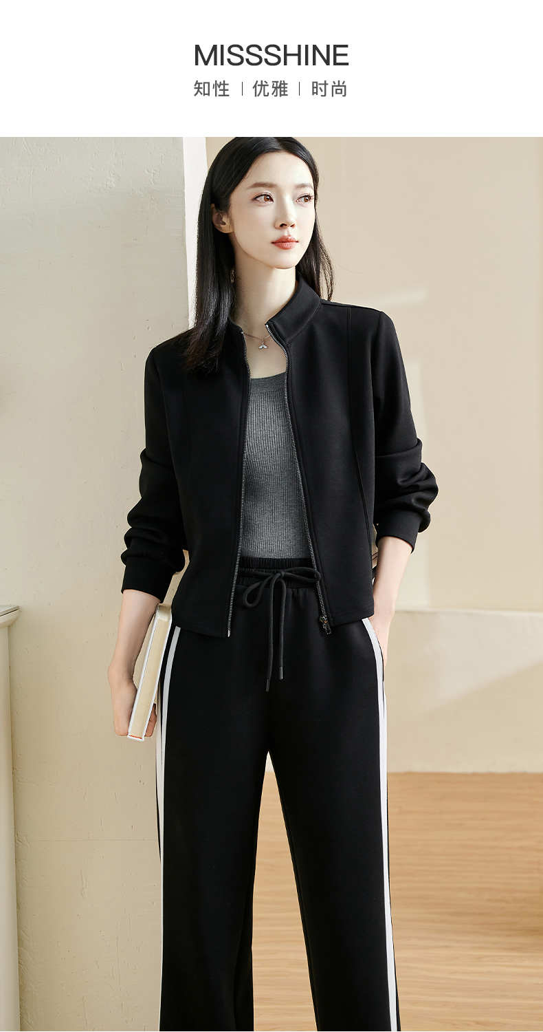 休闲运动套装 自带高级感 米思阳2026春季时尚休闲外套阔腿裤两件套2061