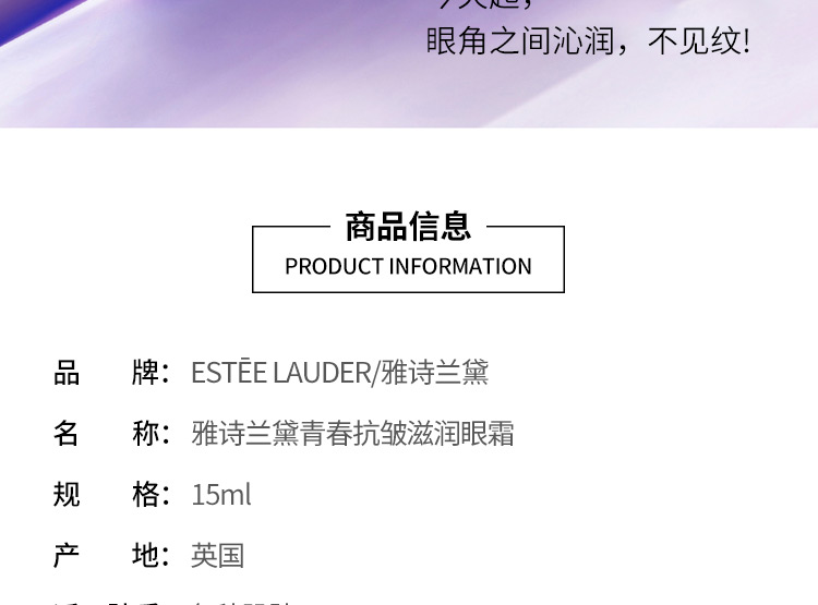 香港直邮 美国ESTĒE LAUDER雅诗兰黛青春抗皱滋润眼霜 15mlJPY带授权招加盟代理