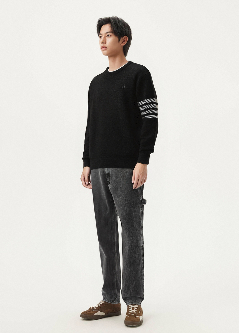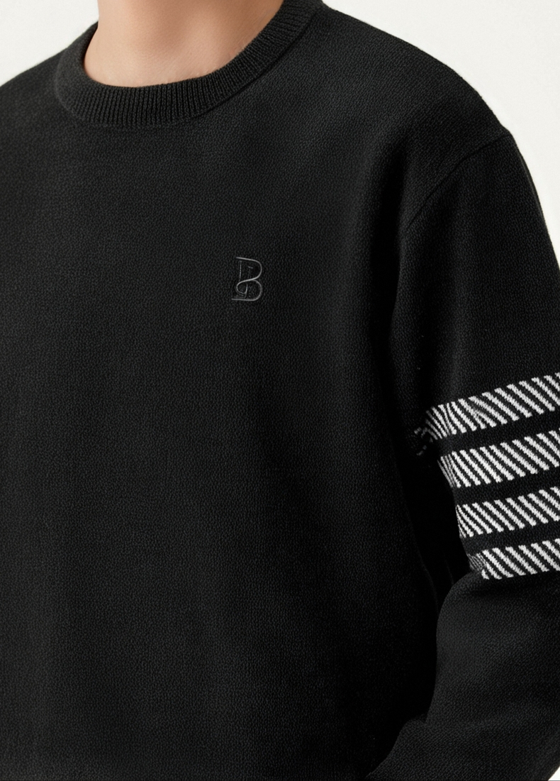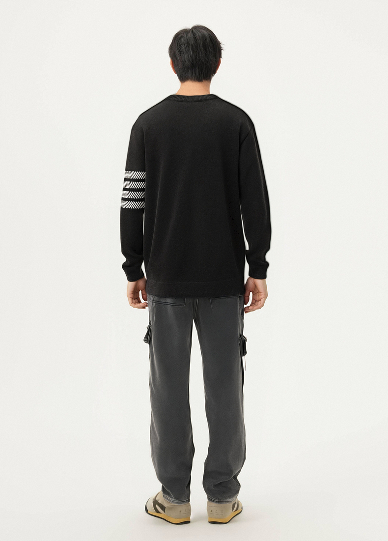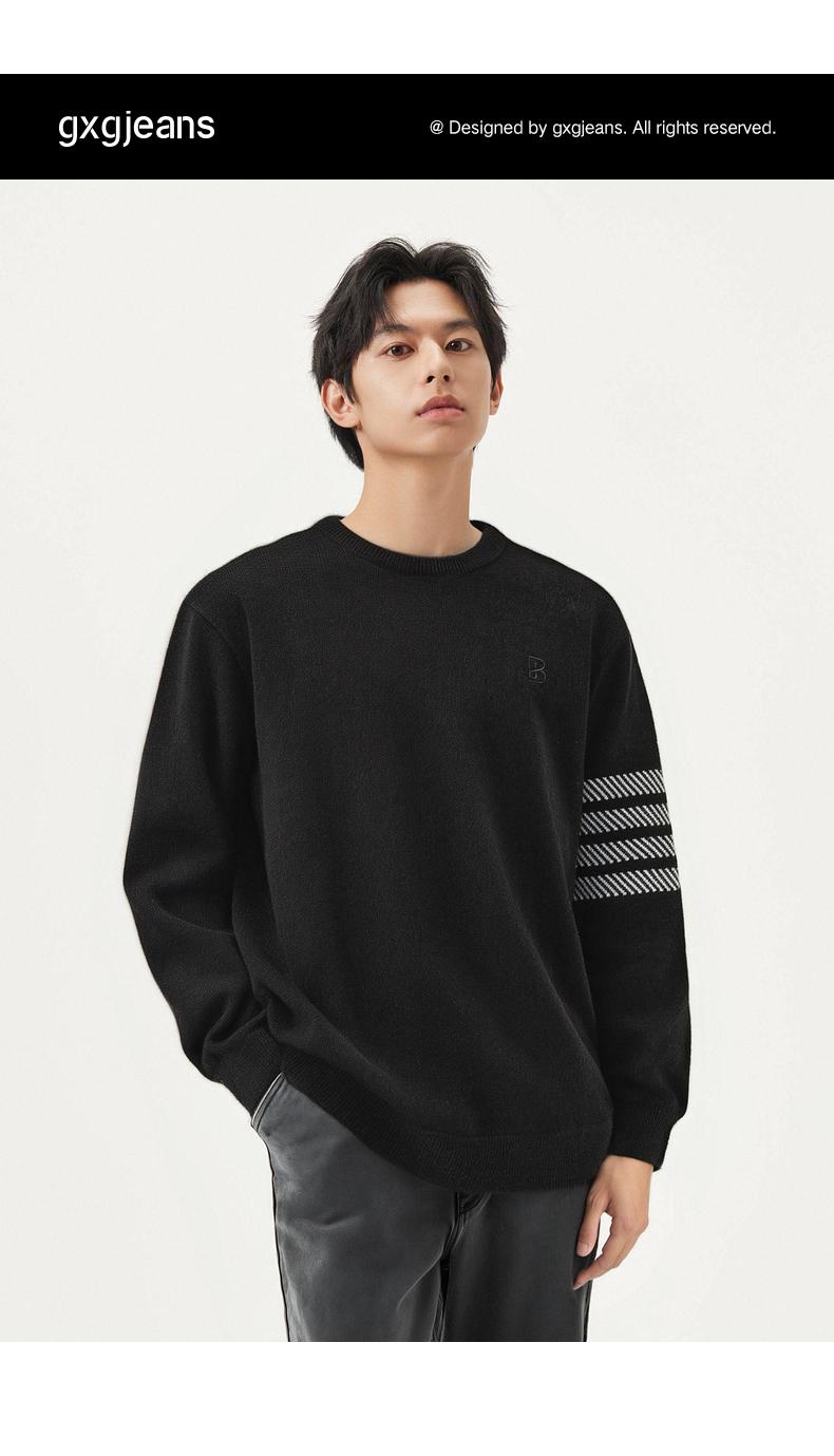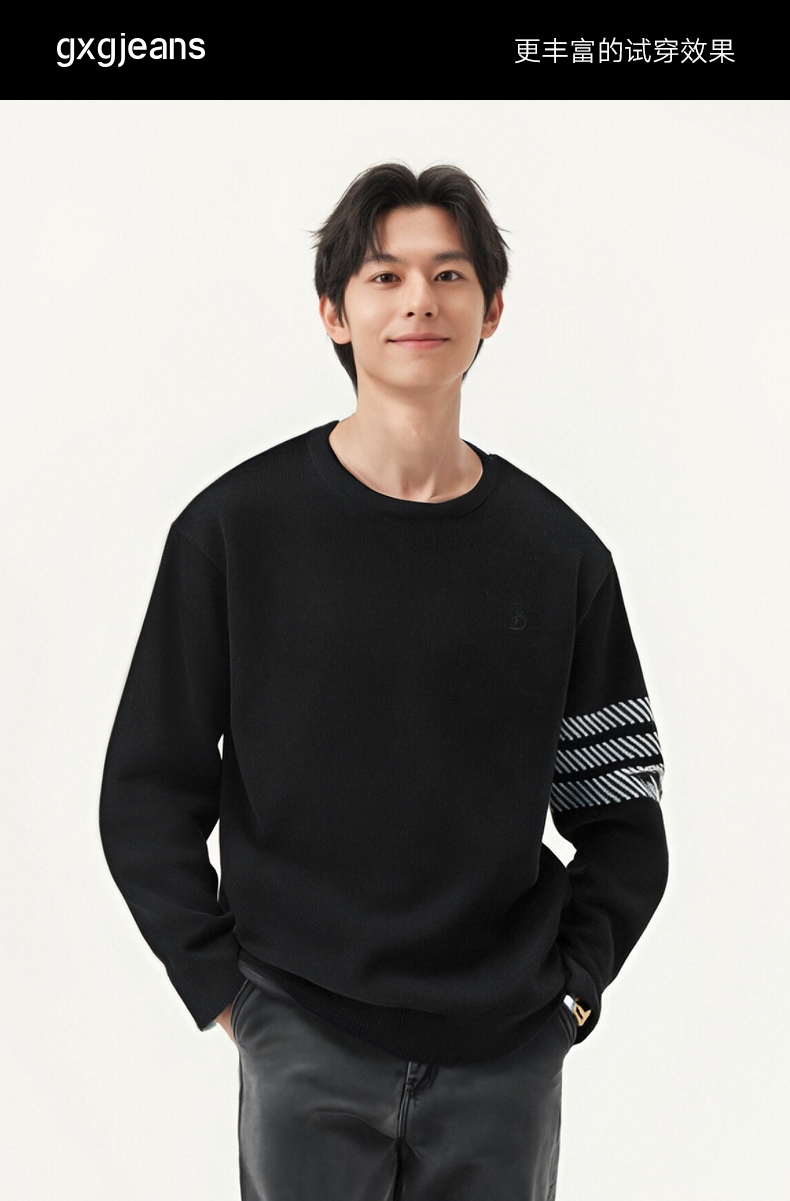 gxg.jeans男装 黑色撞色设计雪尼尔圆领毛衣针织衫男 25年春热卖