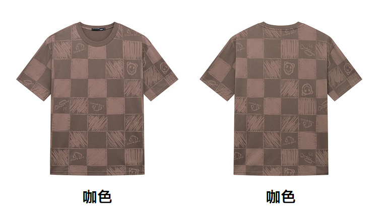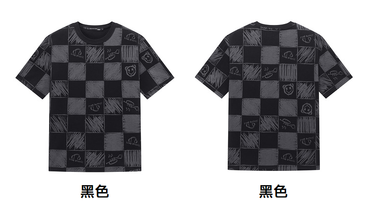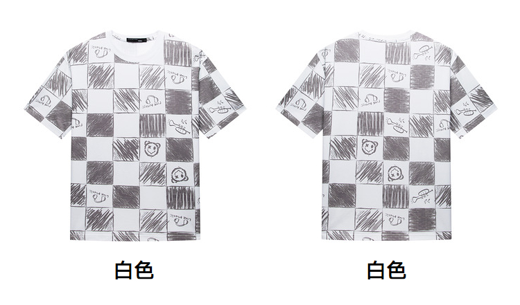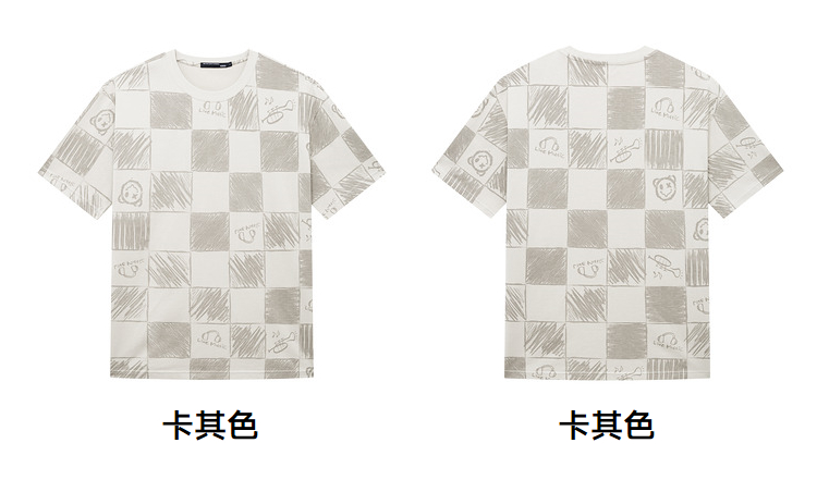 GXG男装 夏热卖纯棉潮搭涂鸦棋盘格创意印花时尚情侣短袖T恤