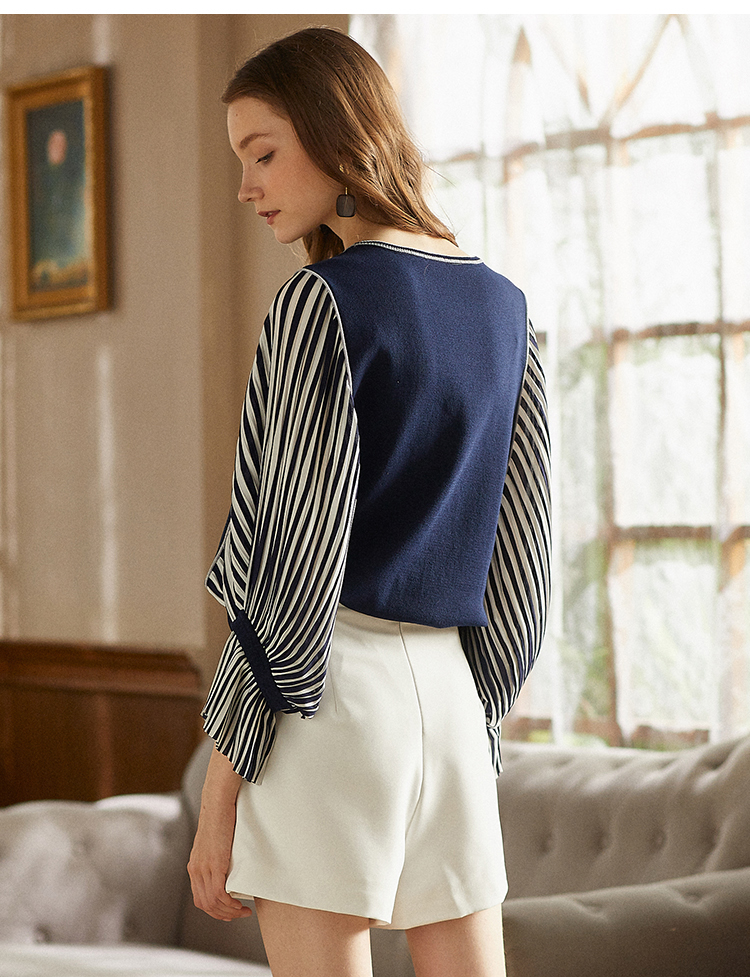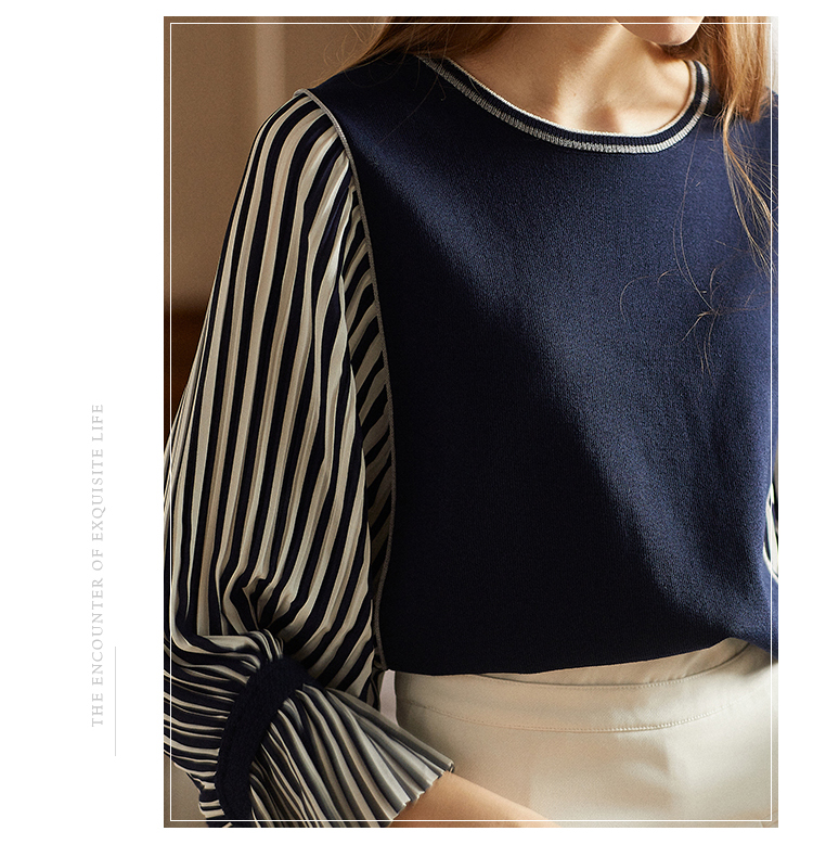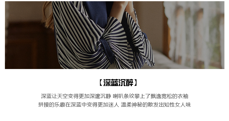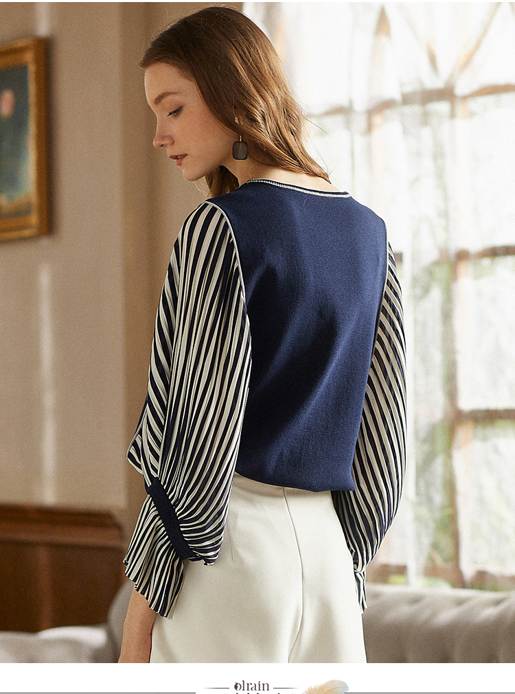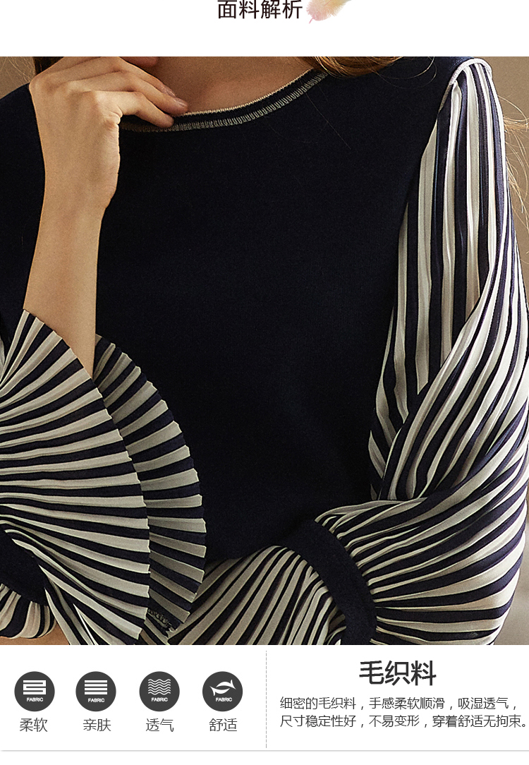 欧芮儿2018秋装新款预宽松显瘦喇叭袖条纹拼接毛针织衫女[促]