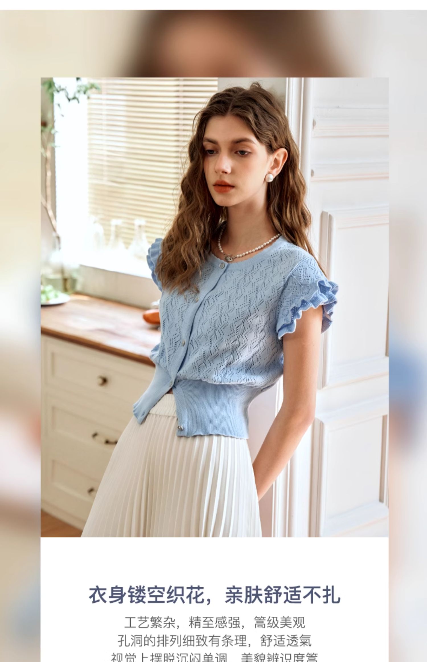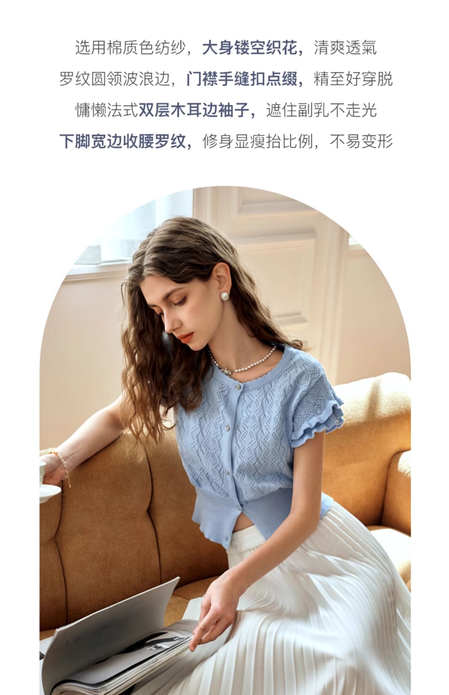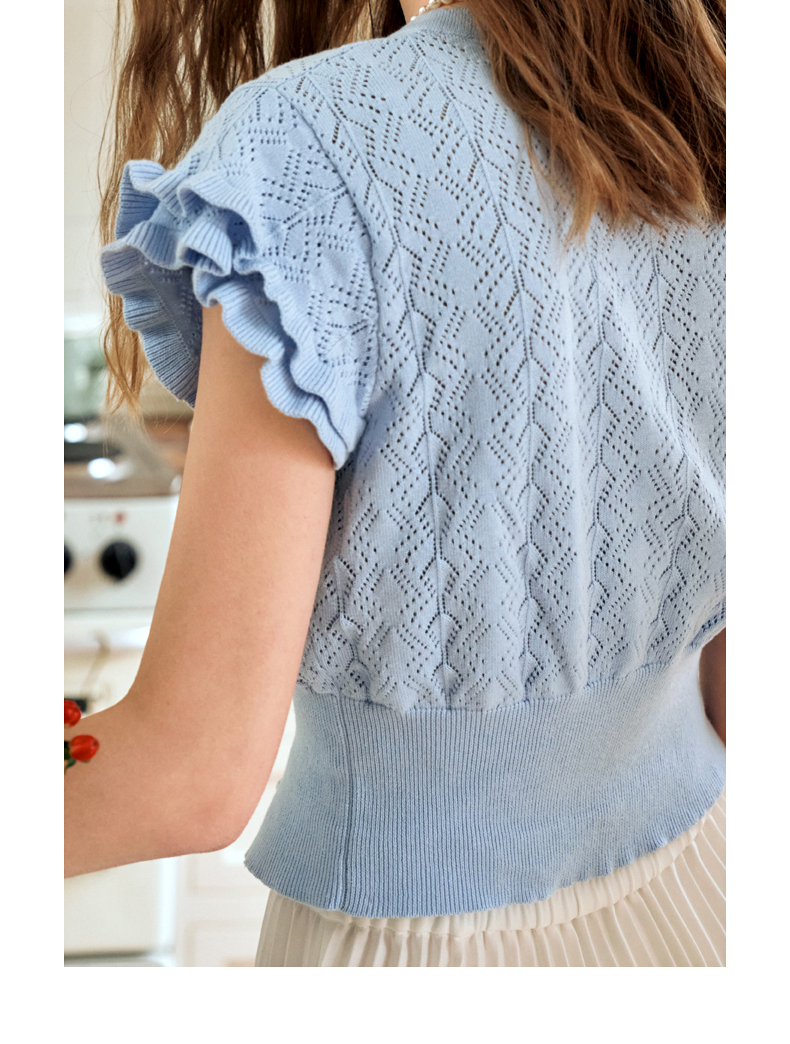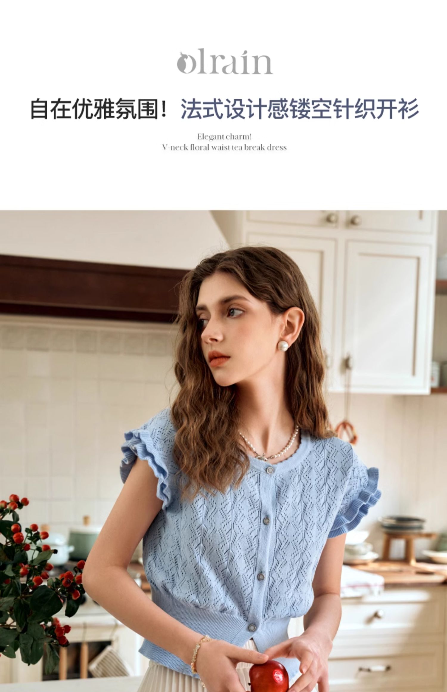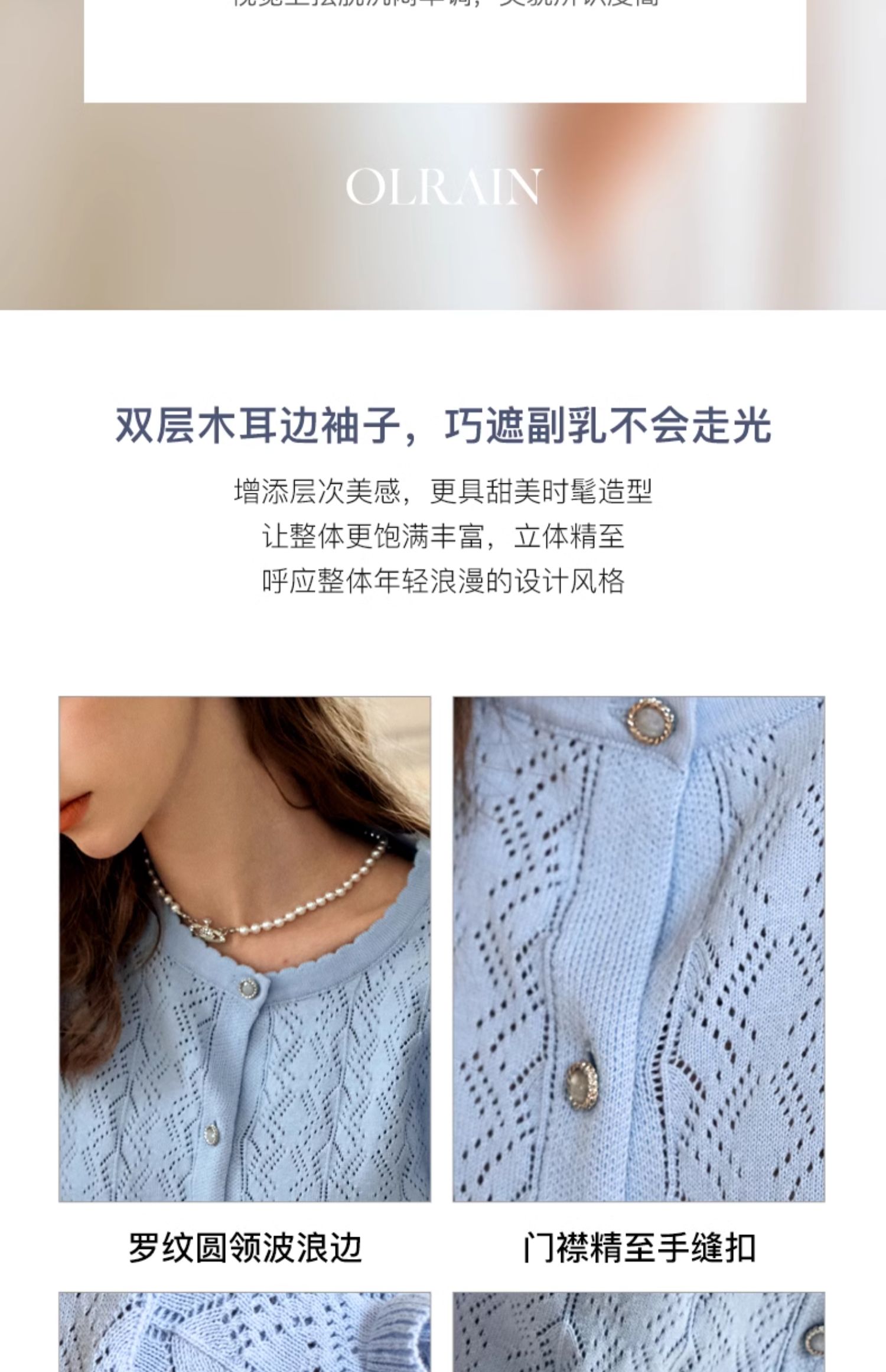 OLrain欧芮儿法式镂空针织衫女夏季2024年新款气质圆领设计感上衣