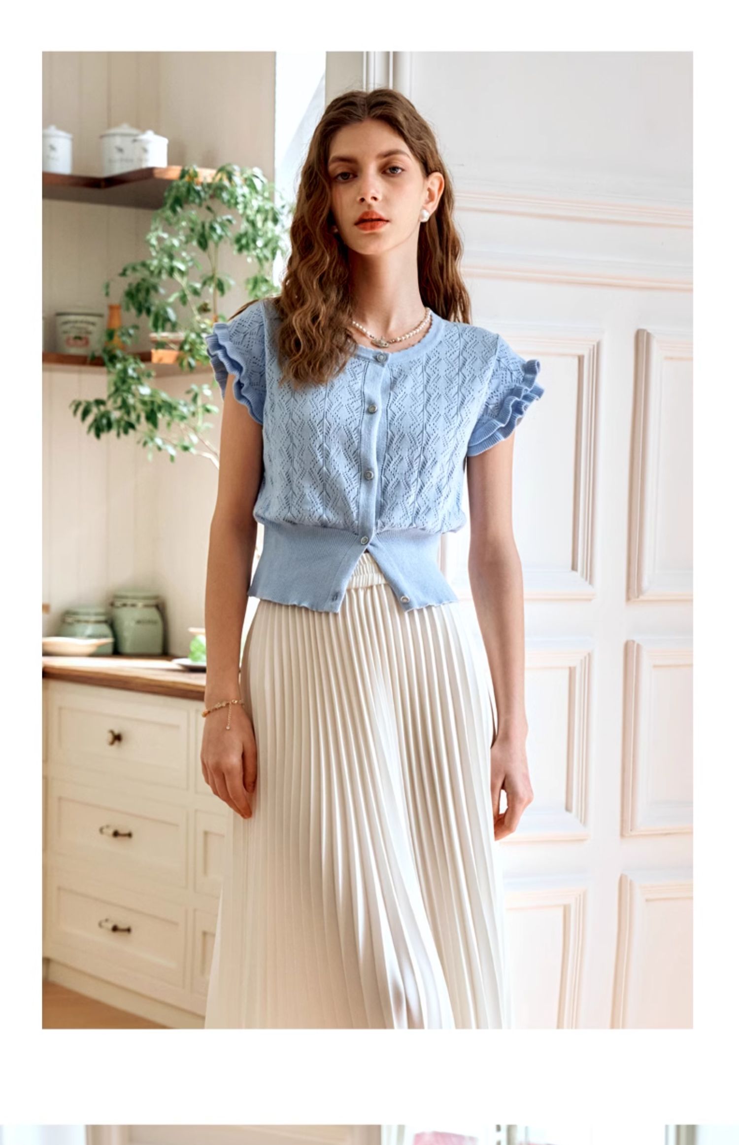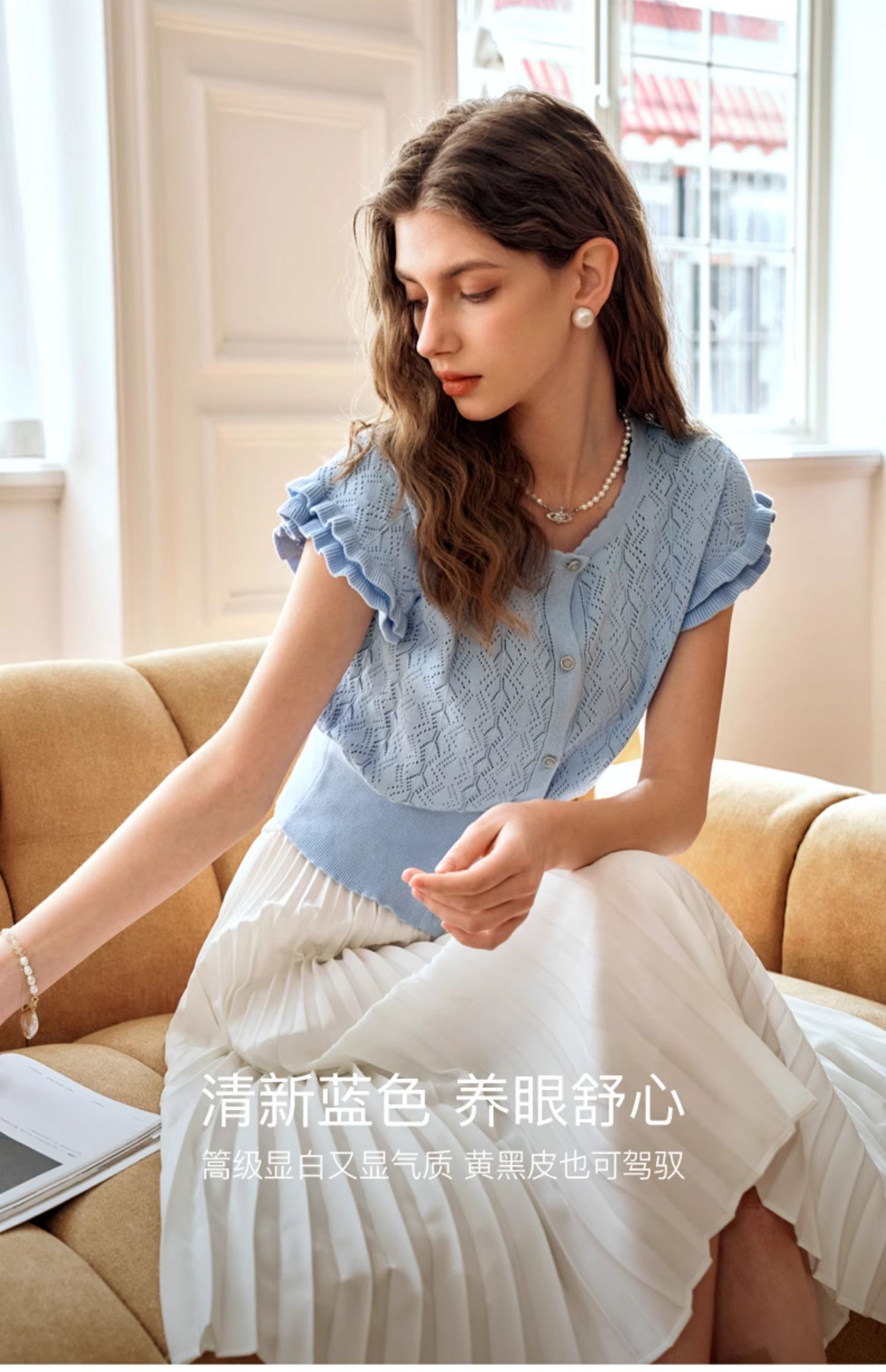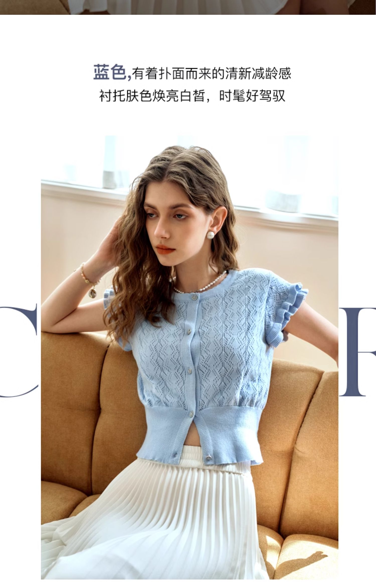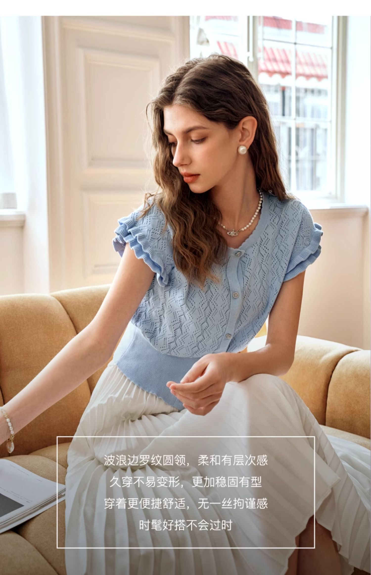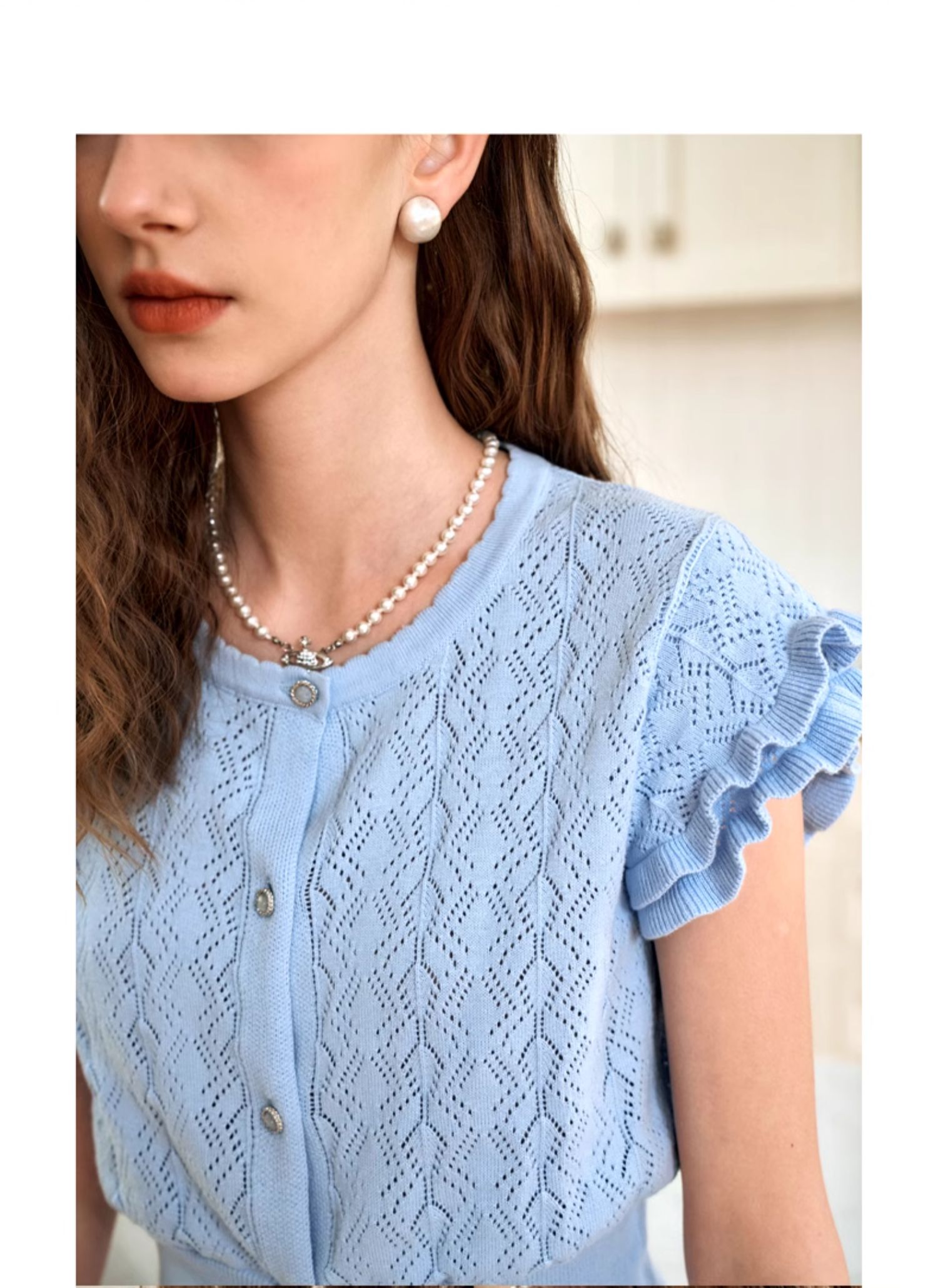 OLrain欧芮儿法式镂空针织衫女夏季2024年新款气质圆领设计感上衣