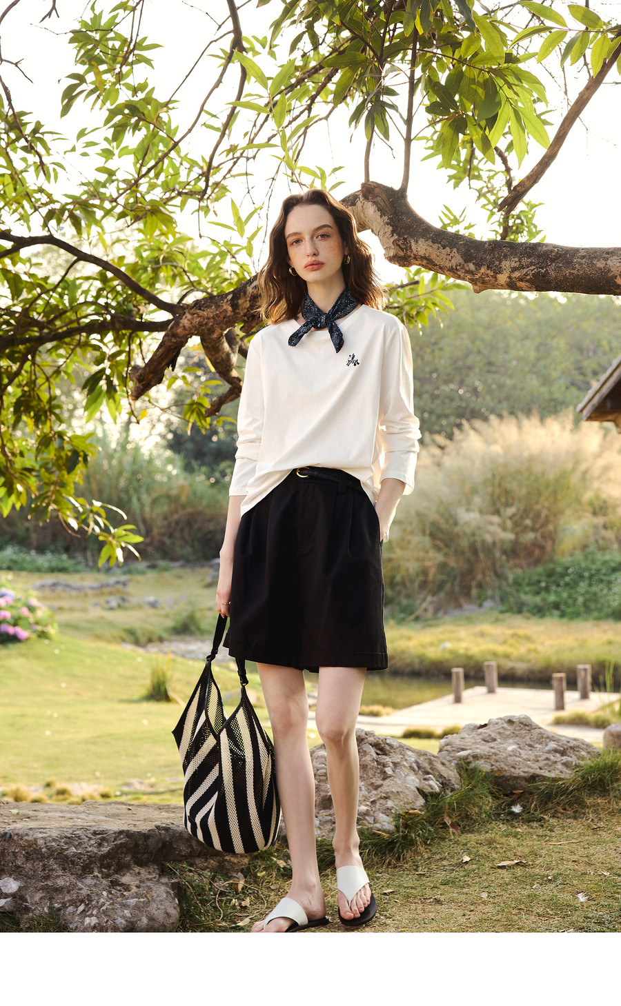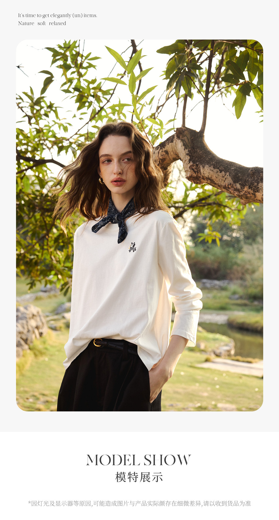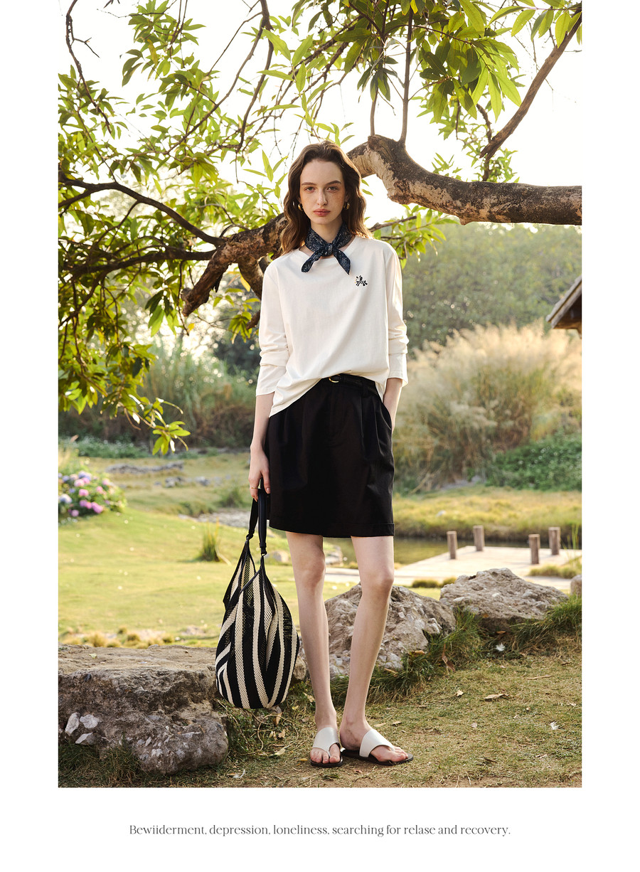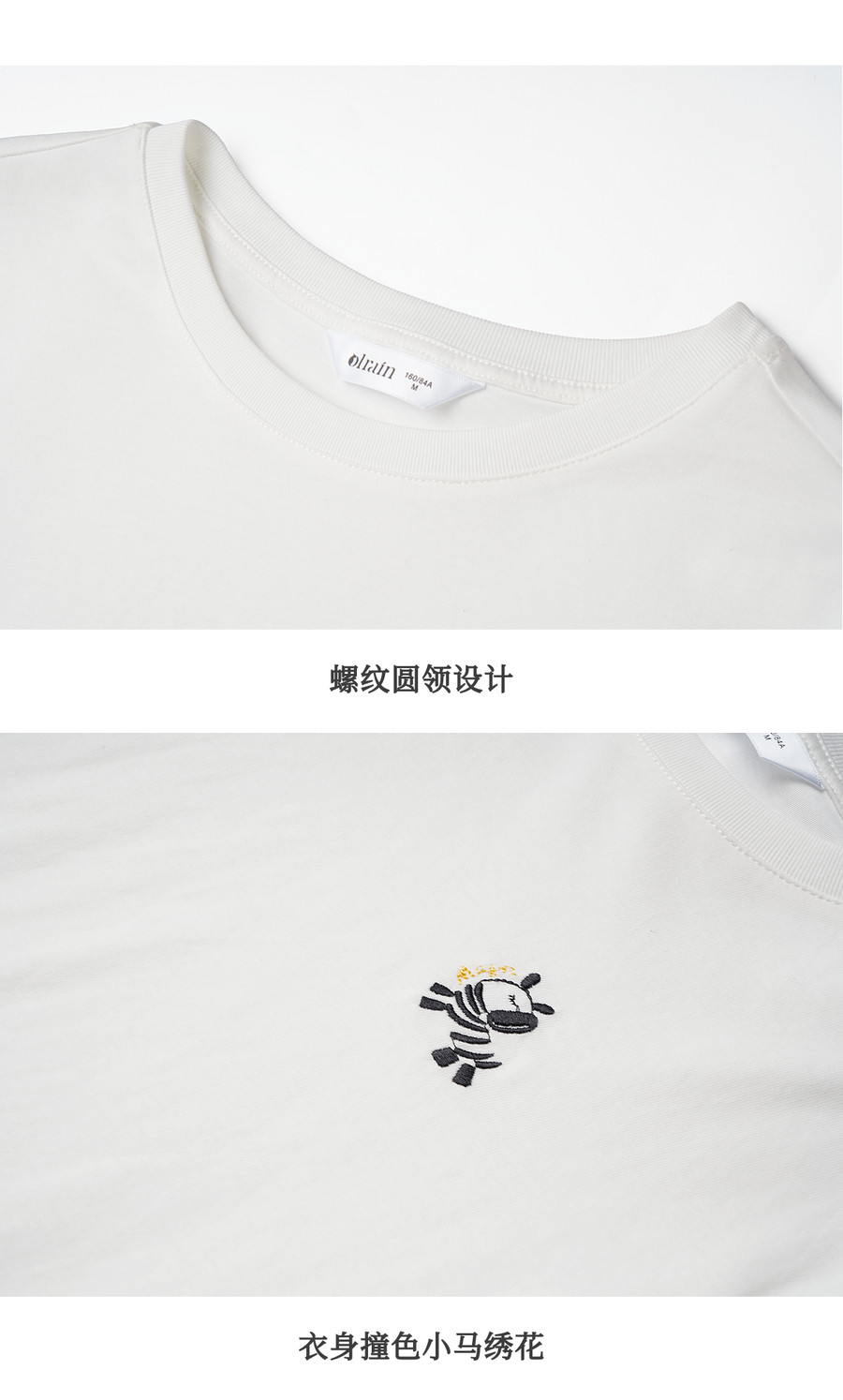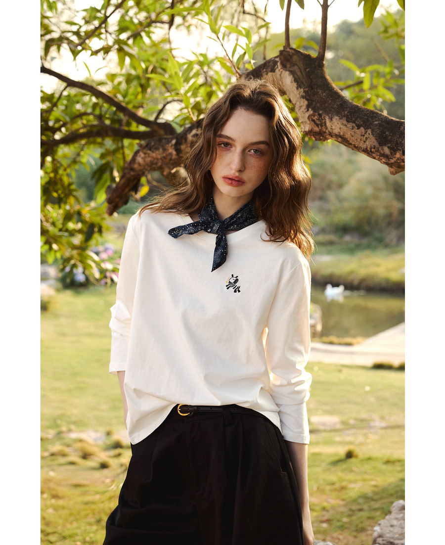 欧芮儿简约撞色小马绣花休闲长袖T恤女春季2026新款纯棉圆领上衣
