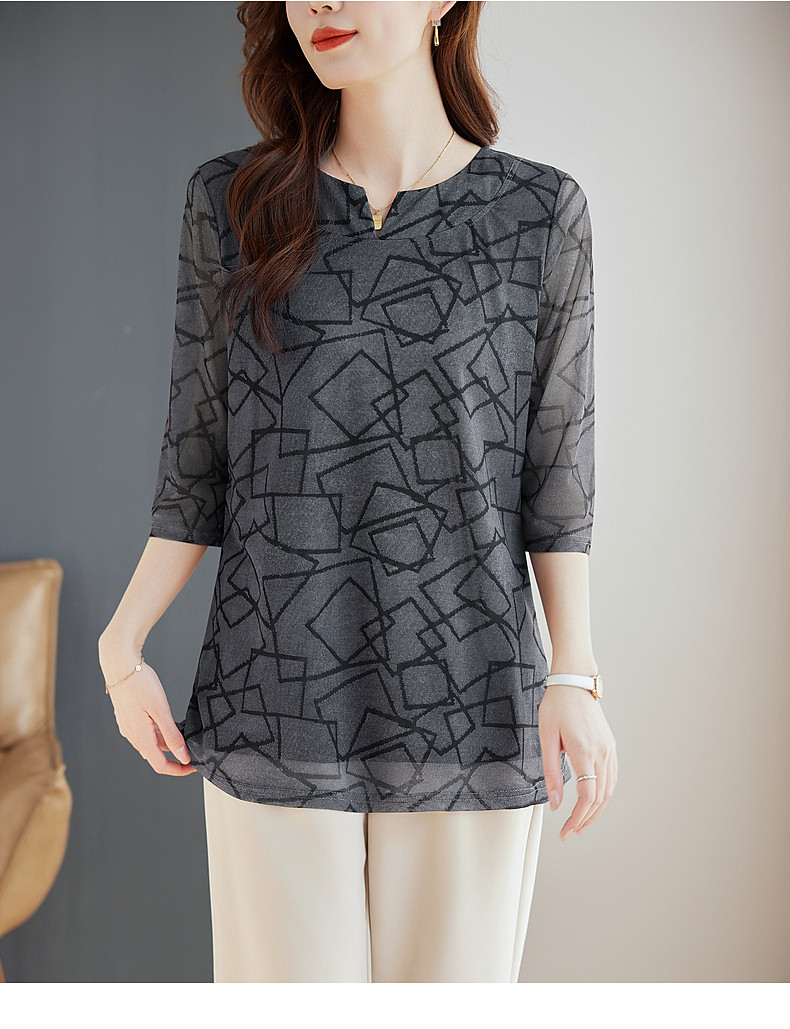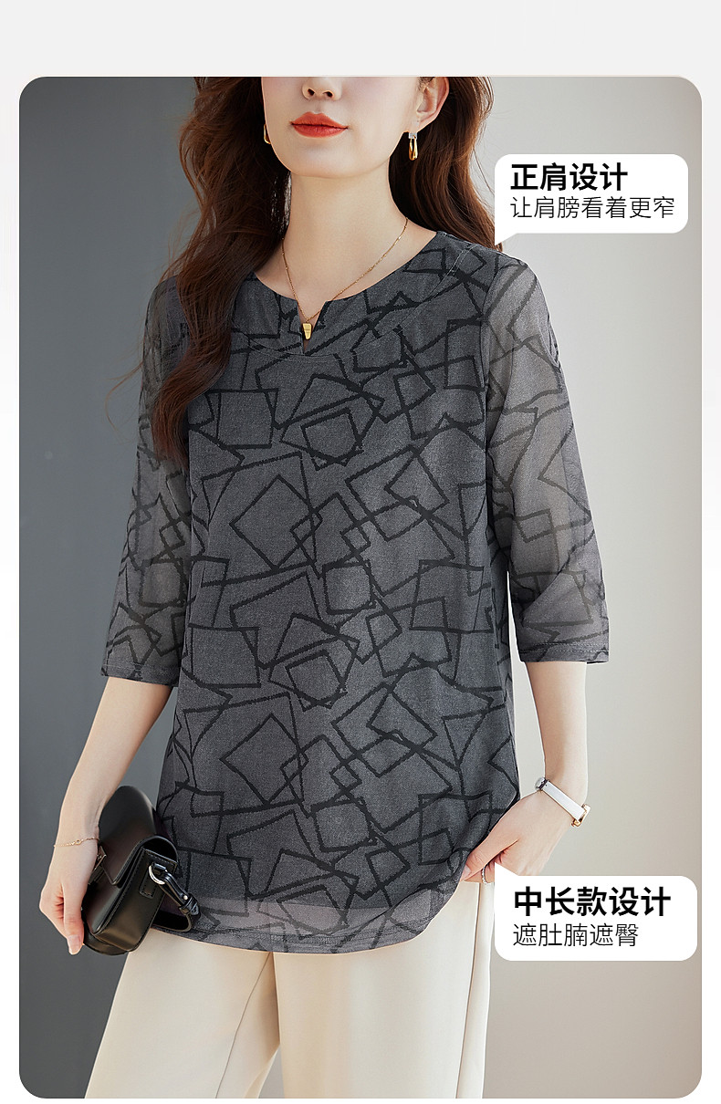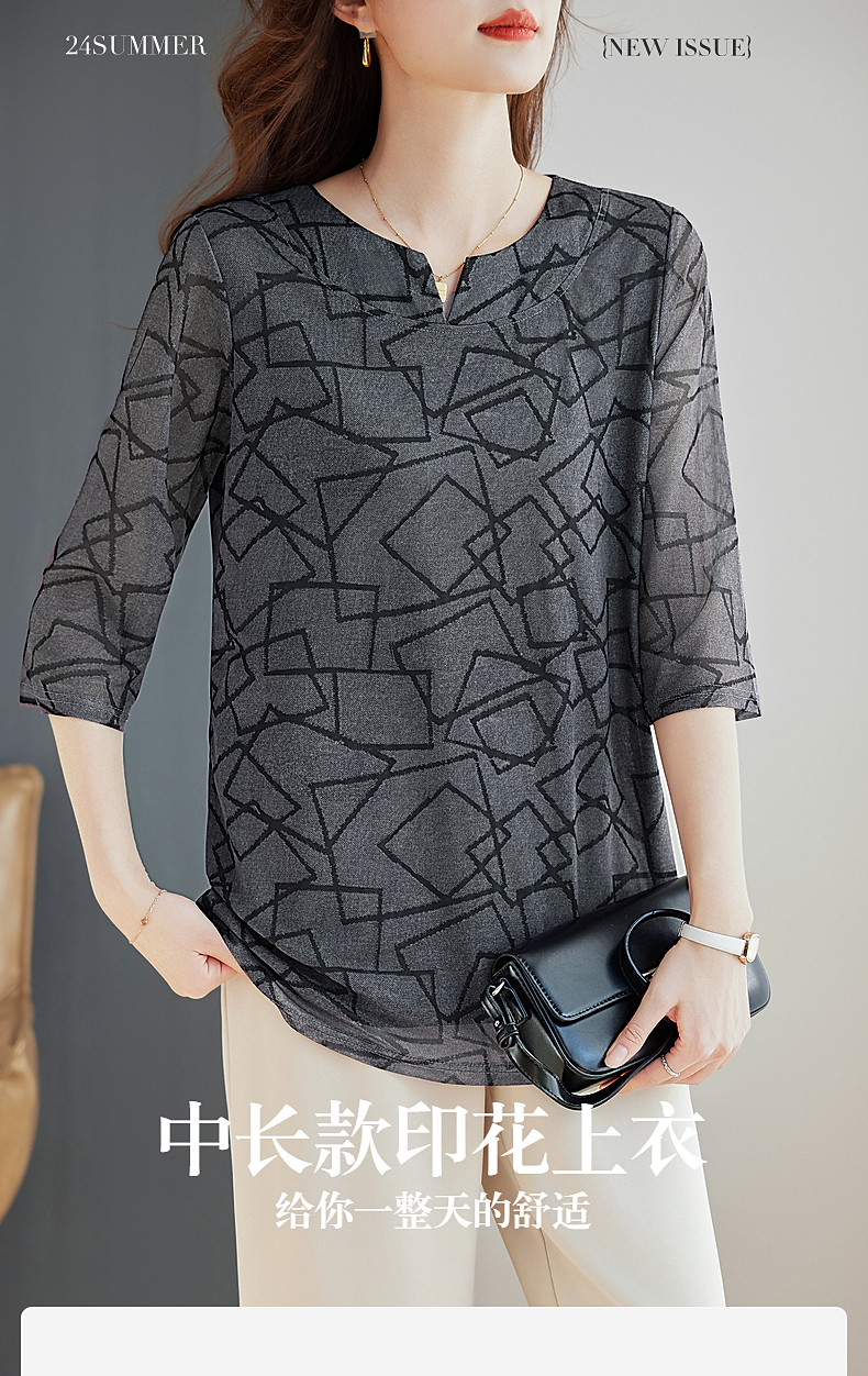 七分袖上衣女2026年新款夏装中长款t恤女宽松显瘦大码中袖打底衫