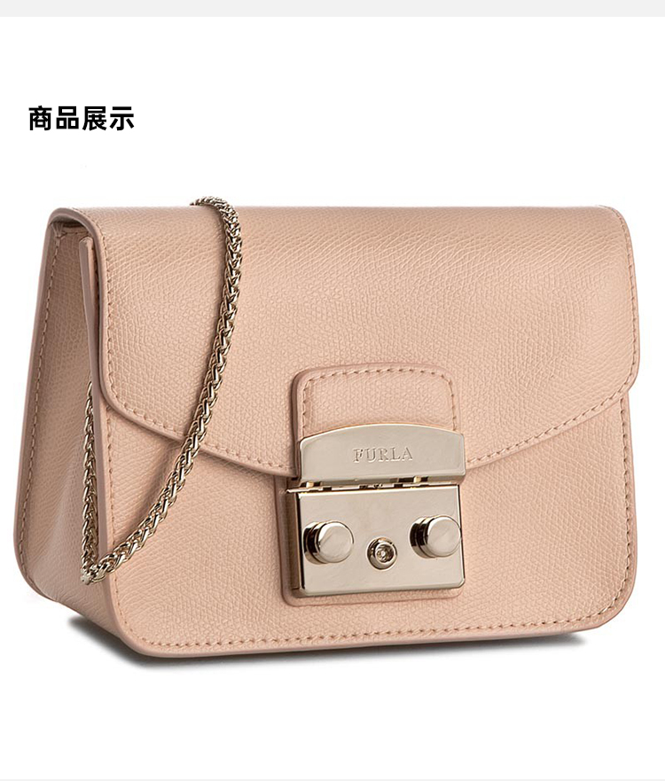 FURLA 芙拉 女士粒面皮革金属字母徽标刻花斜挎单肩包 裸色 884893