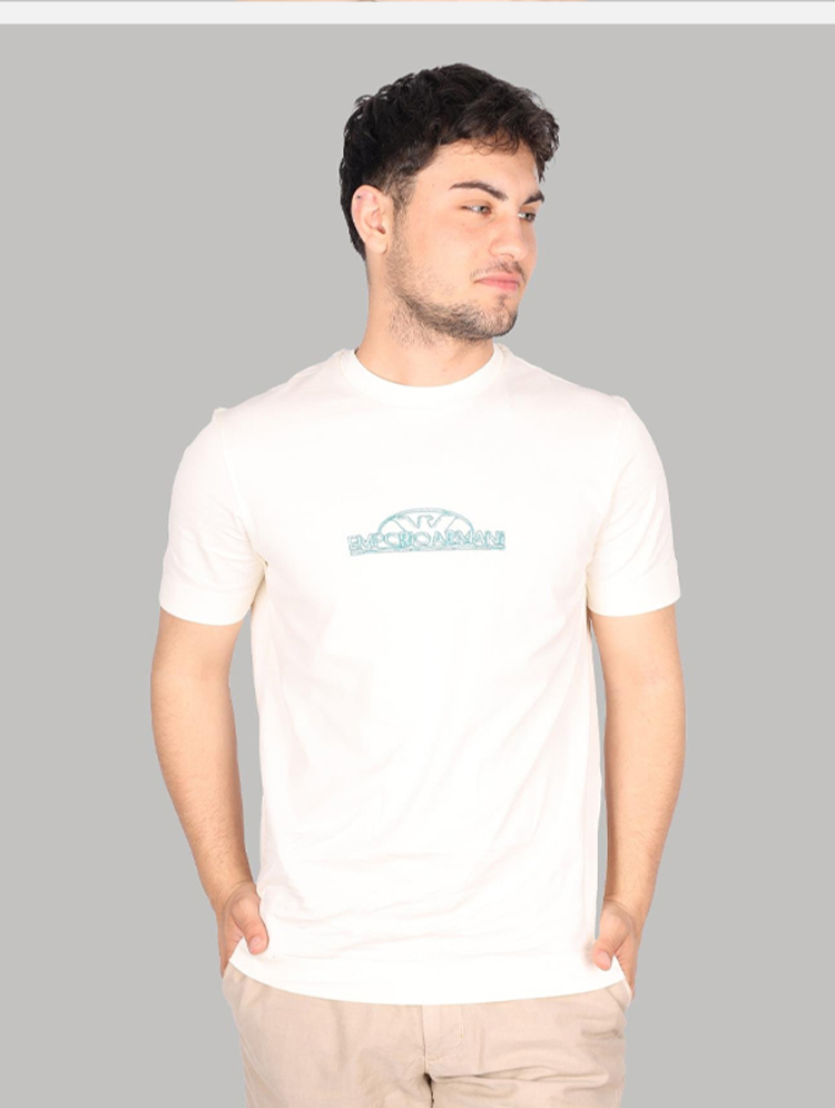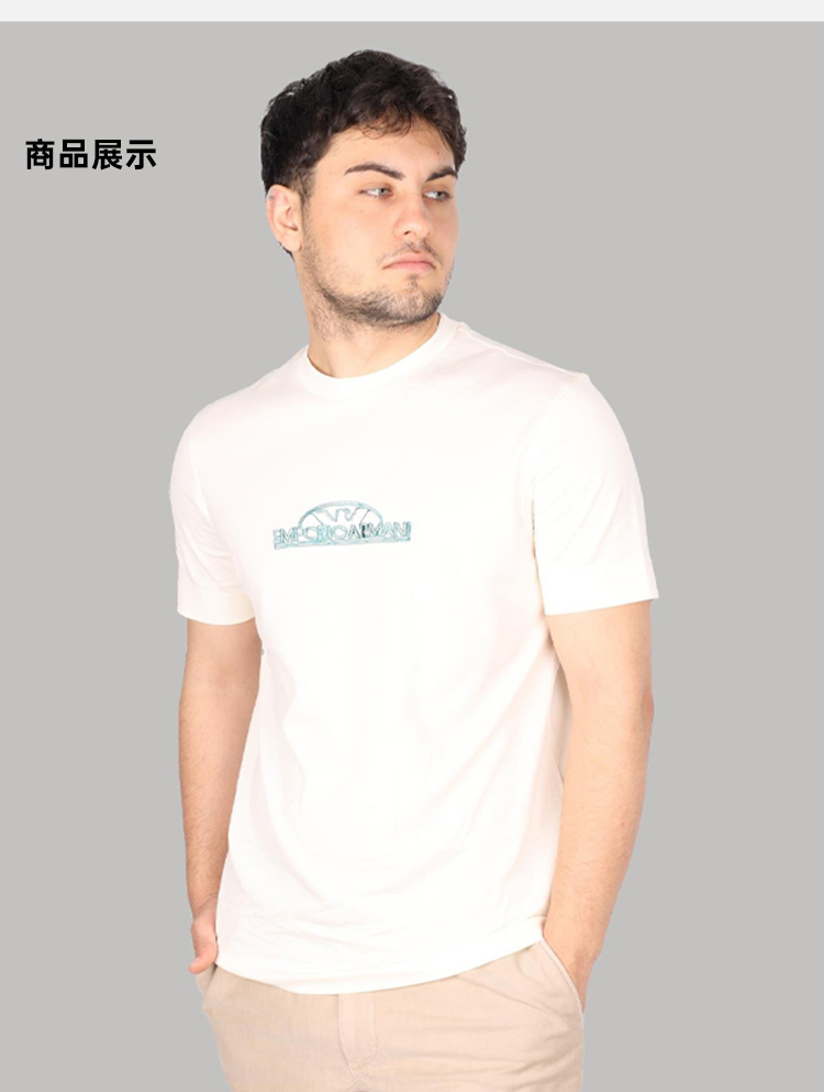EMPORIO ARMANI 阿玛尼 男士徽标刺绣棉质圆领短袖T恤 米色 3D1TG8 1JOCZ 01A1