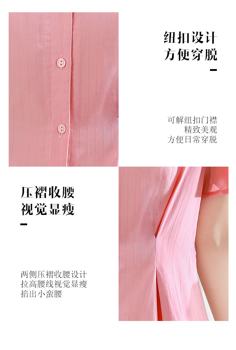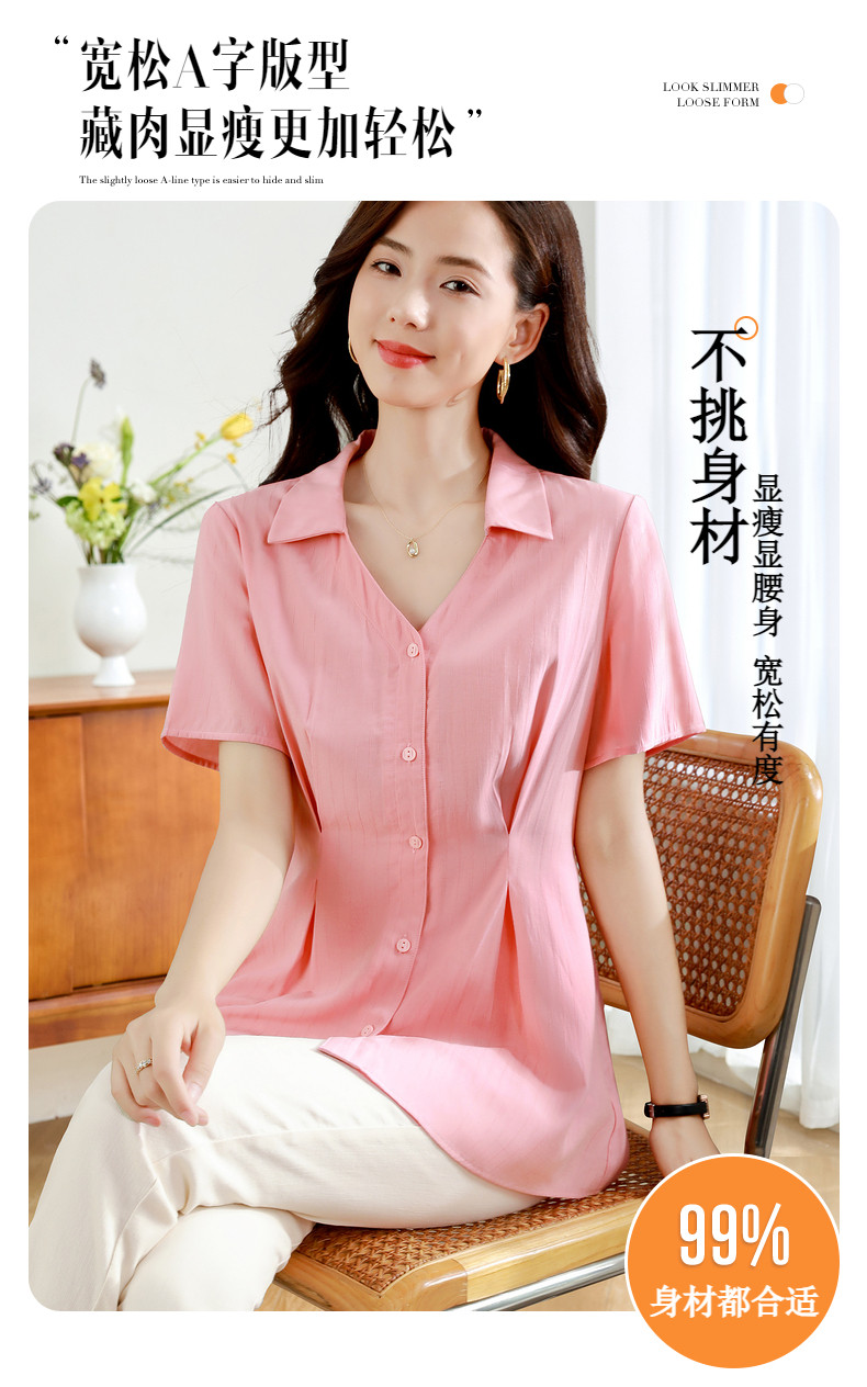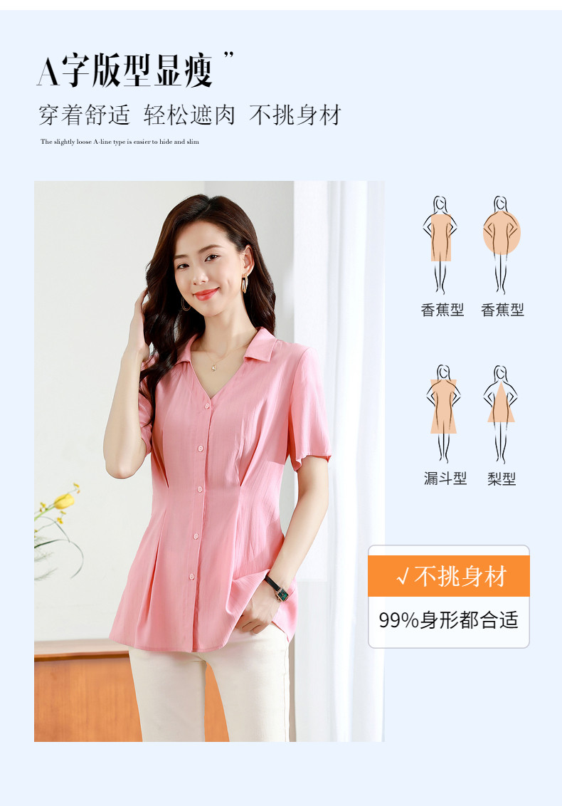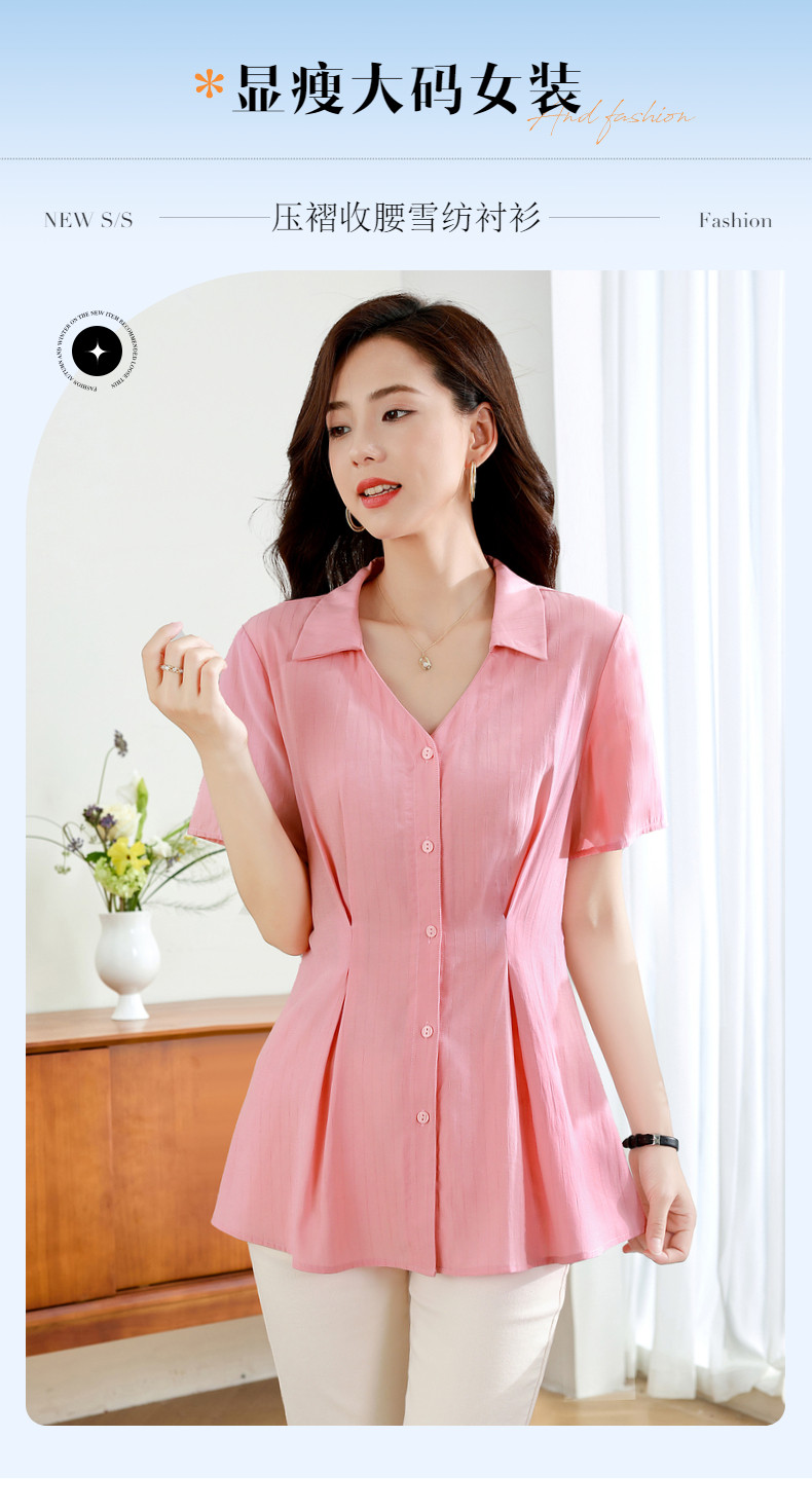 大码宽松遮肚子雪纺衫女2026年夏季新款短袖翻领衬衫女士收腰上衣
