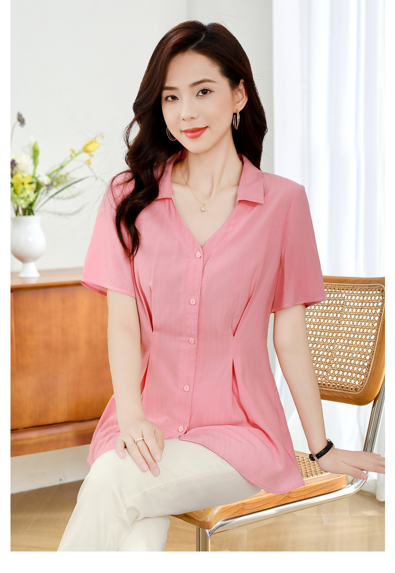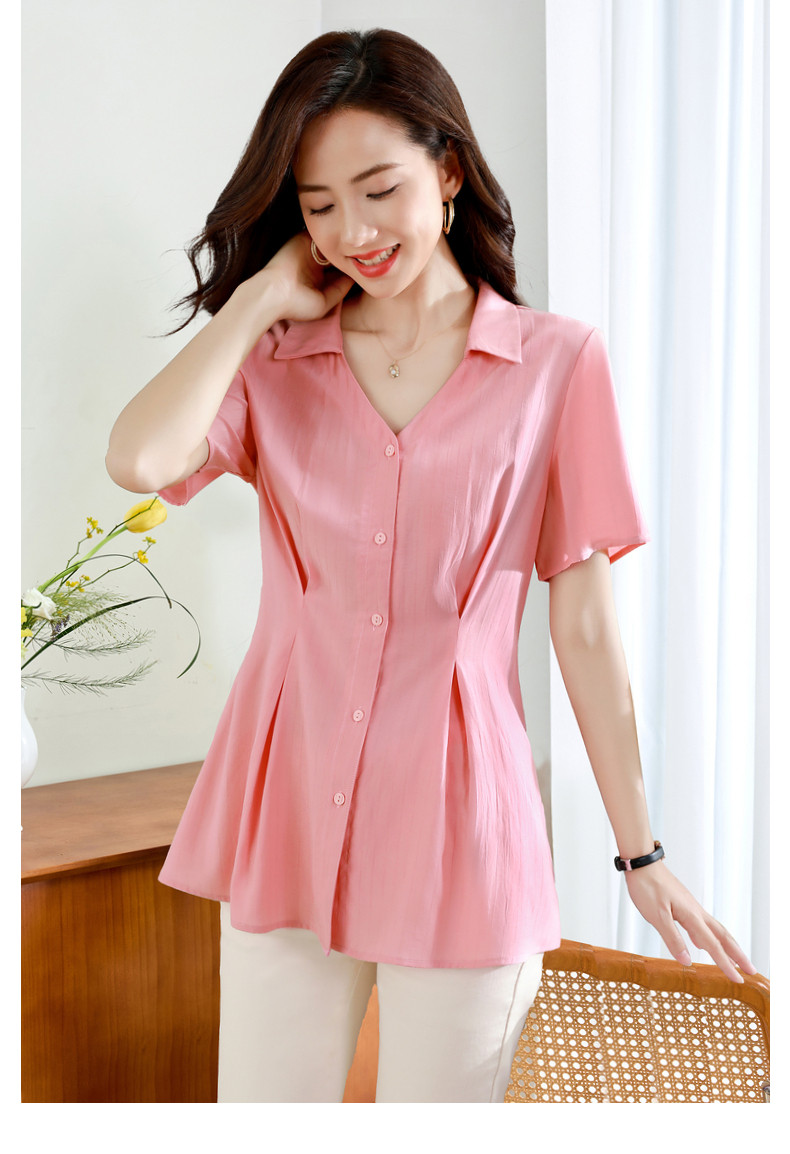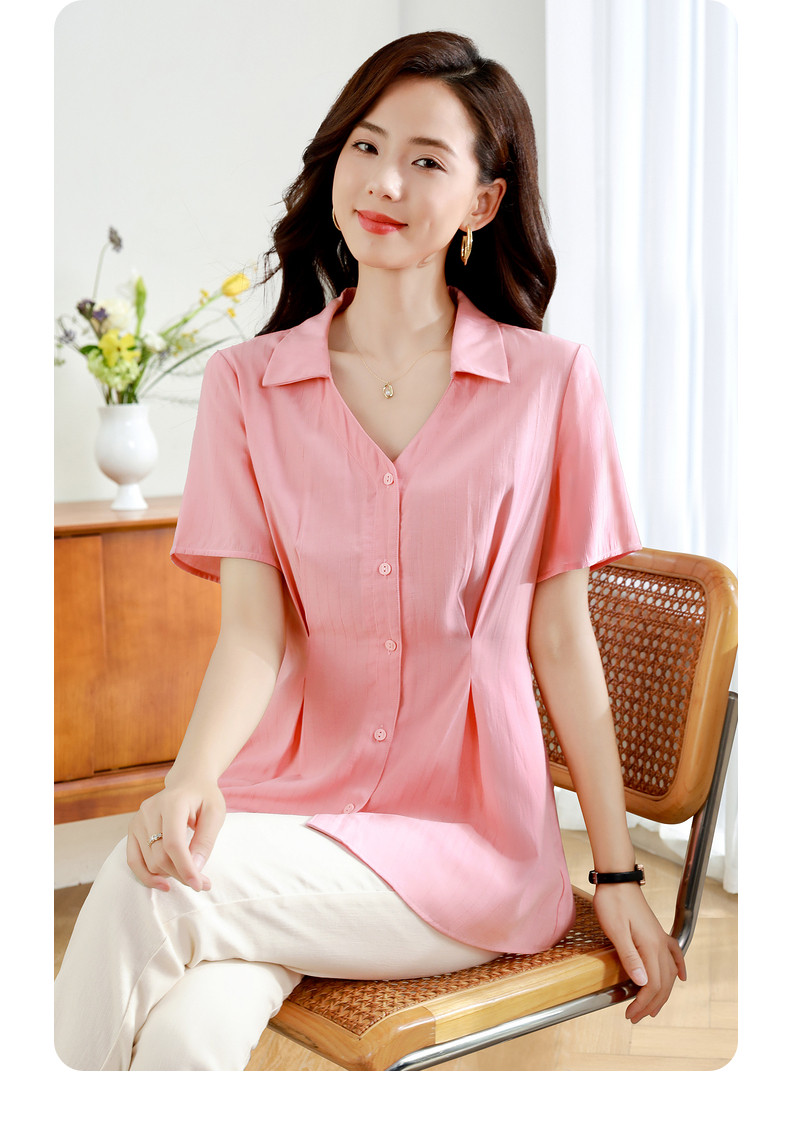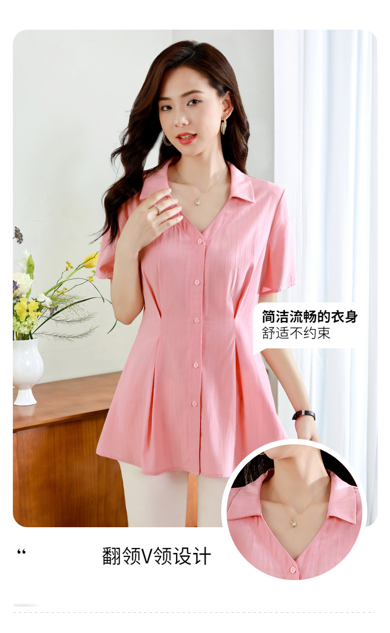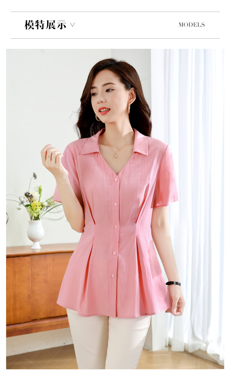 大码宽松遮肚子雪纺衫女2026年夏季新款短袖翻领衬衫女士收腰上衣