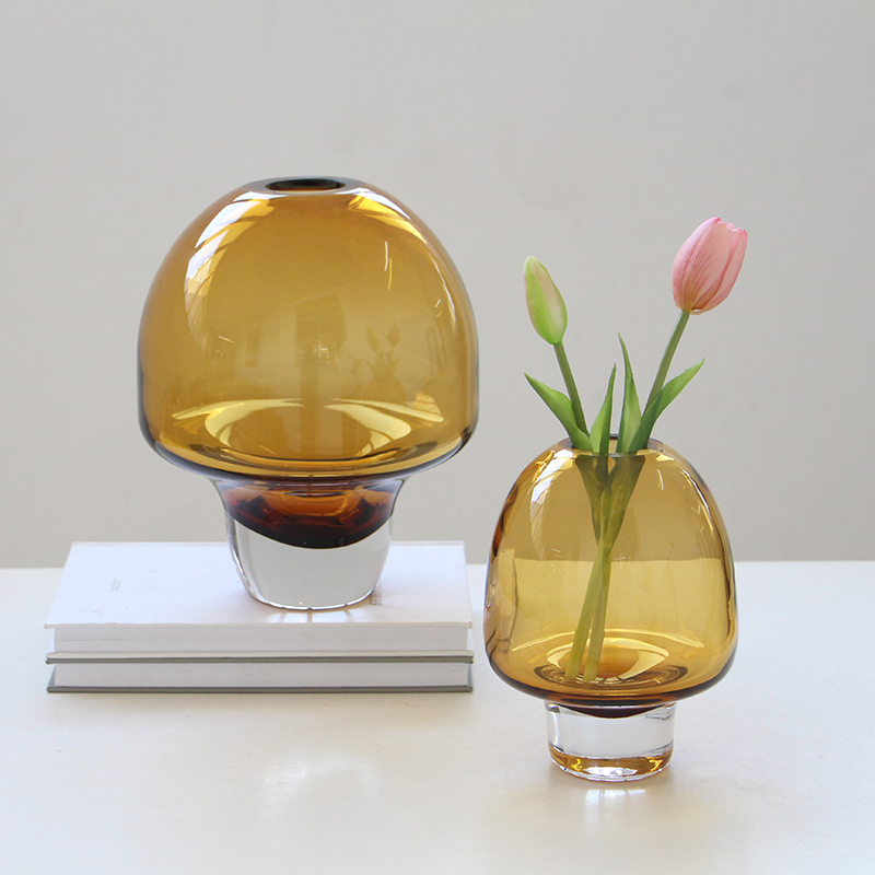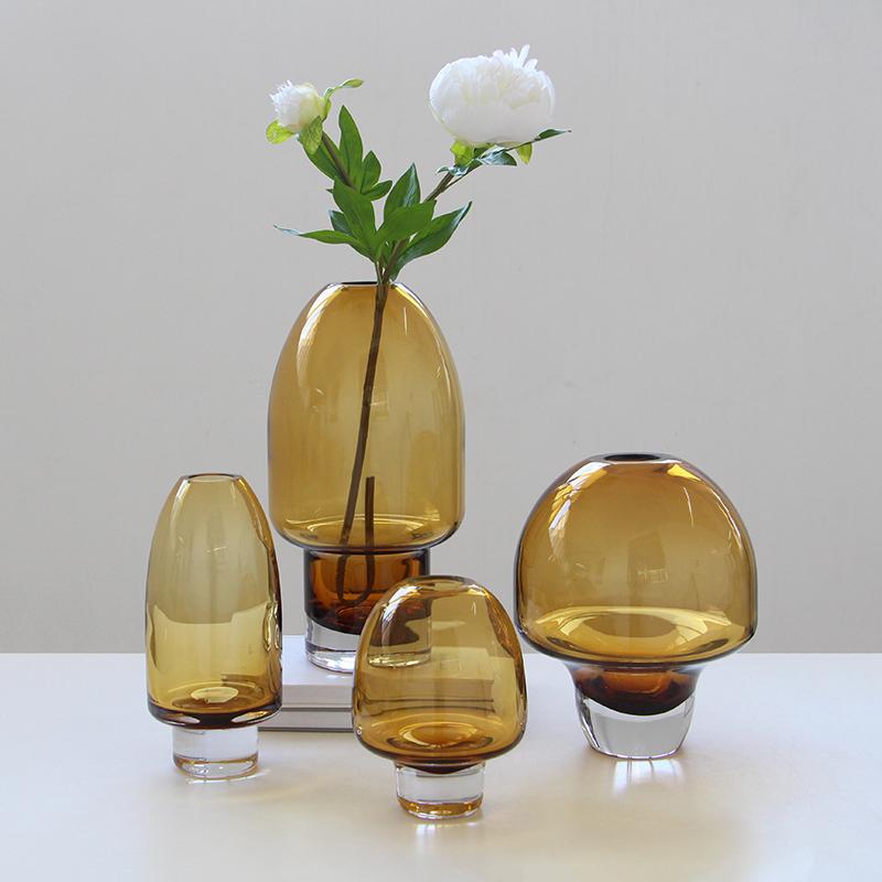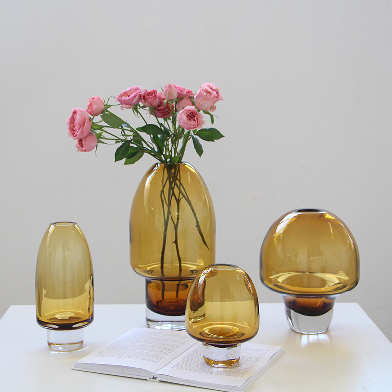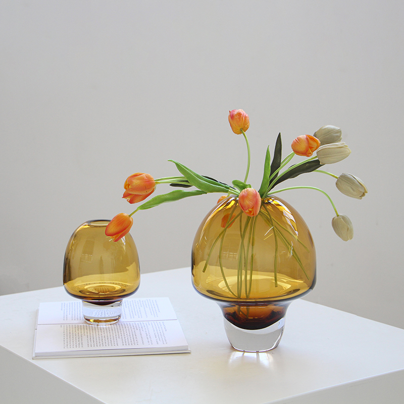现代简约厚底大肚子小口玻璃水培高级感客厅餐厅样板房台面装饰品