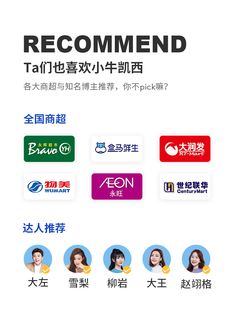 小牛凯西”是一个萌趣的健康牛排品牌,凭借高品质的健康食材、高颜值的卡通形象、易烹饪的产品特点,深得1000多万家庭的喜爱,成为了线上TOP级知名牛排品牌。小牛将继续努力让消费者吃的安心,吃得开心。