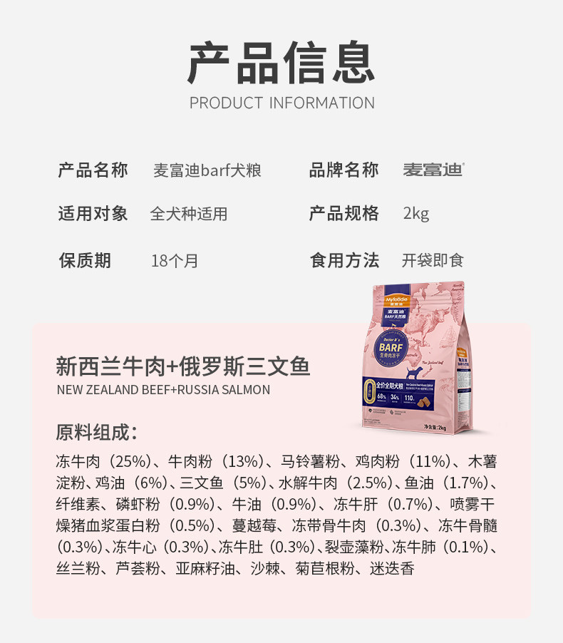 麦富迪barf狗粮双拼冻干生骨肉泰迪比熊小型犬专用幼犬粮官方正品