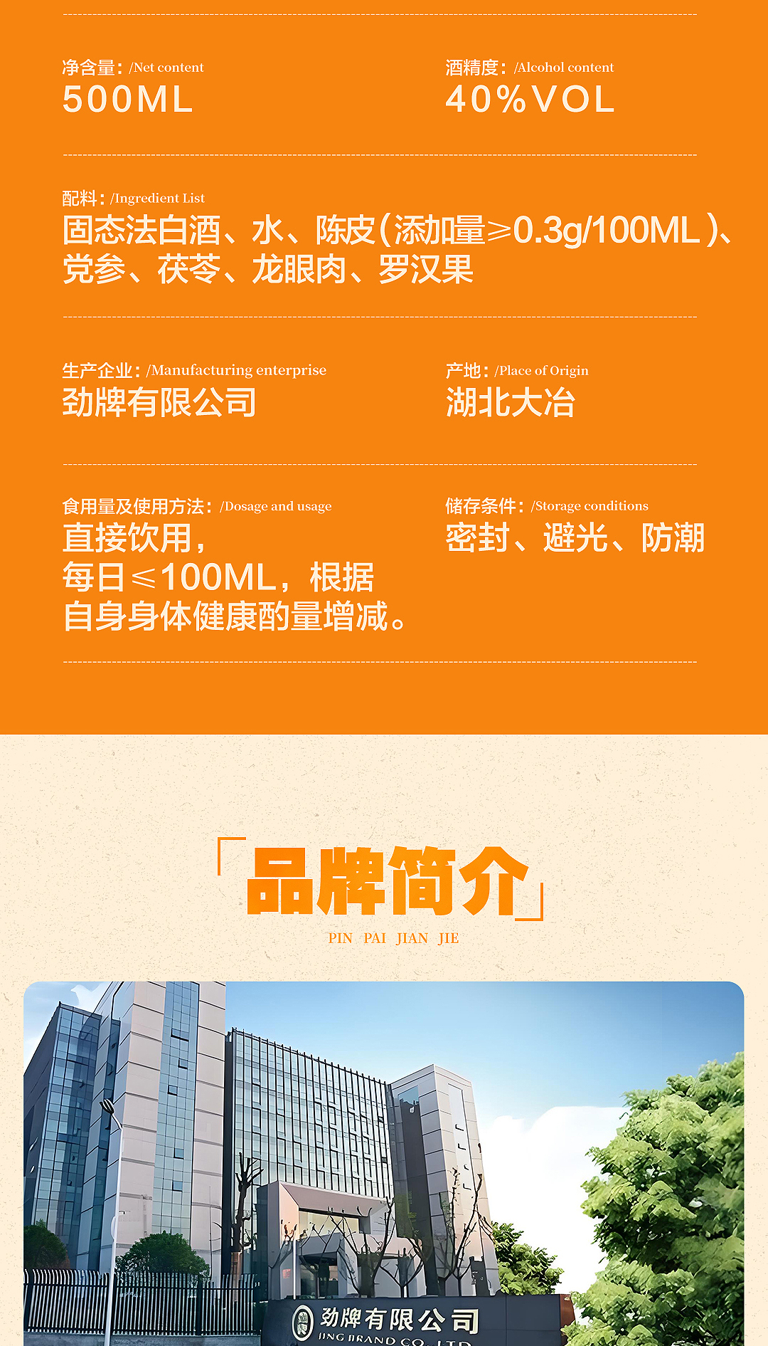 【新品】40°劲牌陈皮酒500ml