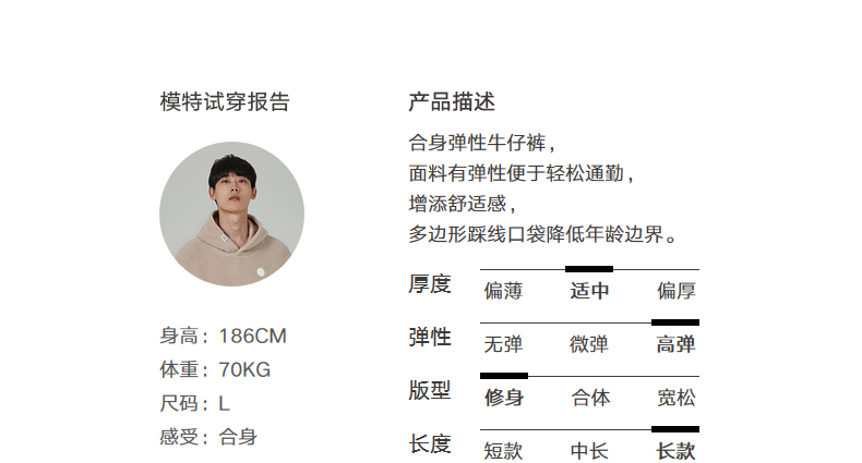 MC |MODE COMMUTER冬季弹性修身牛仔裤口袋时尚男士长裤MCD105047K