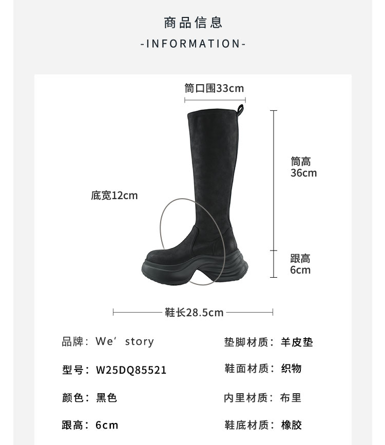 Westory2025年冬季厚底休闲弹力包腿高靴W25DQ85521