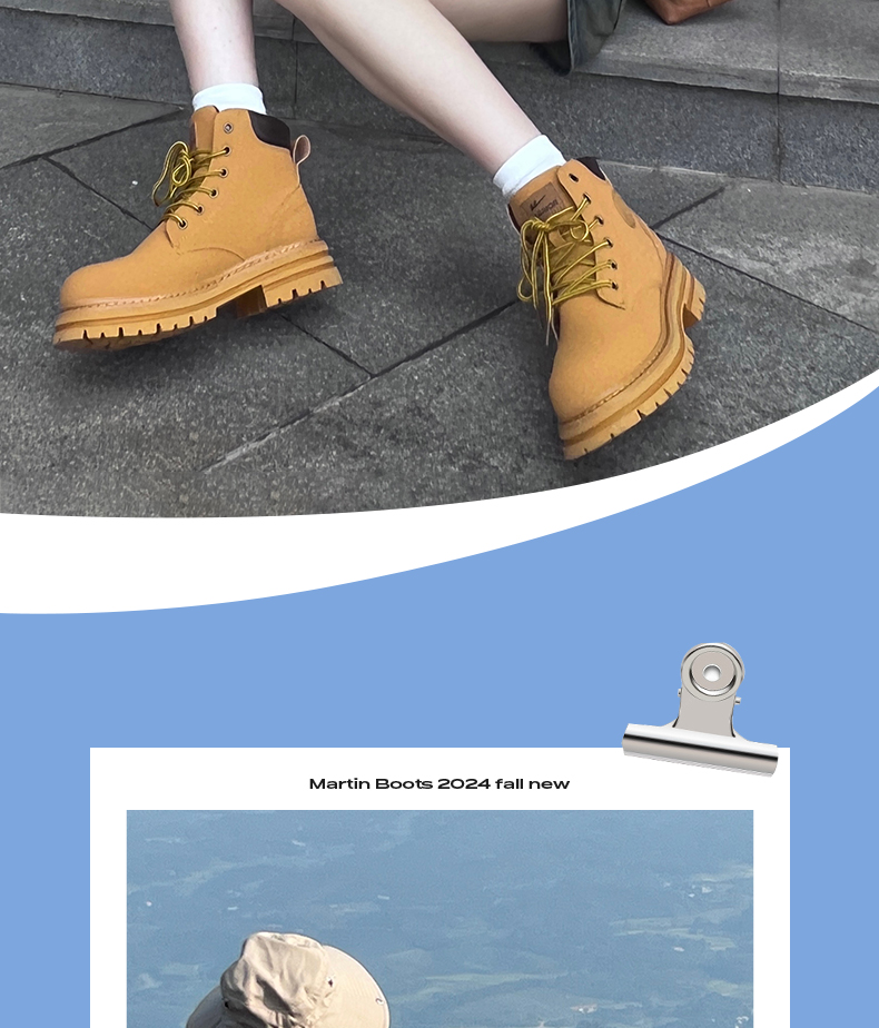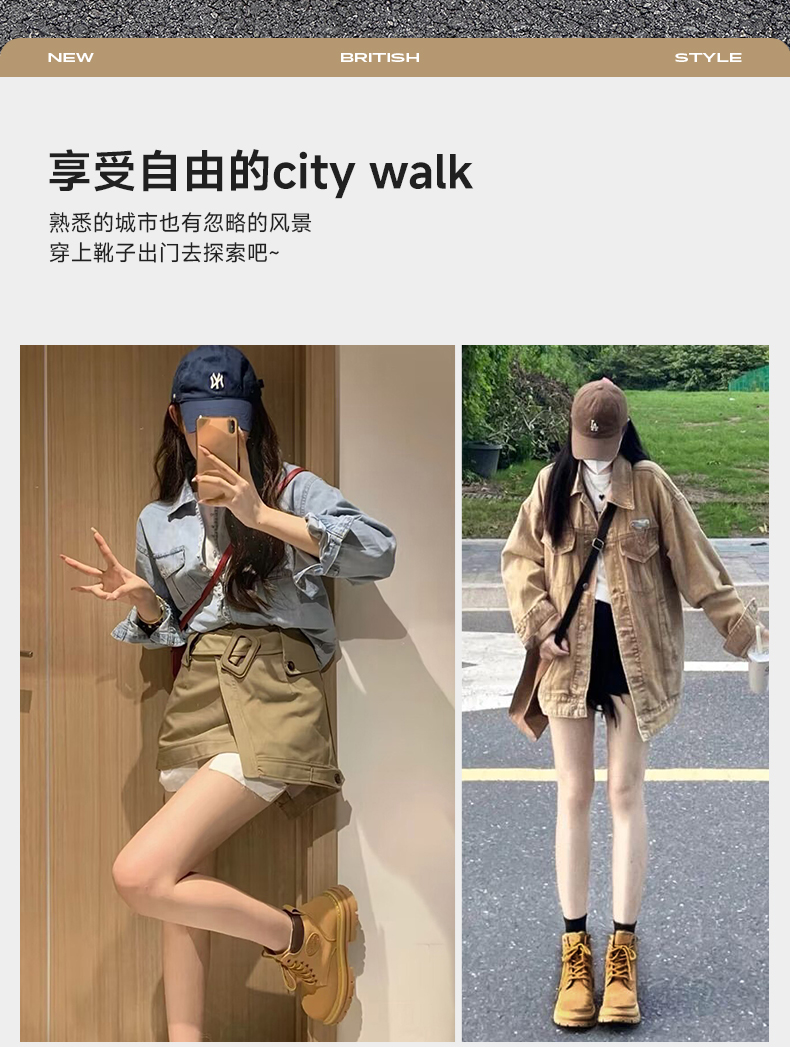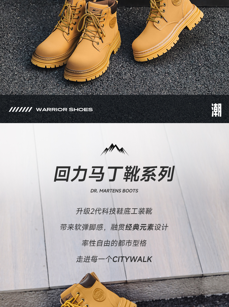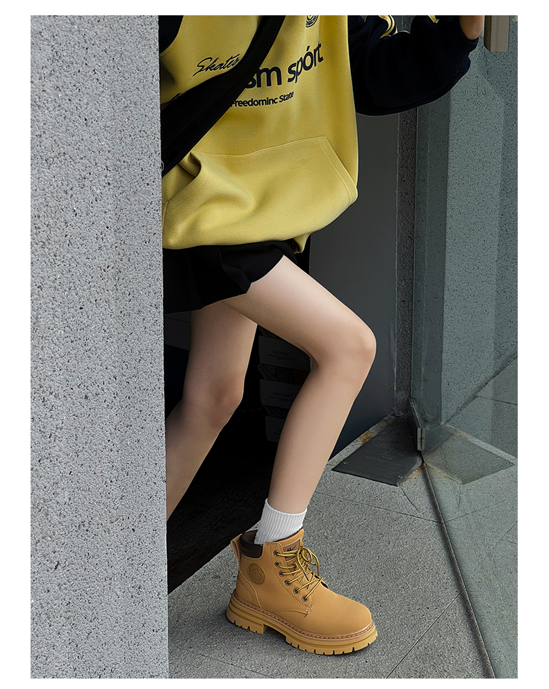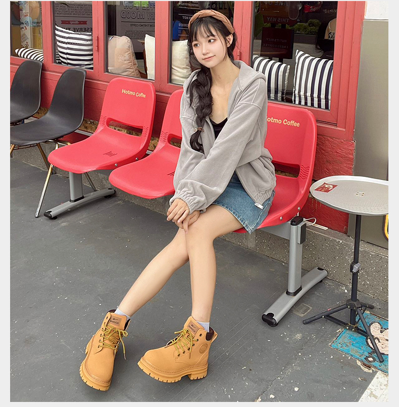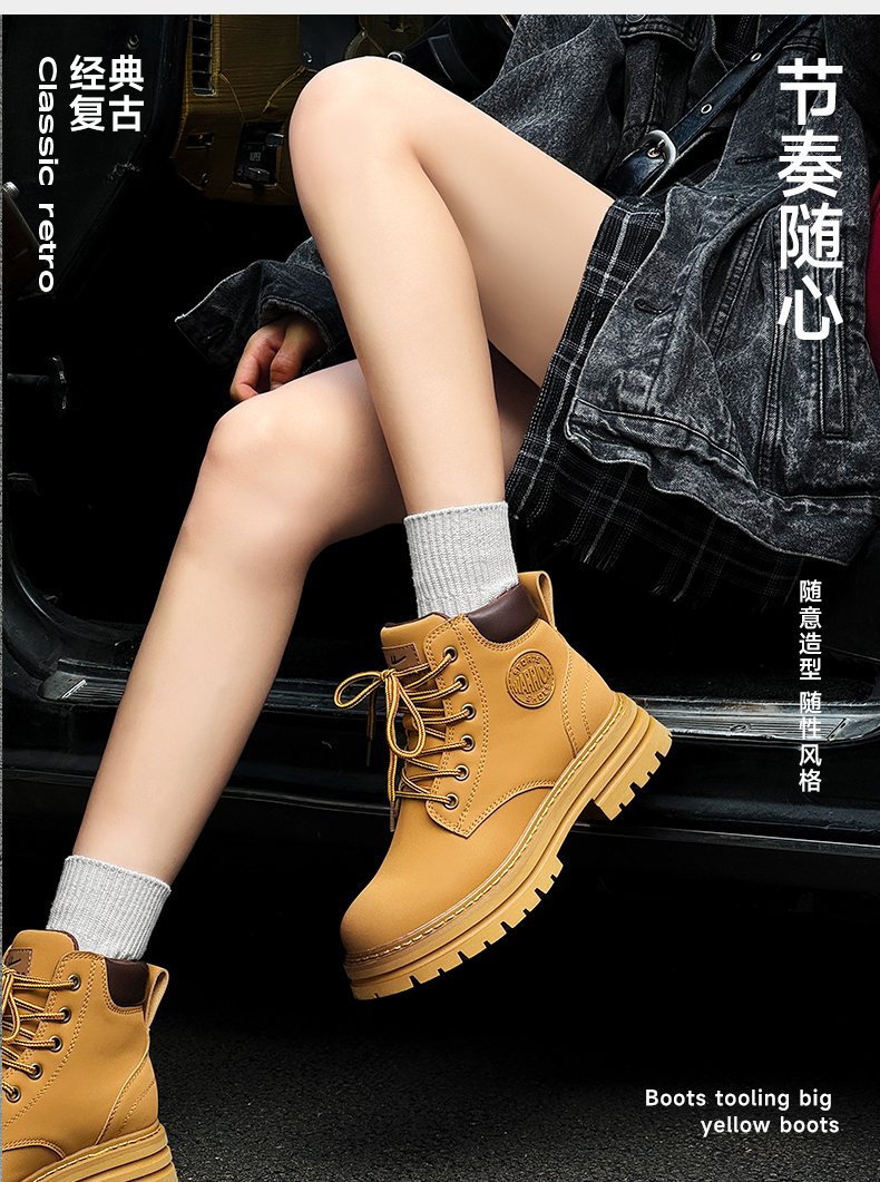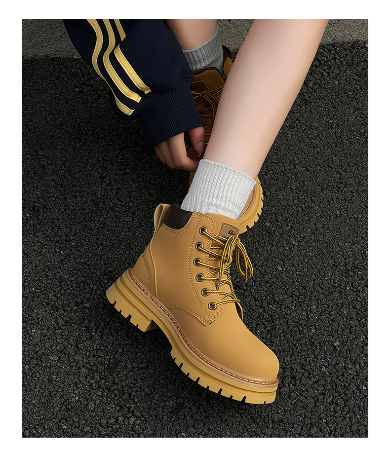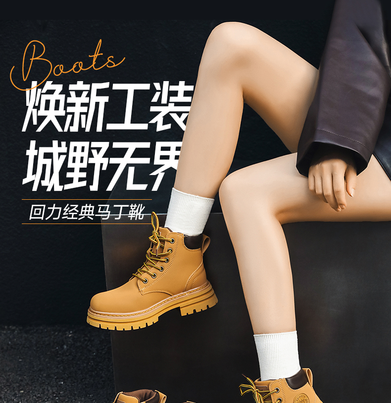 回力马丁靴女秋冬新款爆英伦风女鞋工装登山大黄靴加绒短靴子0571